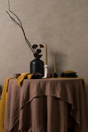 The rooted luxury is reimagined through the lens of sustainable art. A story crafted with the beauty of repeated stitches on the fringed edges of our linens is about to be told. Layered with raw fringes, the pieces carry a sense of undone beauty, a tactile edge that’s unpolished yet deeply refined.