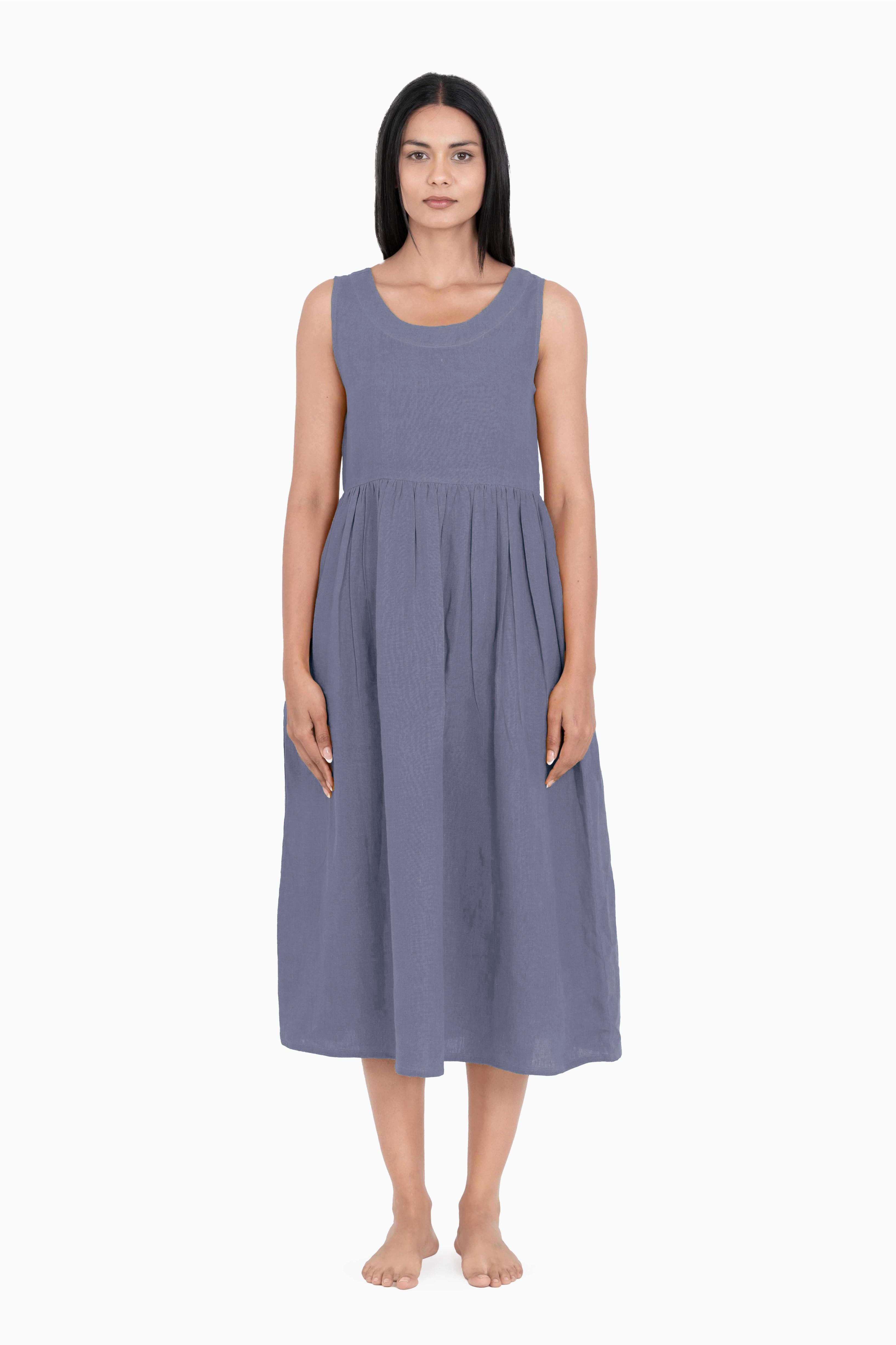 Our Linen Achill Dress is a gorgeous sleeveless dress with the round neckline. The waistline creased with subtle pleats brings volume to the entire look. This easy-to-slip dress is harmonizing and perfect for any weather. Explore our European Linen collection today!