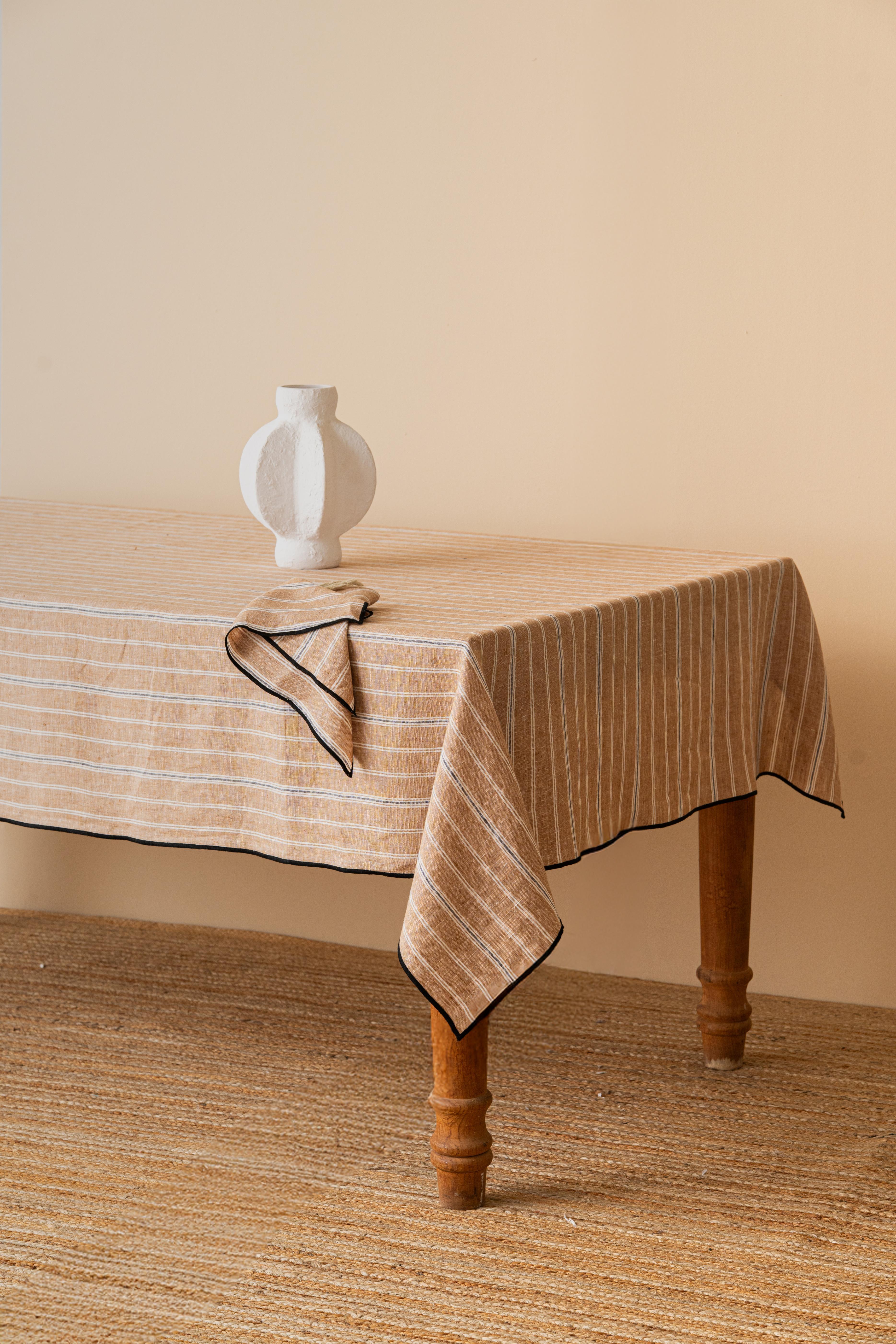 An easily washable and simply beautiful Linen Althea Tablecloth is all you need. Welcome the striped linen creation that adds warmth to your dining. Our artisans have crafted this graceful tablecloth with ultimate love and care.