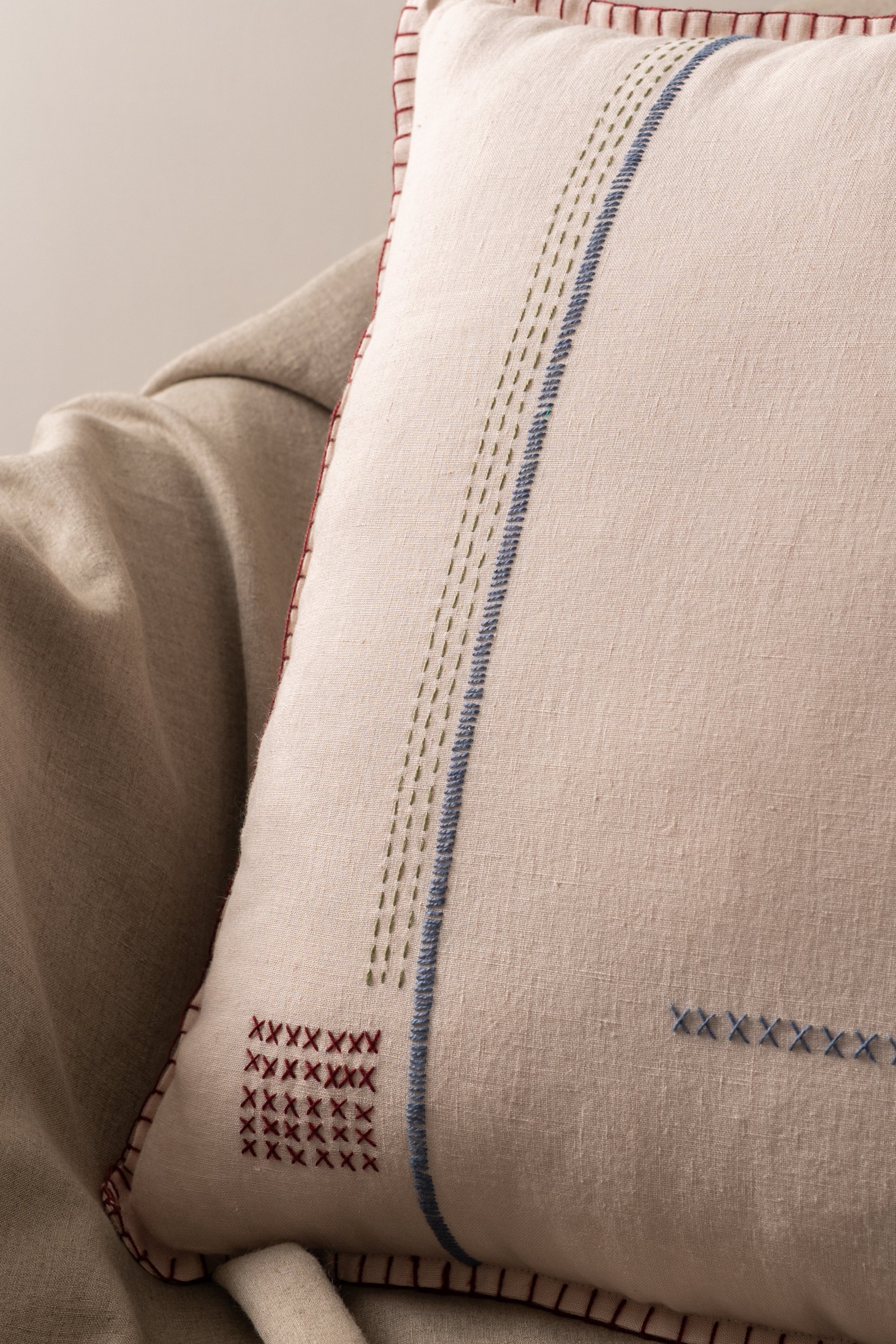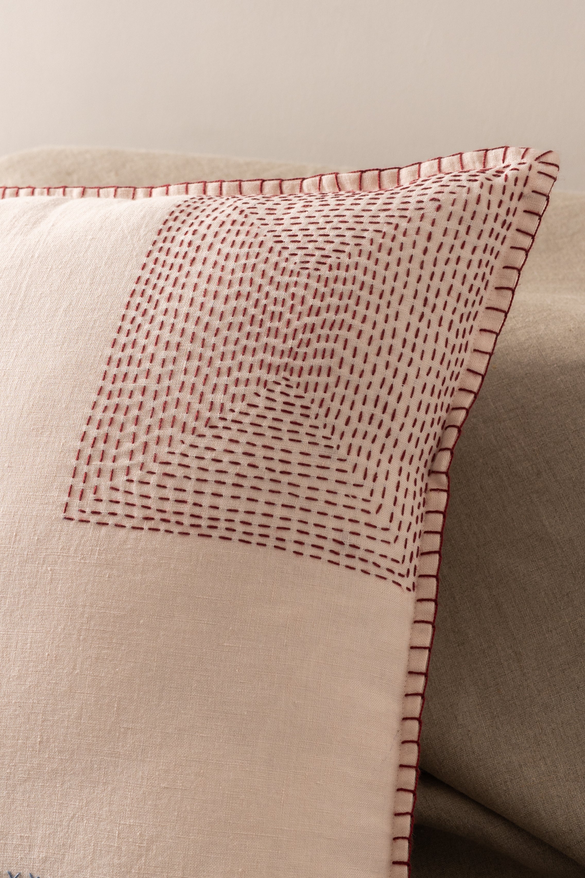 Discover the elegance of our Linen Atelier cushion cover, crafted from premium European linen fabric. Each handmade cushion cover showcases beautiful hand-embroidered edges, styled meticulously with the unique hole stitch technique. This stunning addition enhances any space while promoting sustainability. Perfect for those seeking a chic touch, our cushion cover is not just a decorative piece; it's a commitment to quality and eco-friendly living. Elevate your home décor with this exquisite cushion cover from India and experience the art of traditional handicraft brought to life.