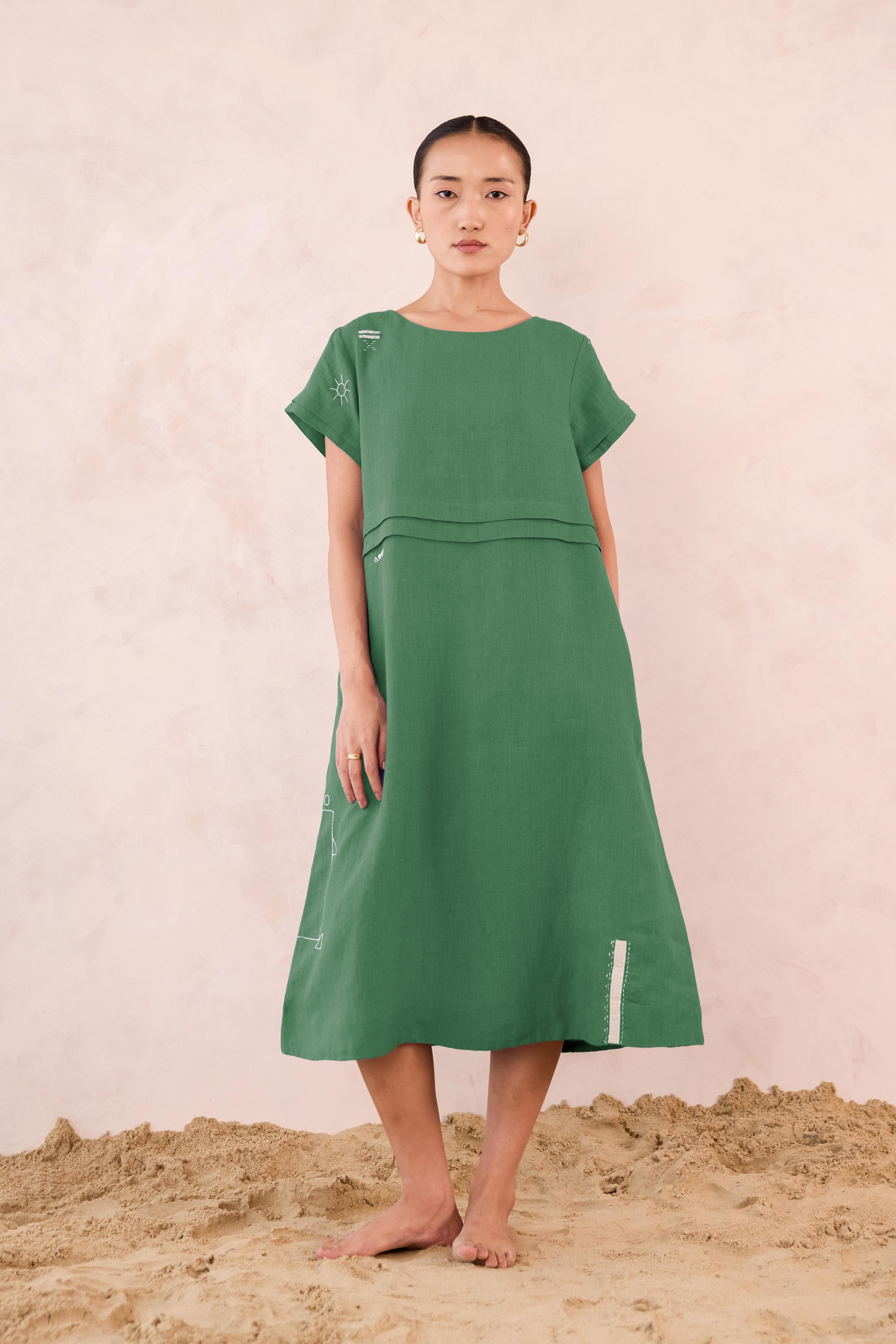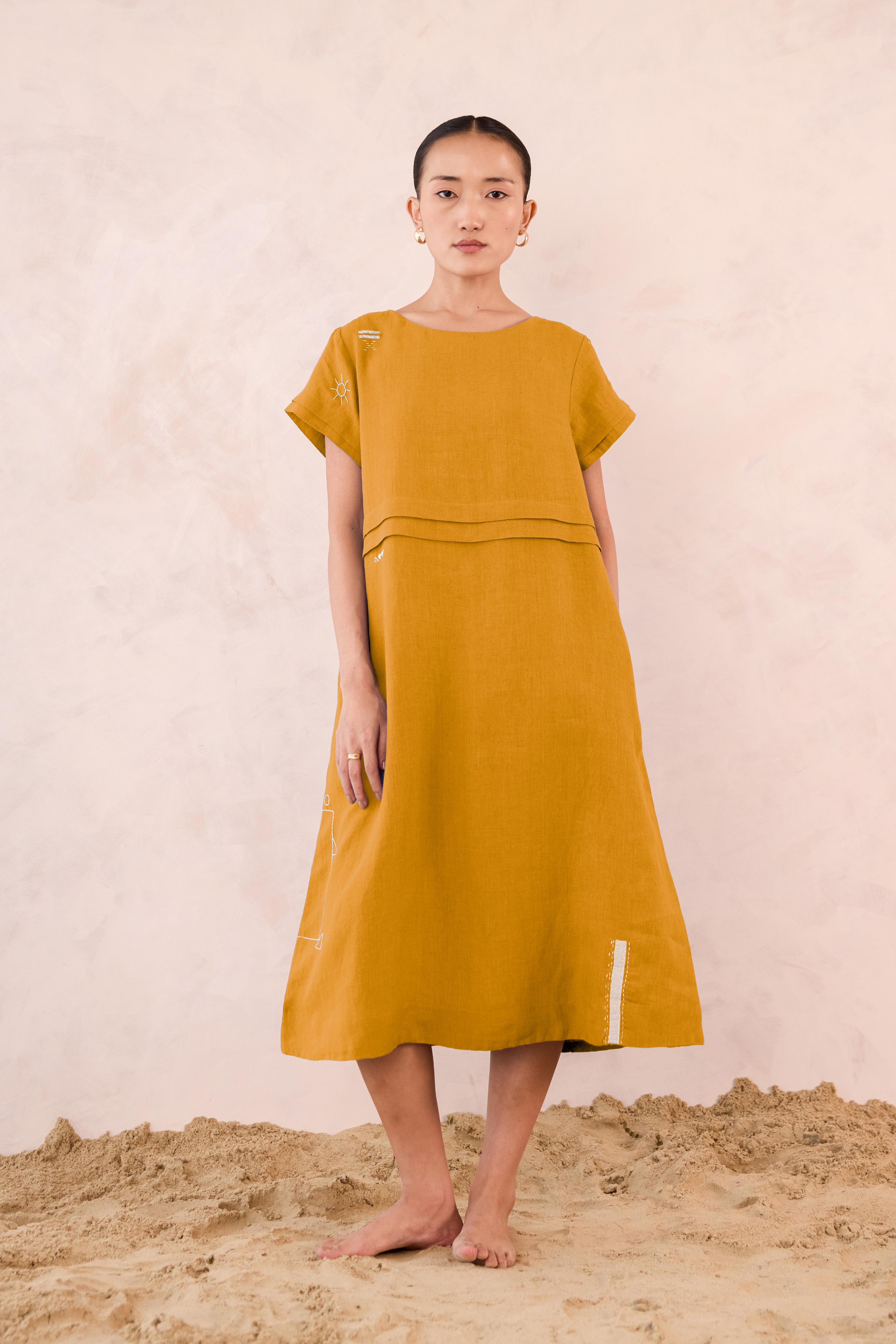 Our Cavira Dress is a flowing yet grounded creation with its relaxed shape. The subtly adorned creation has a rhythm of handcrafted detailed elements added to it. Discover the touch of craftsmanship and add style to your fashion game.