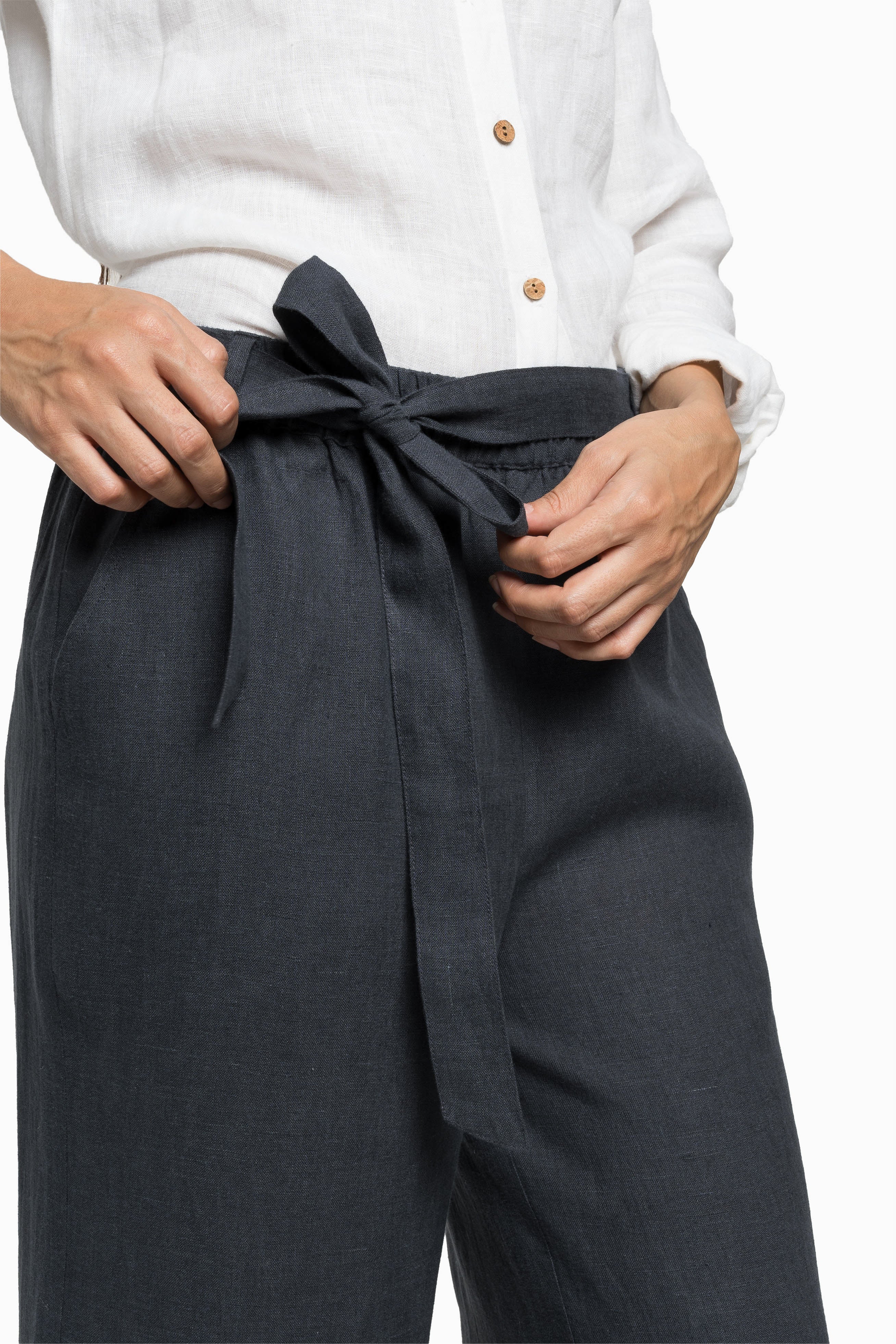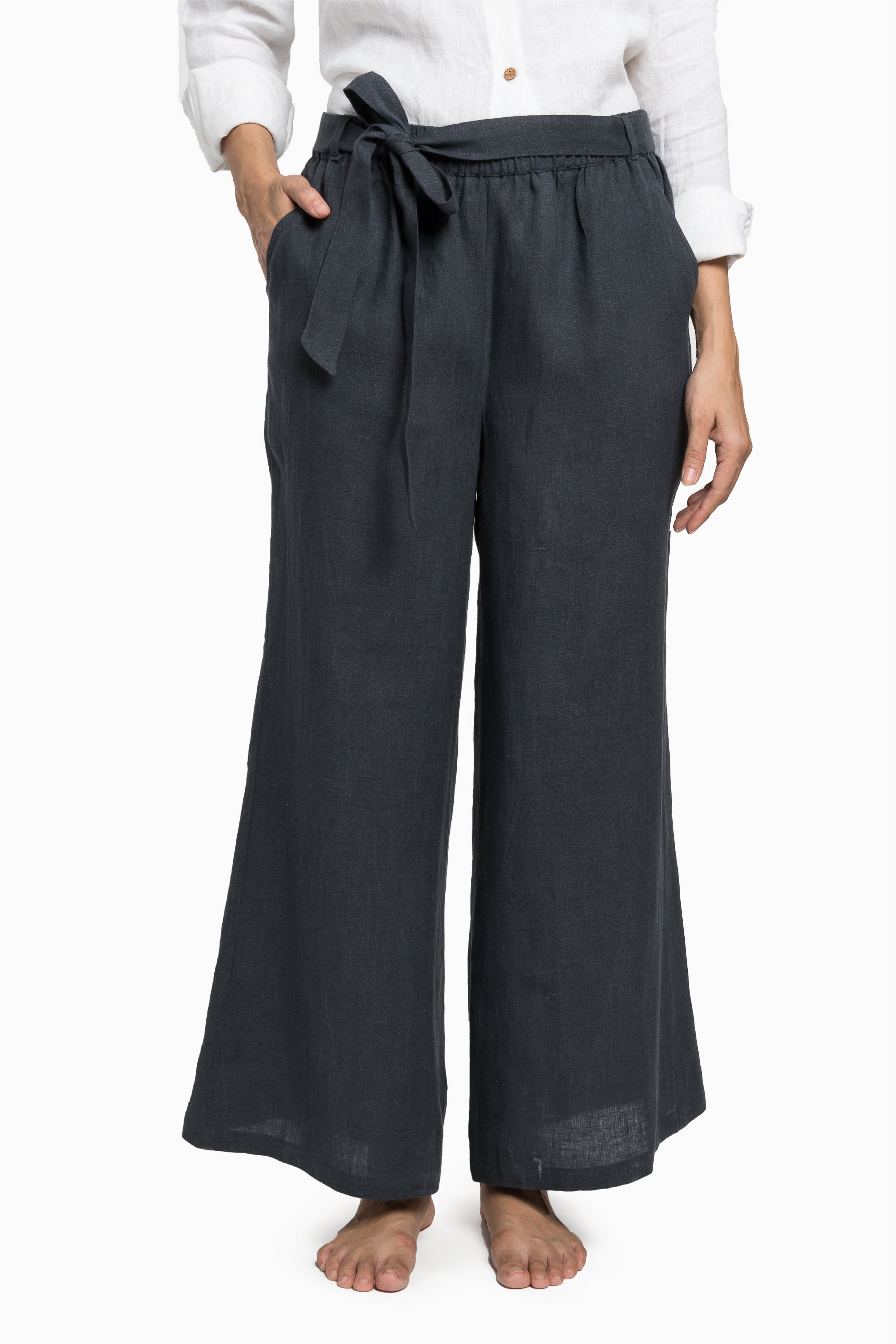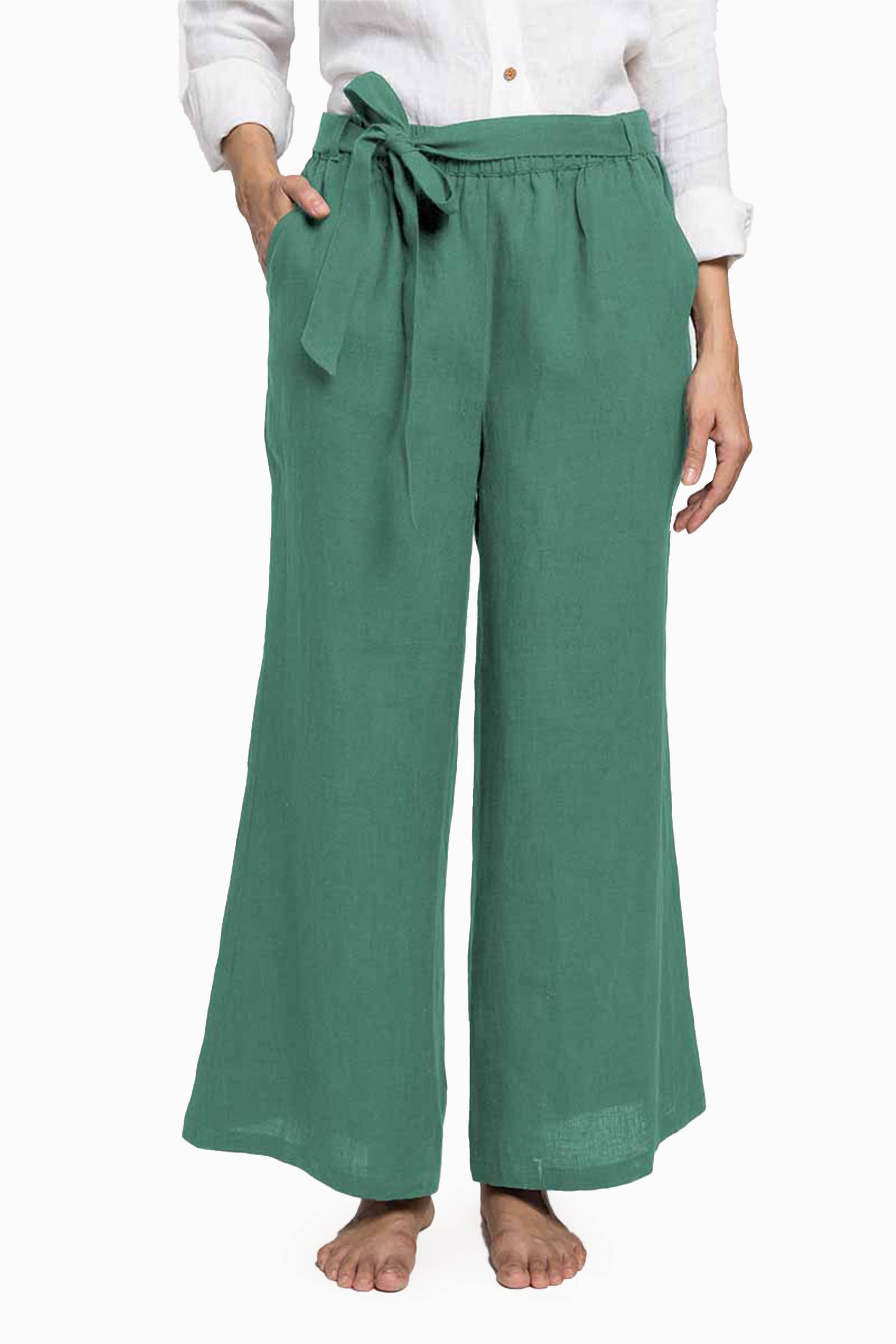 The gorgeous Linen Cecilia Pants are ready to dress you up with style. The ultimate soft texture of European Linen will keep you free from any stress. These relaxed trousers ensure you an experience of flare and cheeriness. A belt on the elasticated waistband adds to its beauty and comfort. The double-sided pockets take you toward more convenience with the gentle touches of linen. Lay your hands on these relaxing pants for that much-awaited day out.