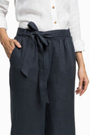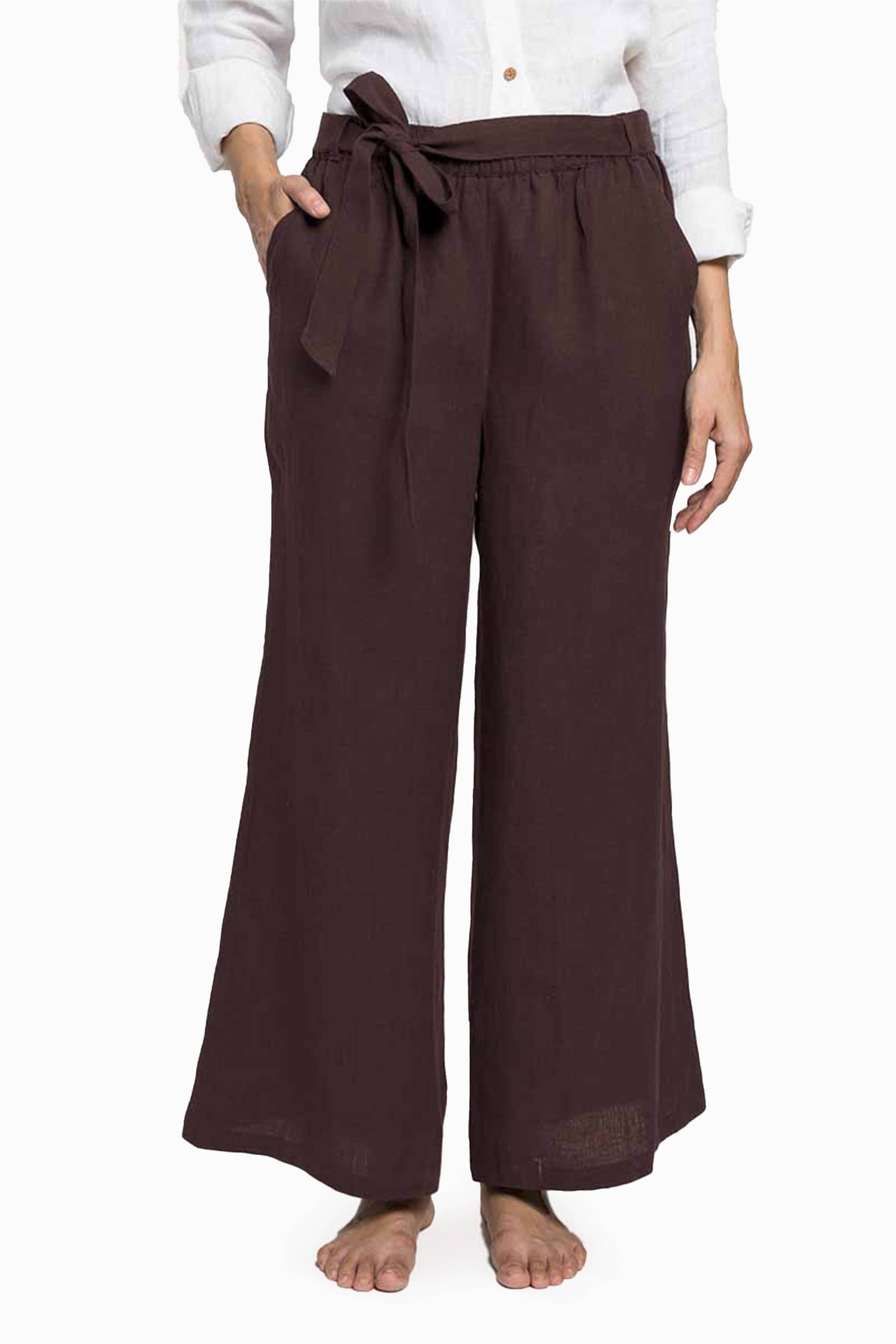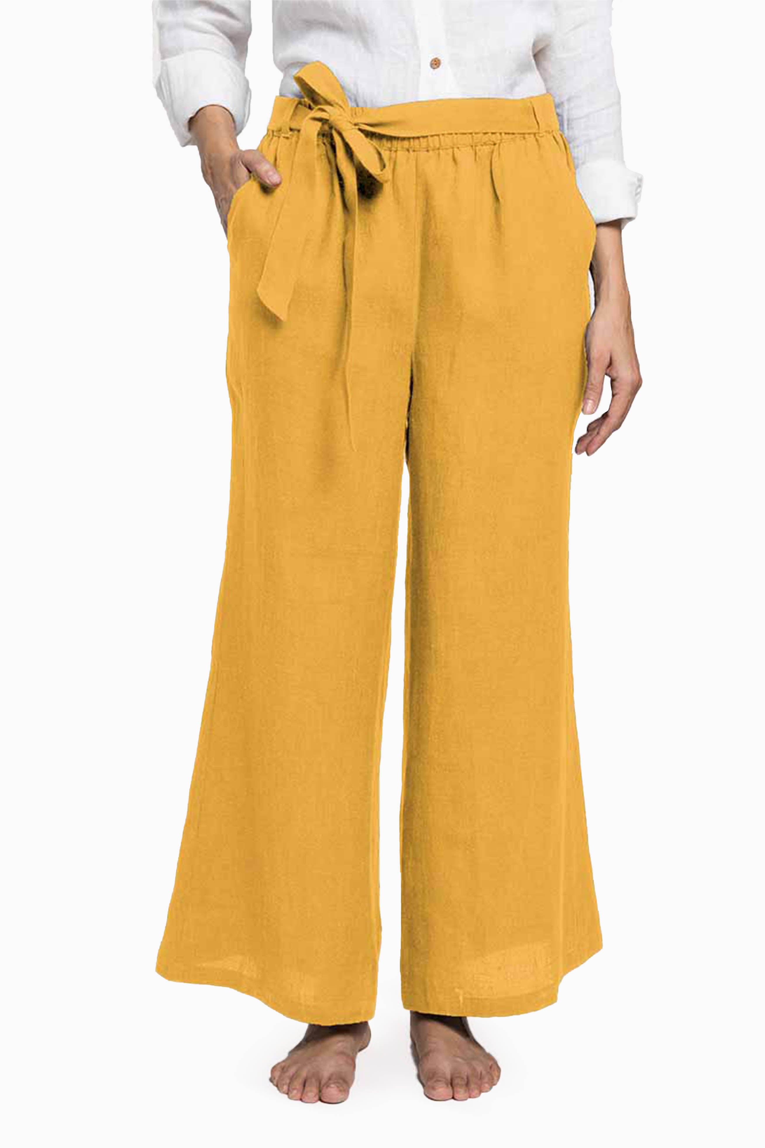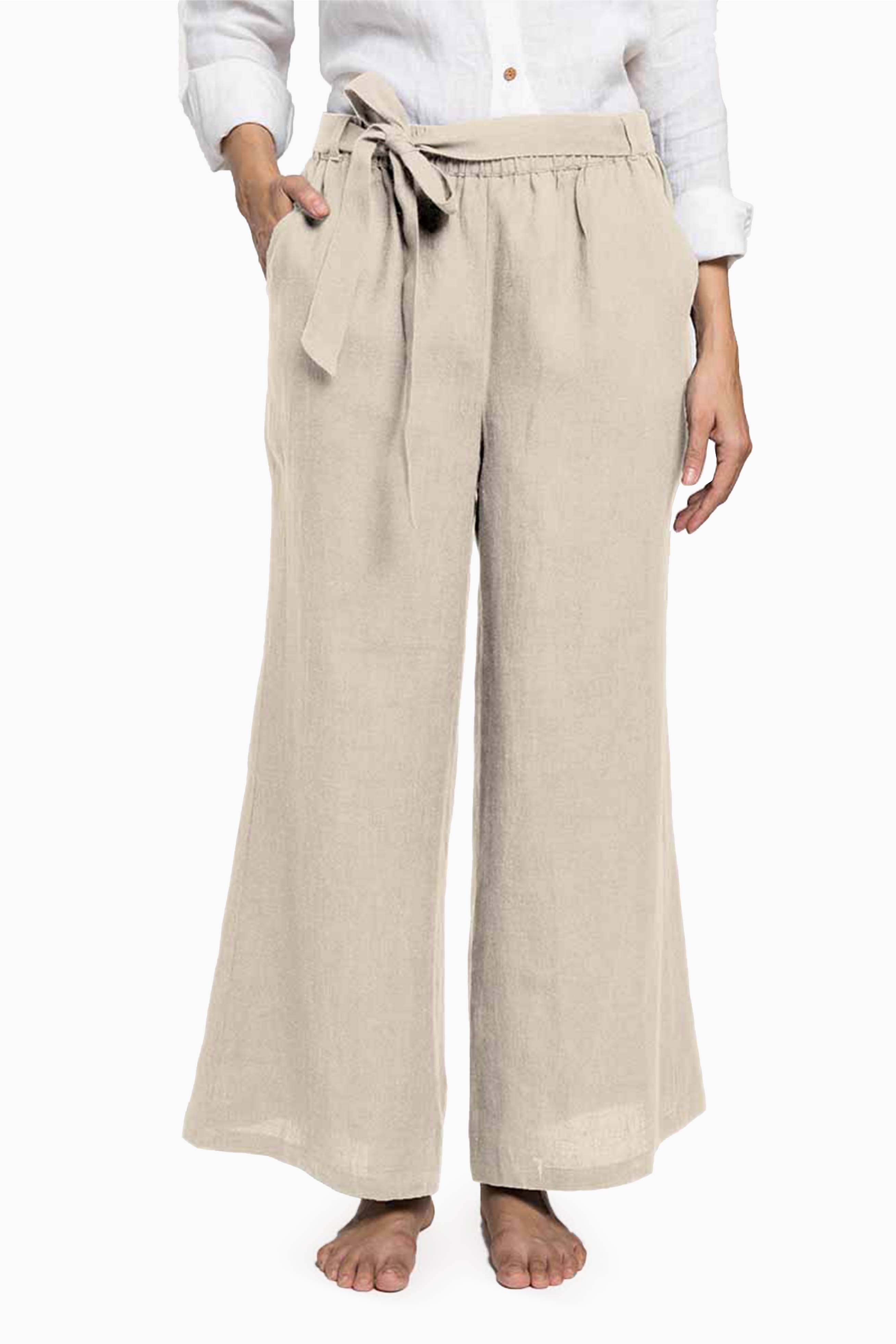The gorgeous Linen Cecilia Pants are ready to dress you up with style. The ultimate soft texture of European Linen will keep you free from any stress. These relaxed trousers ensure you an experience of flare and cheeriness. A belt on the elasticated waistband adds to its beauty and comfort. The double-sided pockets take you toward more convenience with the gentle touches of linen. Lay your hands on these relaxing pants for that much-awaited day out.