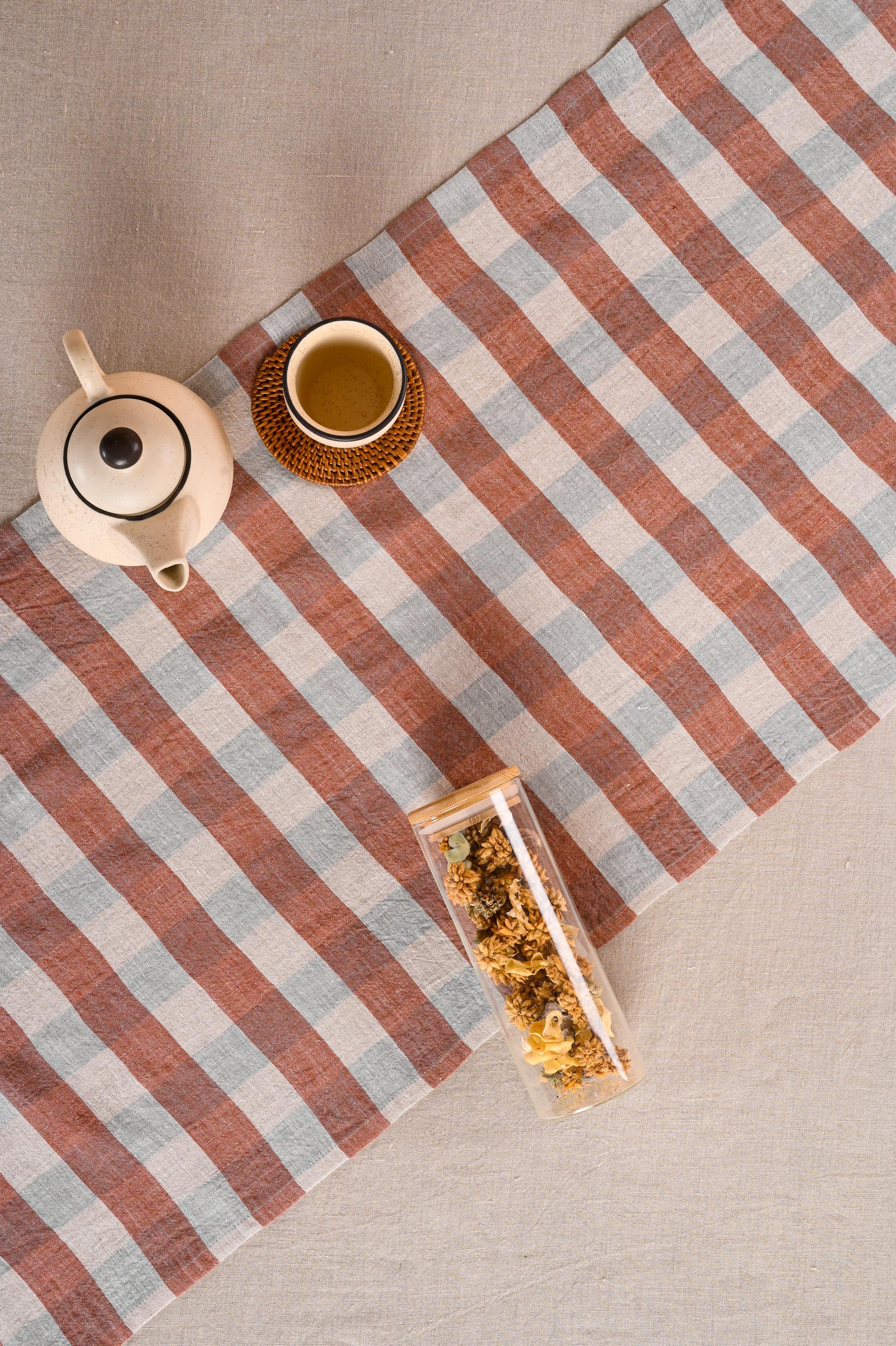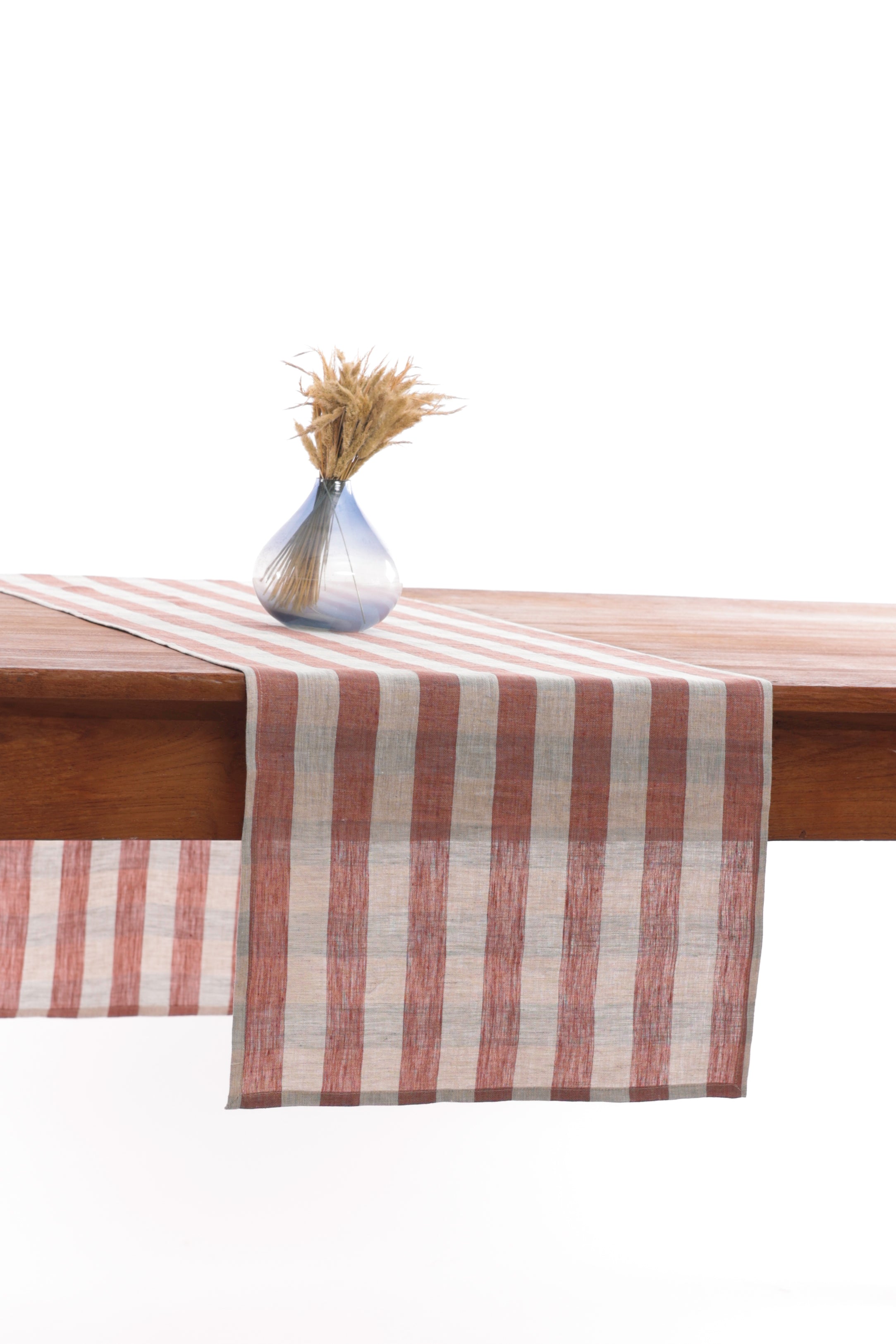 The refined check pattern of our Linen Terracotta Clara Table Runner is something special for your dining room. This collection is explicitly handcrafted to let you experience the sleek nature of European Linens. Stay on top of your decor game with the inviting elegance of our table runners.