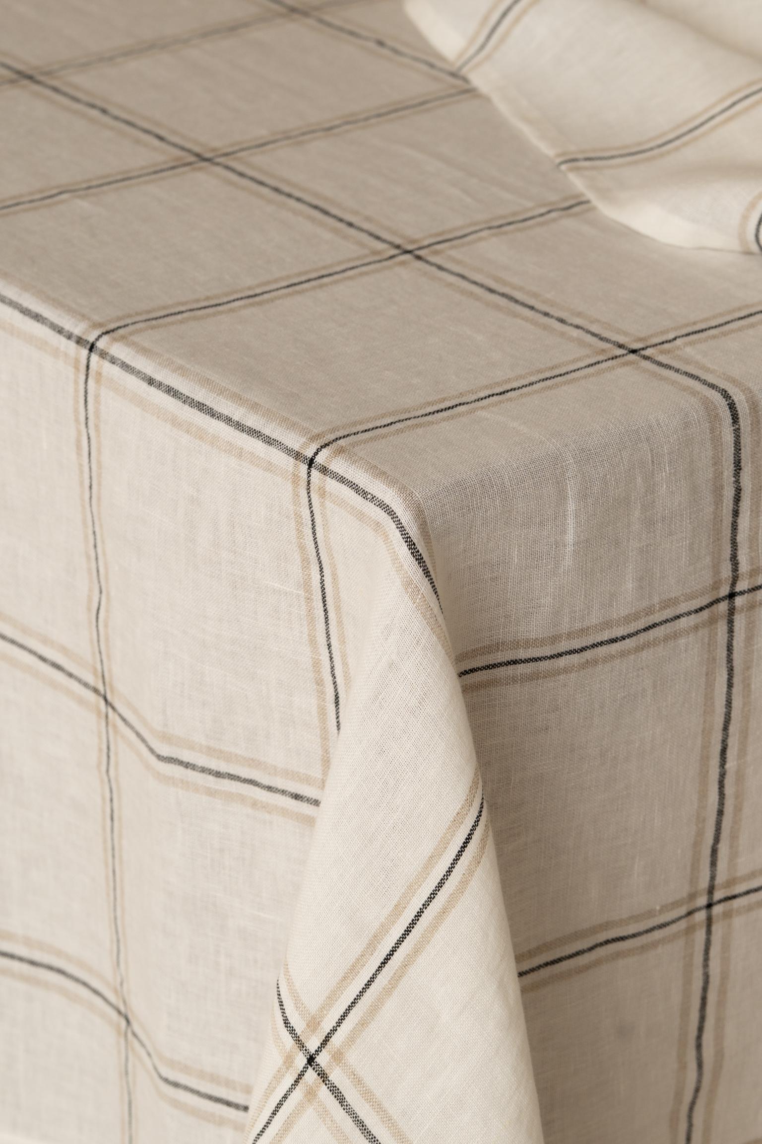 Explore the utmost elegance of Linen Cosette Tablecloth with the checkered pattern. The purity of European Linen and its durability makes it ideal for your home.