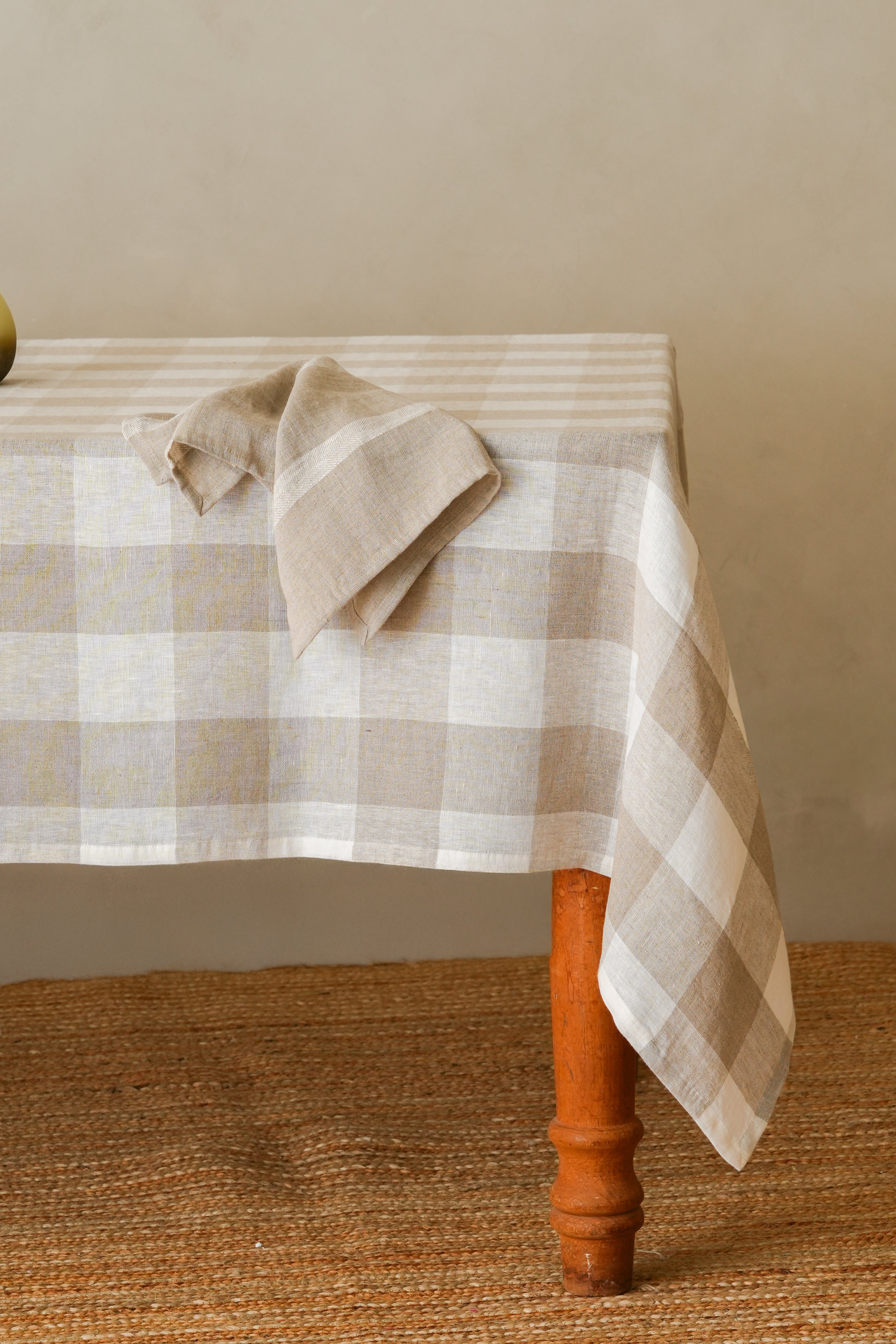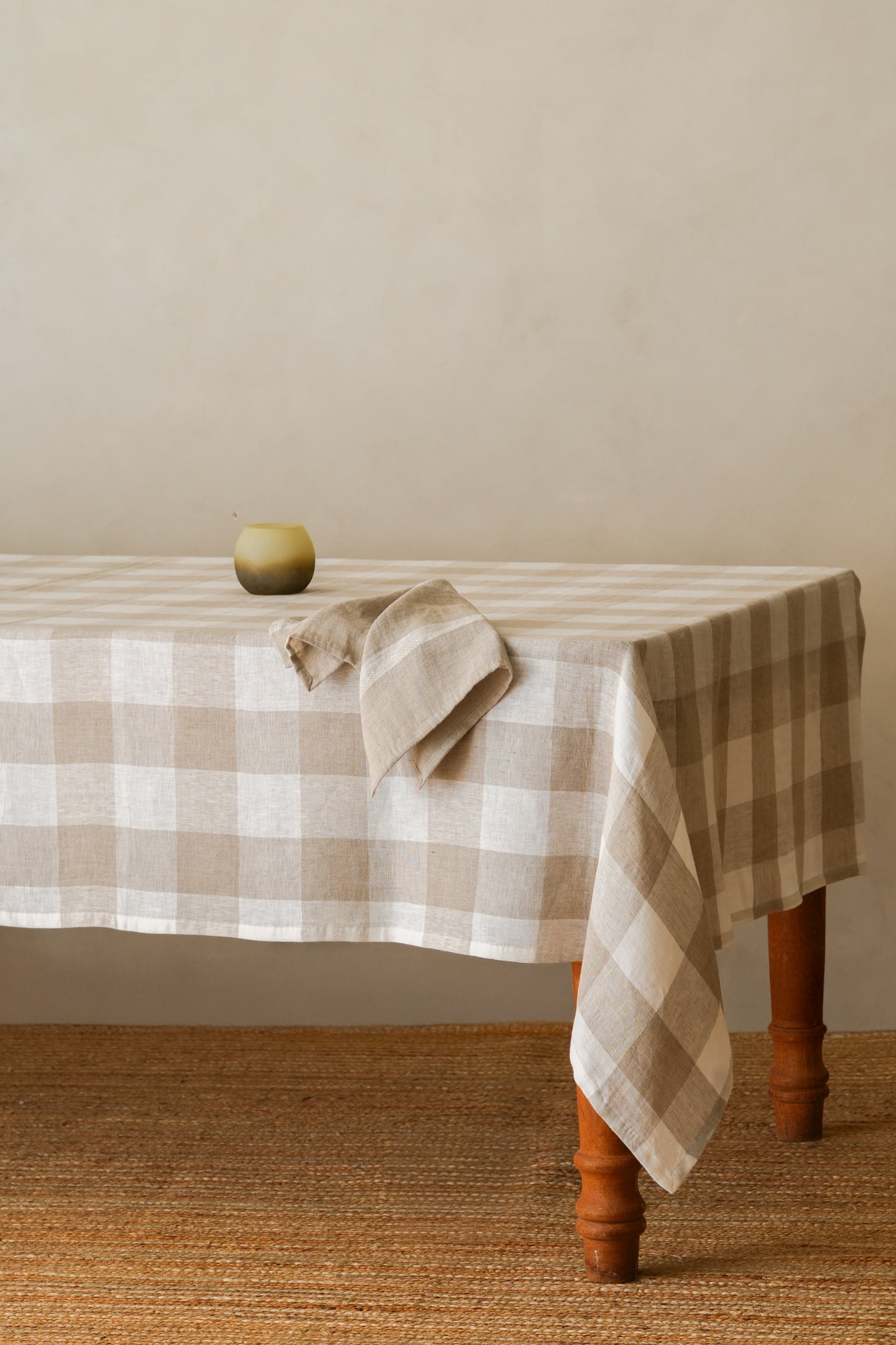 Crafted from pure European Flax Linen, the Crema Tablecloth blends soft cream and sand tones that define understated luxury. Lightweight, breathable, and beautifully textured, it’s ideal for holiday feasts, Christmas brunches, and cozy winter dining. A must-have neutral linen tablecloth for those who love Conscious living.