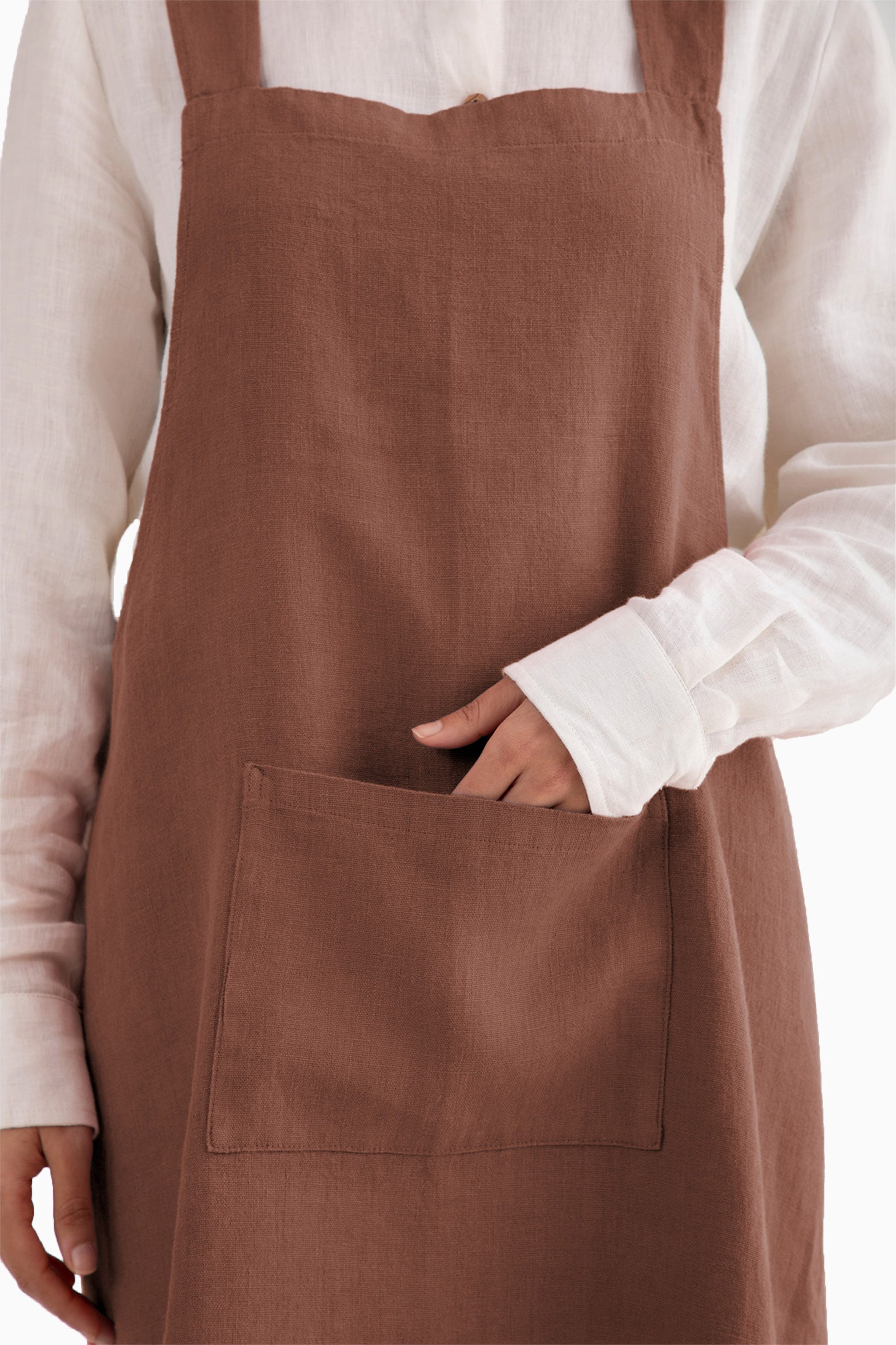 A Linen Cross Back Apron is curated with the skilled efforts of our artisans. Our European Linens are so breathable, airy, and moisture-absorbing, which makes them perfect for any activity. Embrace the luxurious collection of solid, fine-tuned colors available.