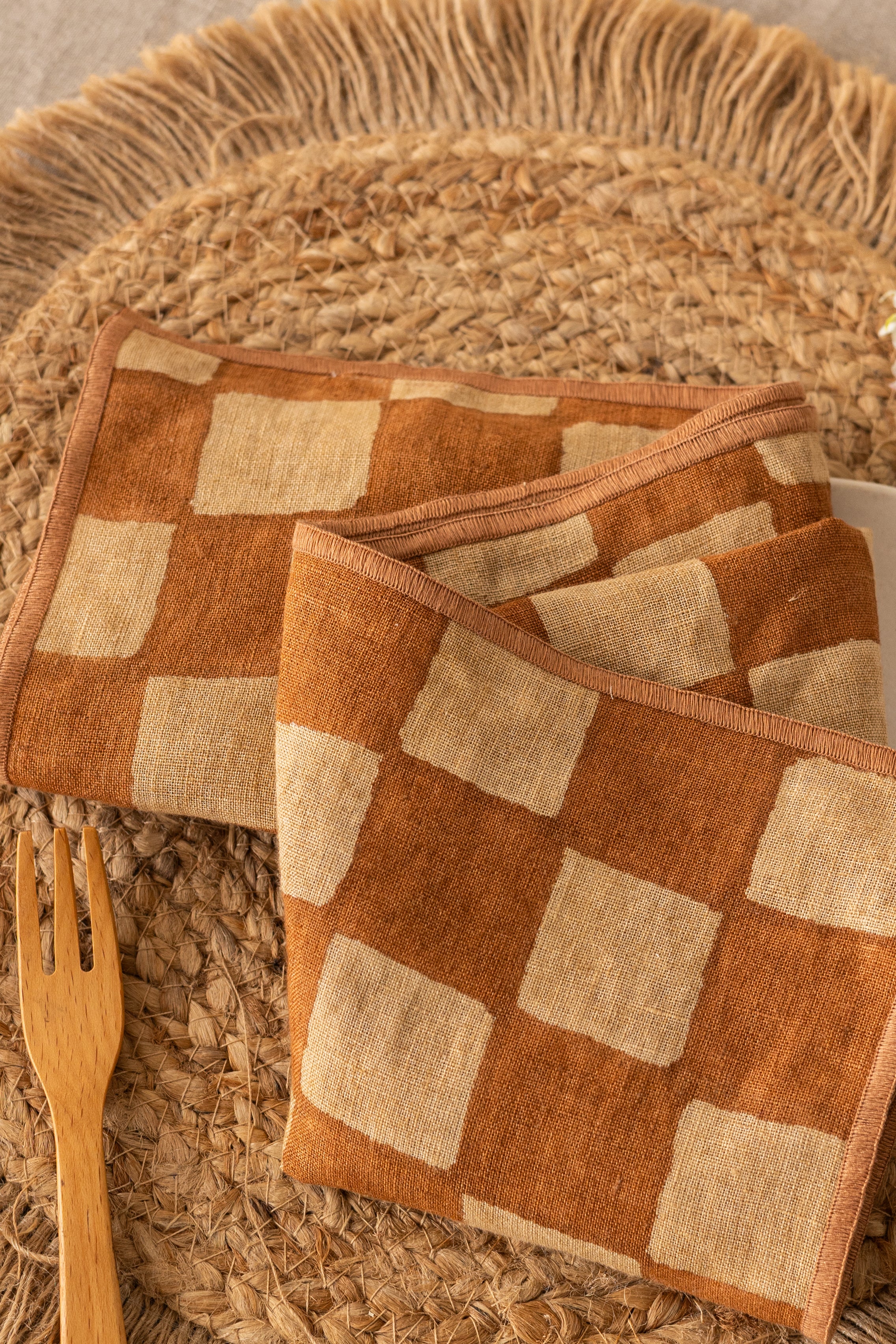 Add Premium Linen charm to every occasion with our Linen Donna Napkin Set, crafted from 100% lInen European flax linen and checkered pattern block print. Ideal for family dinners, brunches, festive feasts, outdoor picnics, and café-style dining, these linen napkins combine functionality with elegance. Naturally absorbent, skin-friendly, anti- bacterial and gets softens with every wash. Their vibrant and premium balanced design makes them perfect for gifting, weddings, or everyday home dining. Pair them with our Linen Scarlet Tablecloth for a luxury, premium tablescape rooted in tradition and modern artistry.