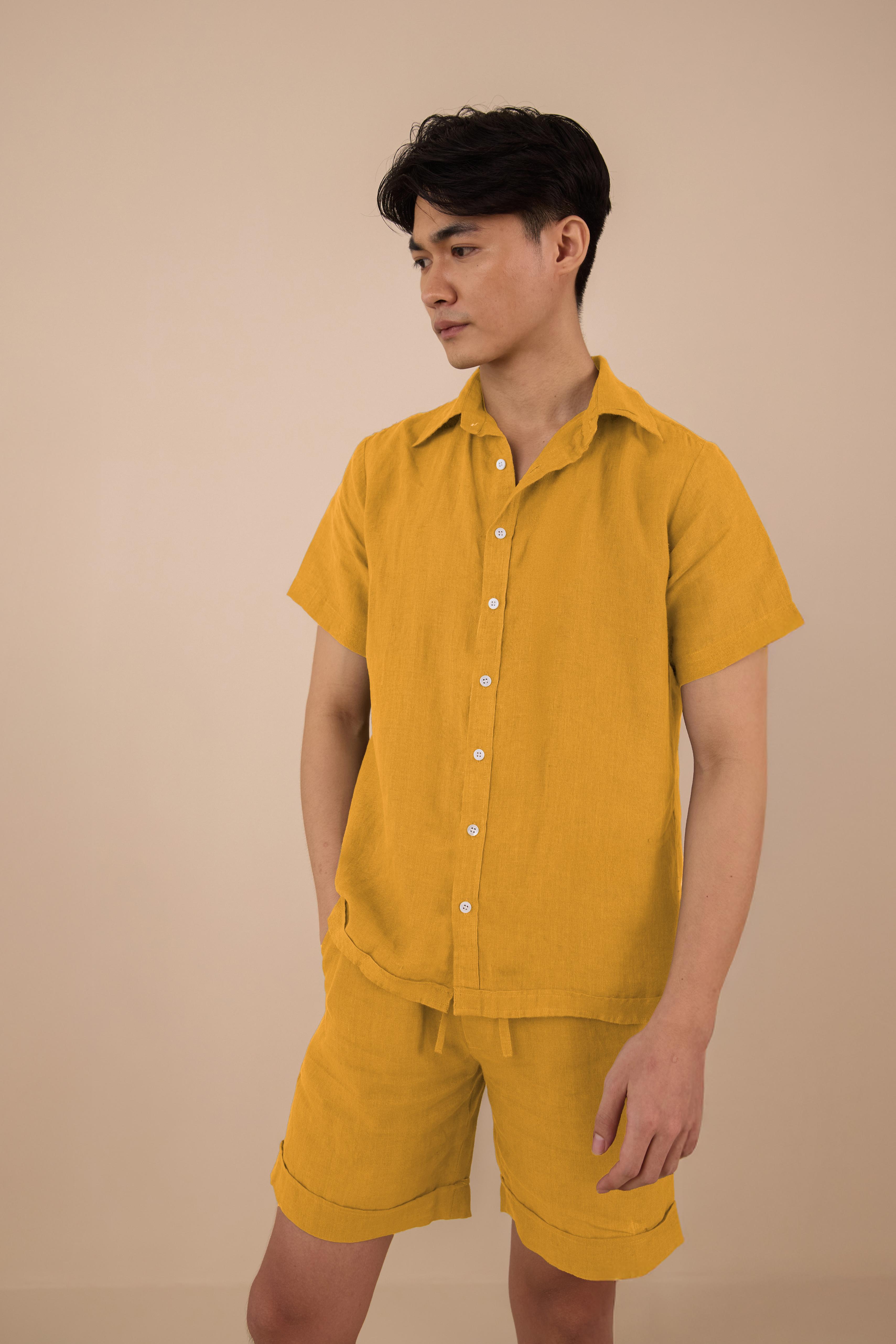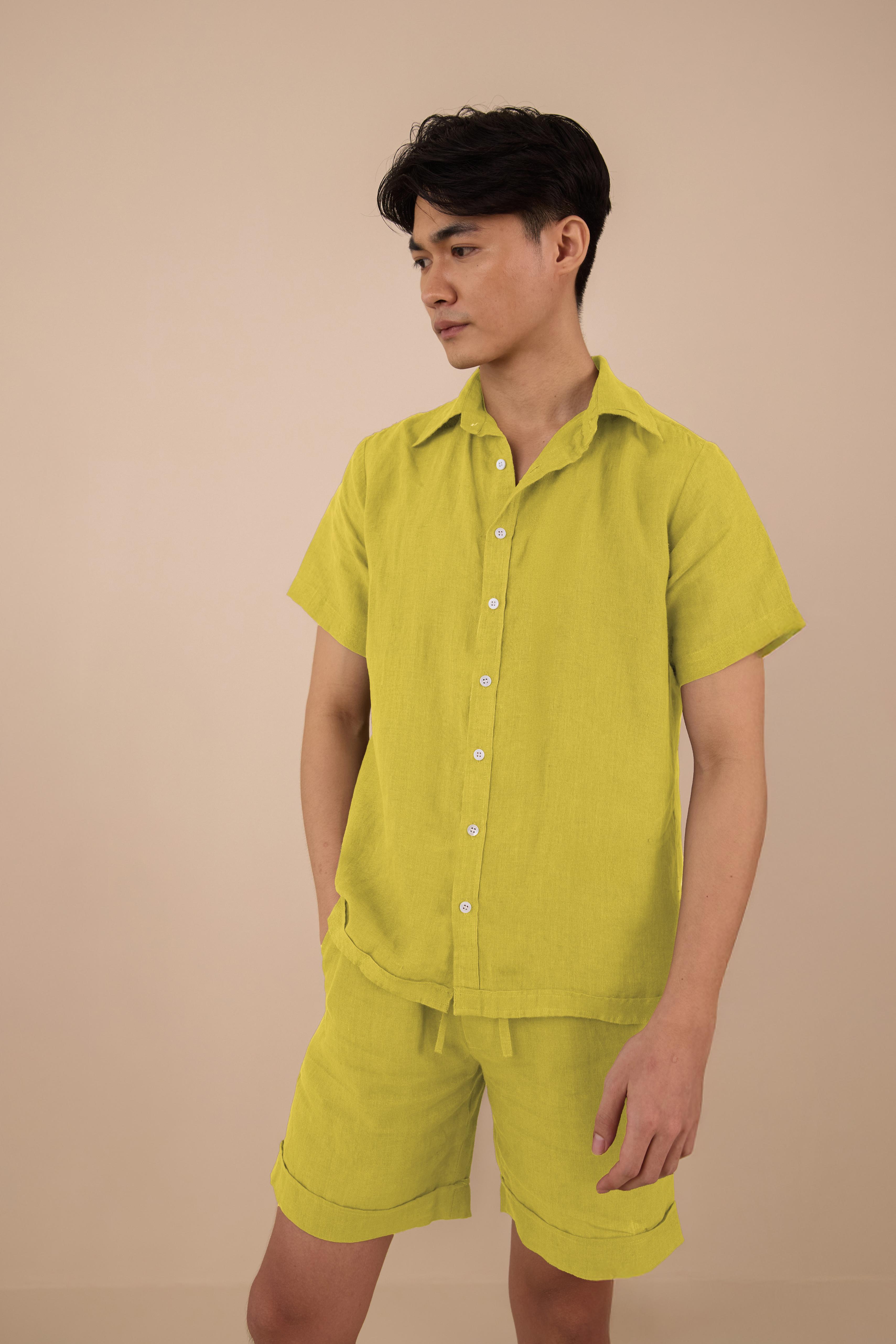 Subtle luxury and intricate attention is given to our Linen Enzo Loungewear set. Designed with a relaxed fit and a classic collar, paired with the clean linen shorts make it a wardrobe mainstay. Pure linen lends it breathability and texture, while shell buttons add a refined finish. Bring this loungewear home to embrace leisure today.