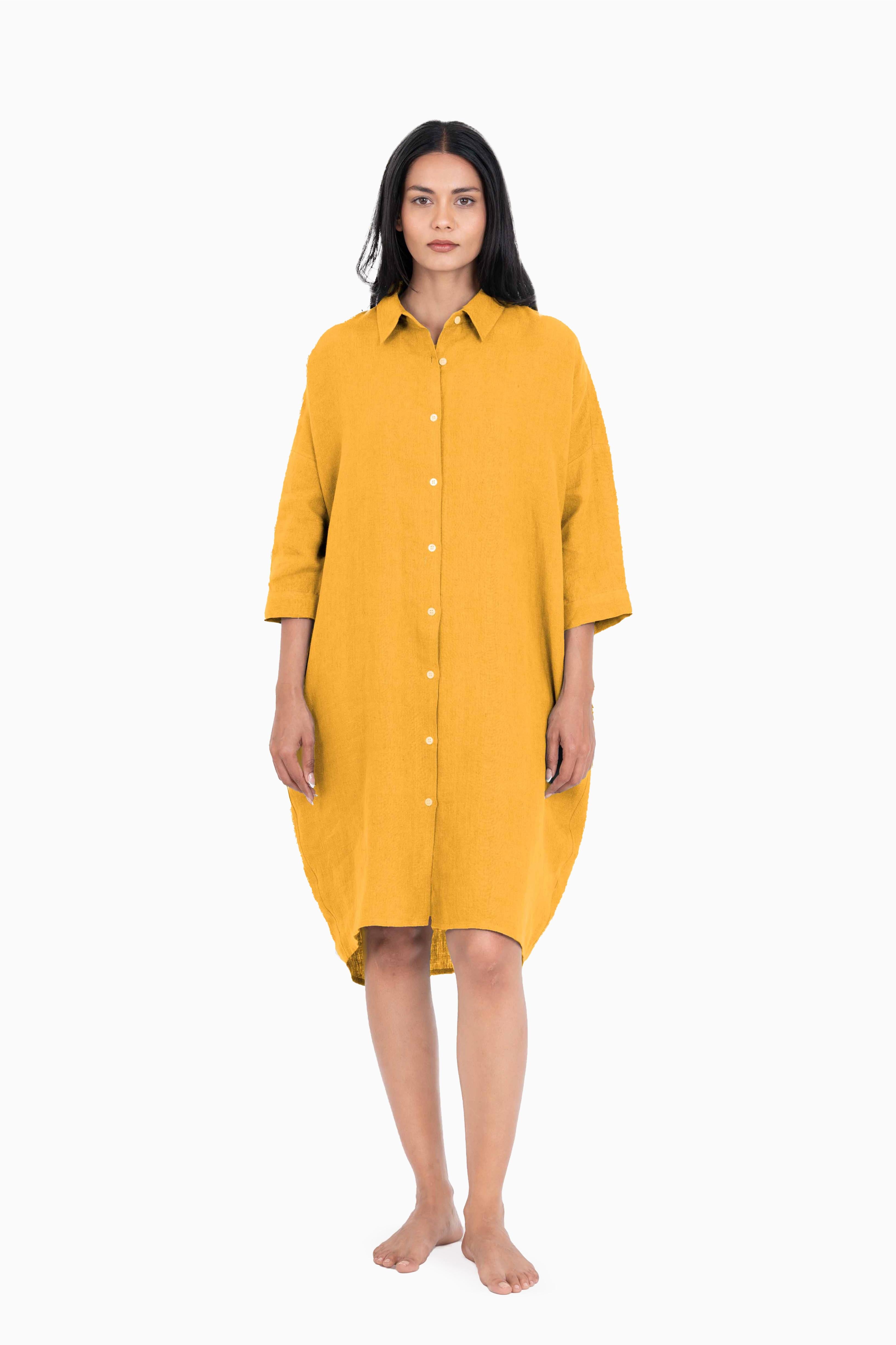 Linen Ferro Shirt is made to comfort you! Our artisans have skillfully crafted this European Linen dress that fits you most relaxedly. The simply sophisticated shirt dress has pockets to keep all your essentials safe! Bring it home today.
