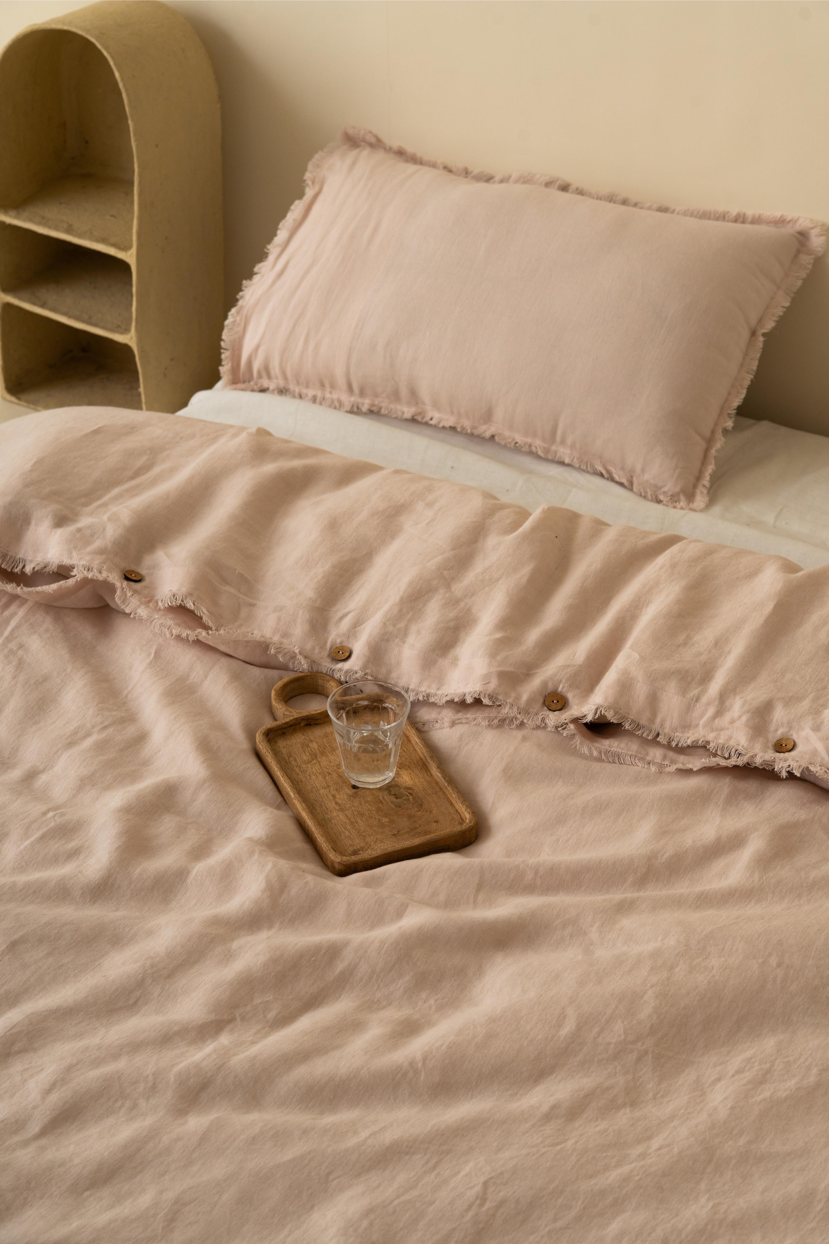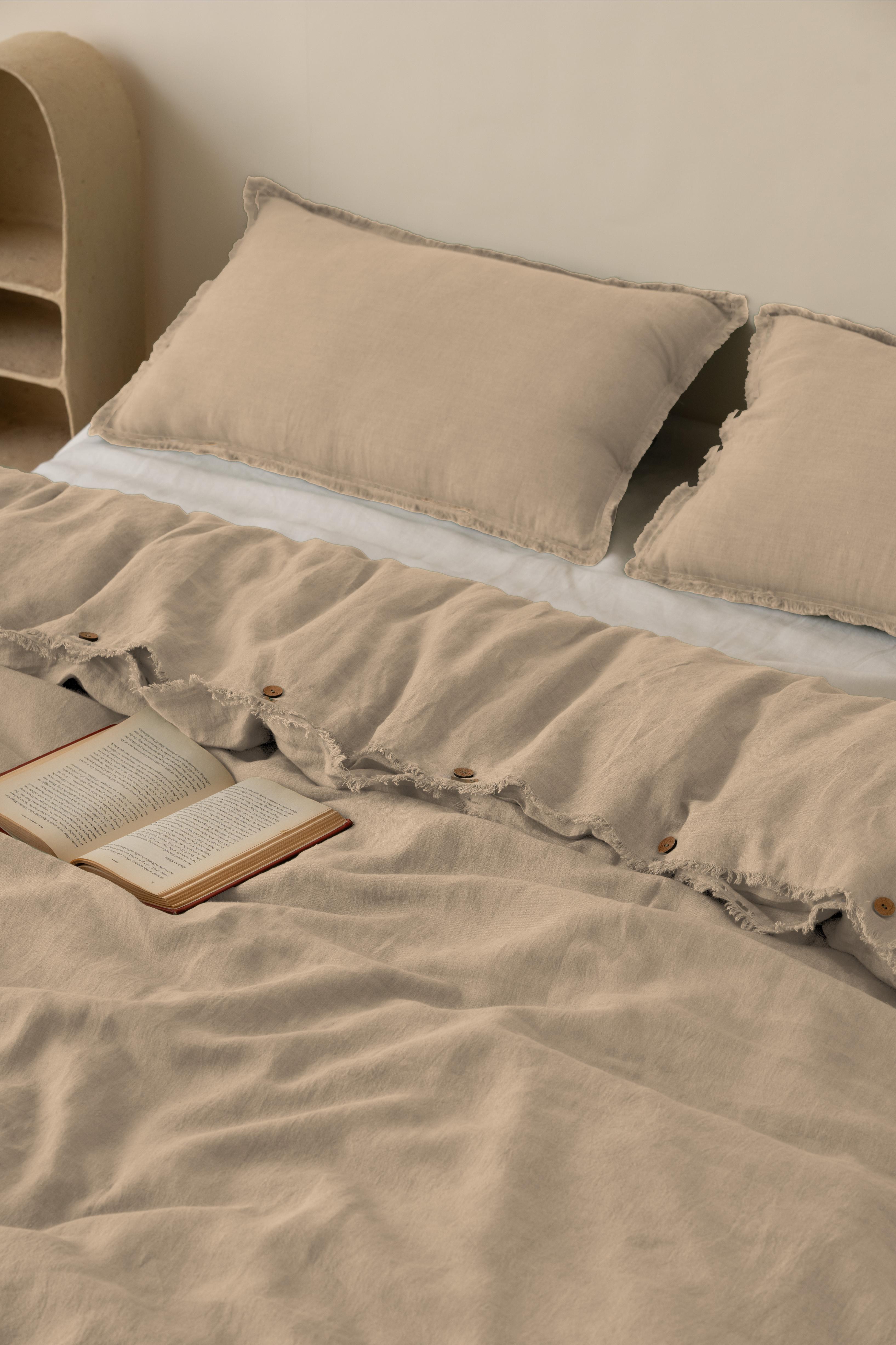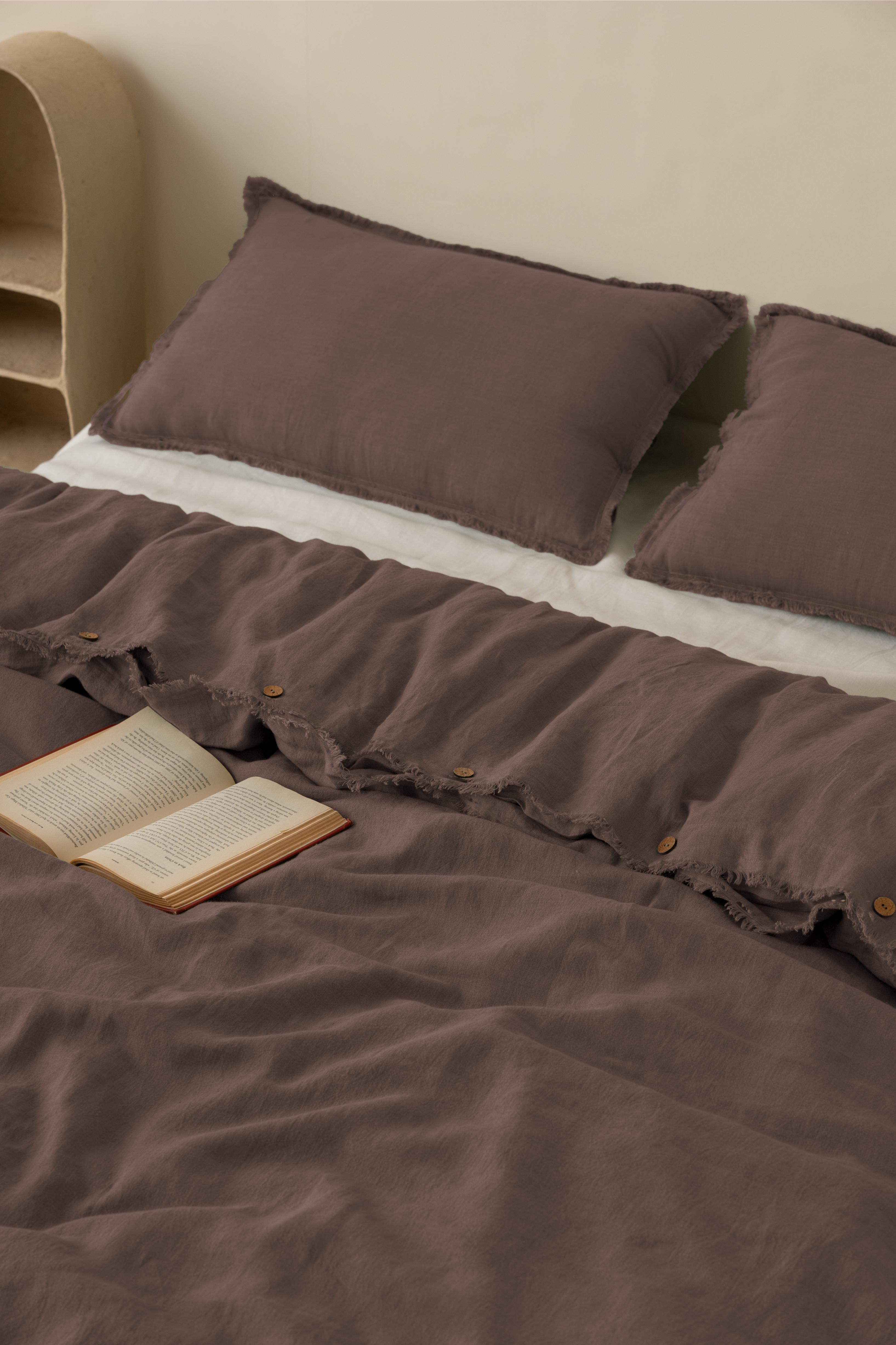 Linen Fringe Me Good Duvet Cover Set in Caramel Brown: We are here to enfold you with the warmth of luxury and fineness with our Linen Fringe Me Good Duvet Covers. A handcrafted beauty to class your sleep with softness and elegance, the fringes edge work will complete the feel of your bed.