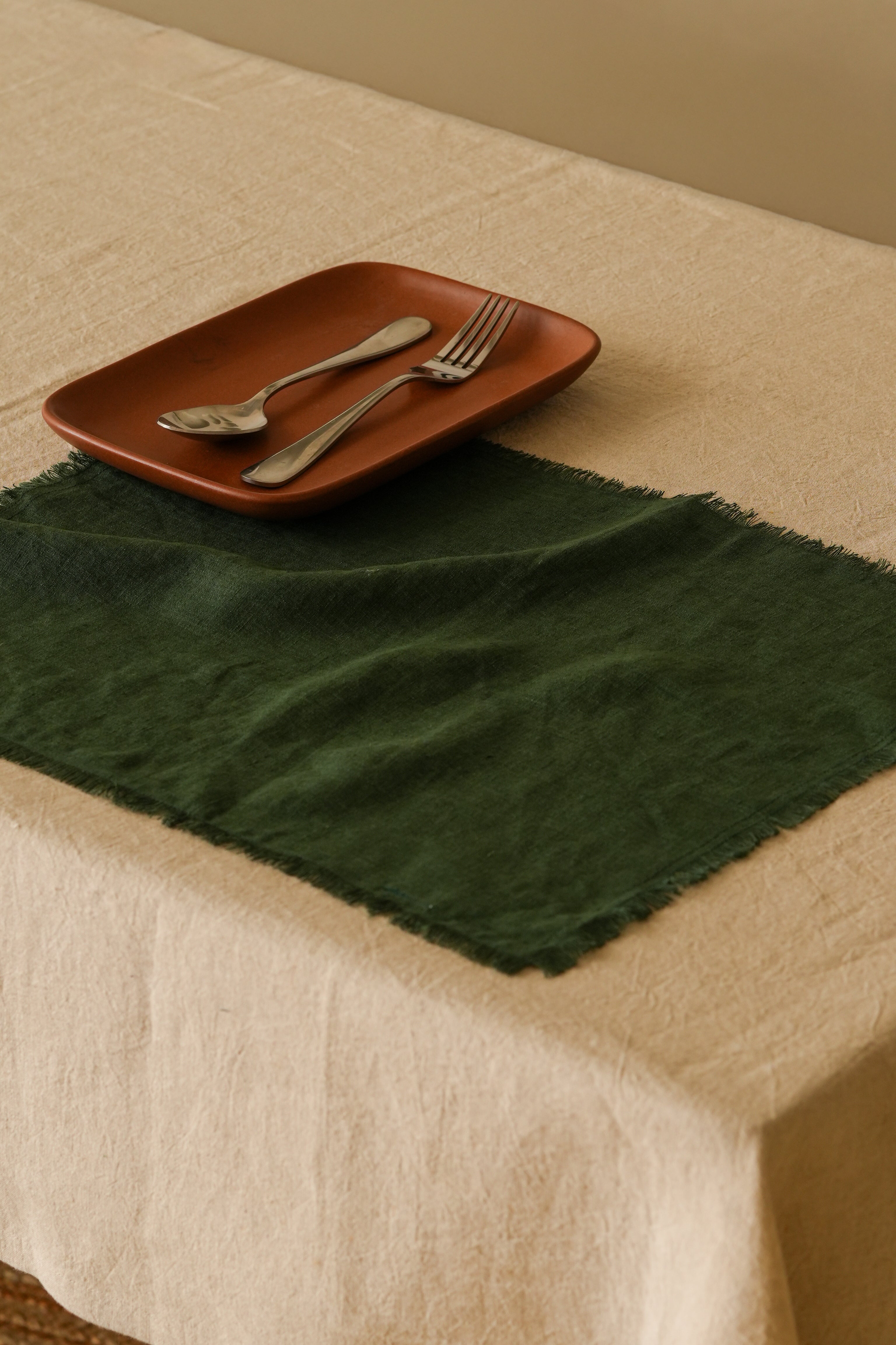 Add a touch of grace and statement to your dining setup with our Fringe Me Good Linen Placemats. Meticulously crafted with the softness of European Linen, these Placemat sets bring rustic charm to your special gatherings. Choosing our delicately fringed edges will boost the entire experience.