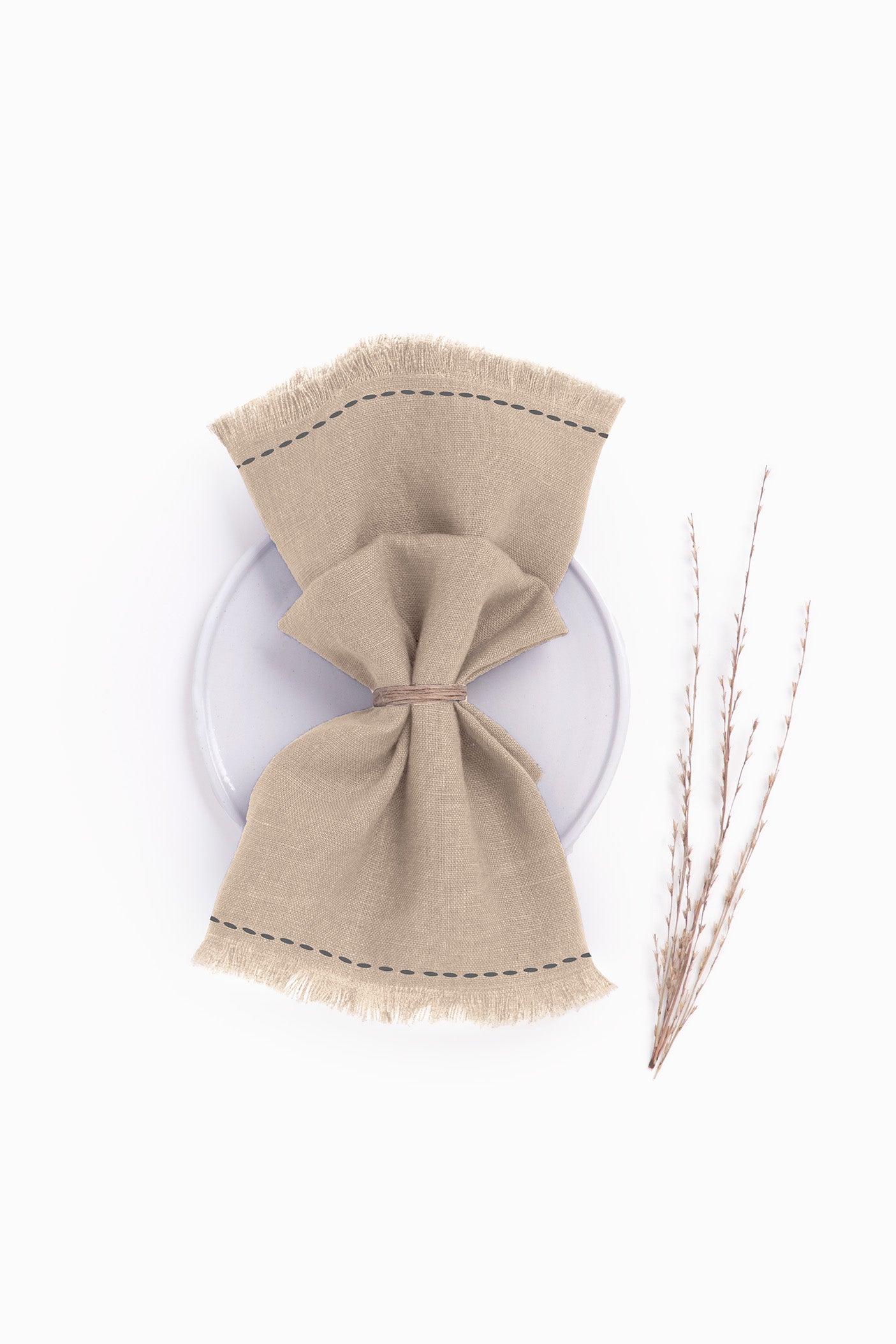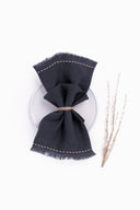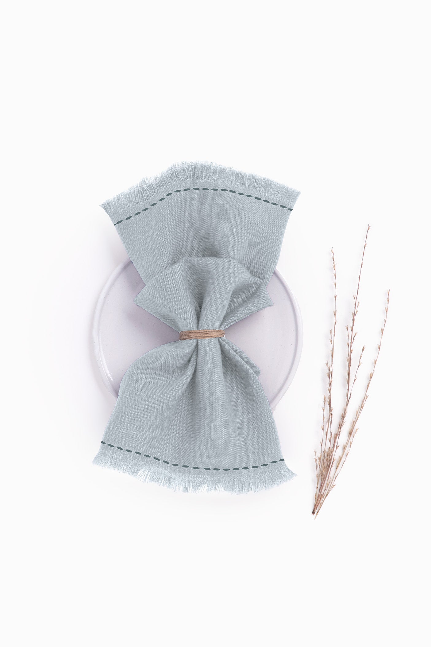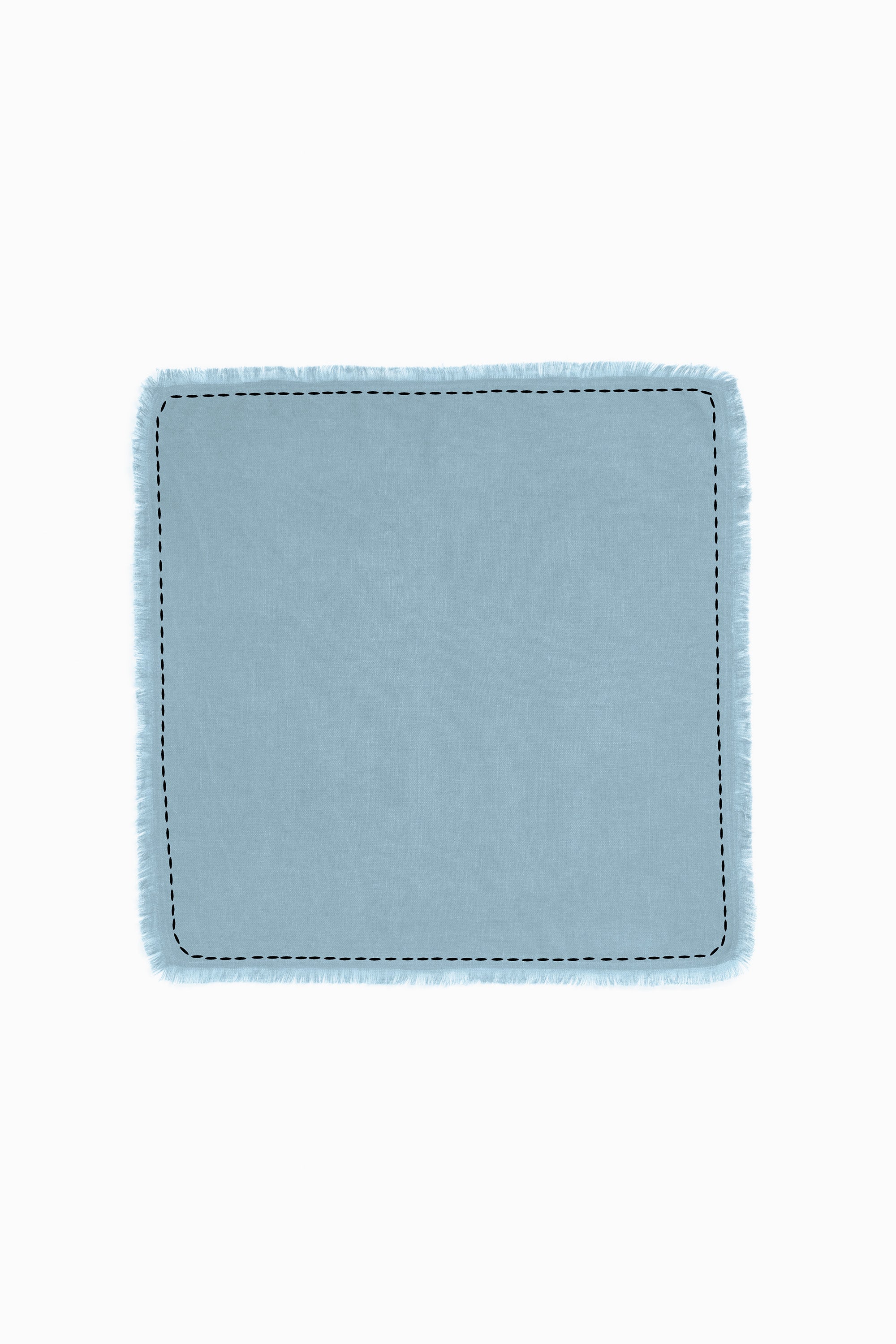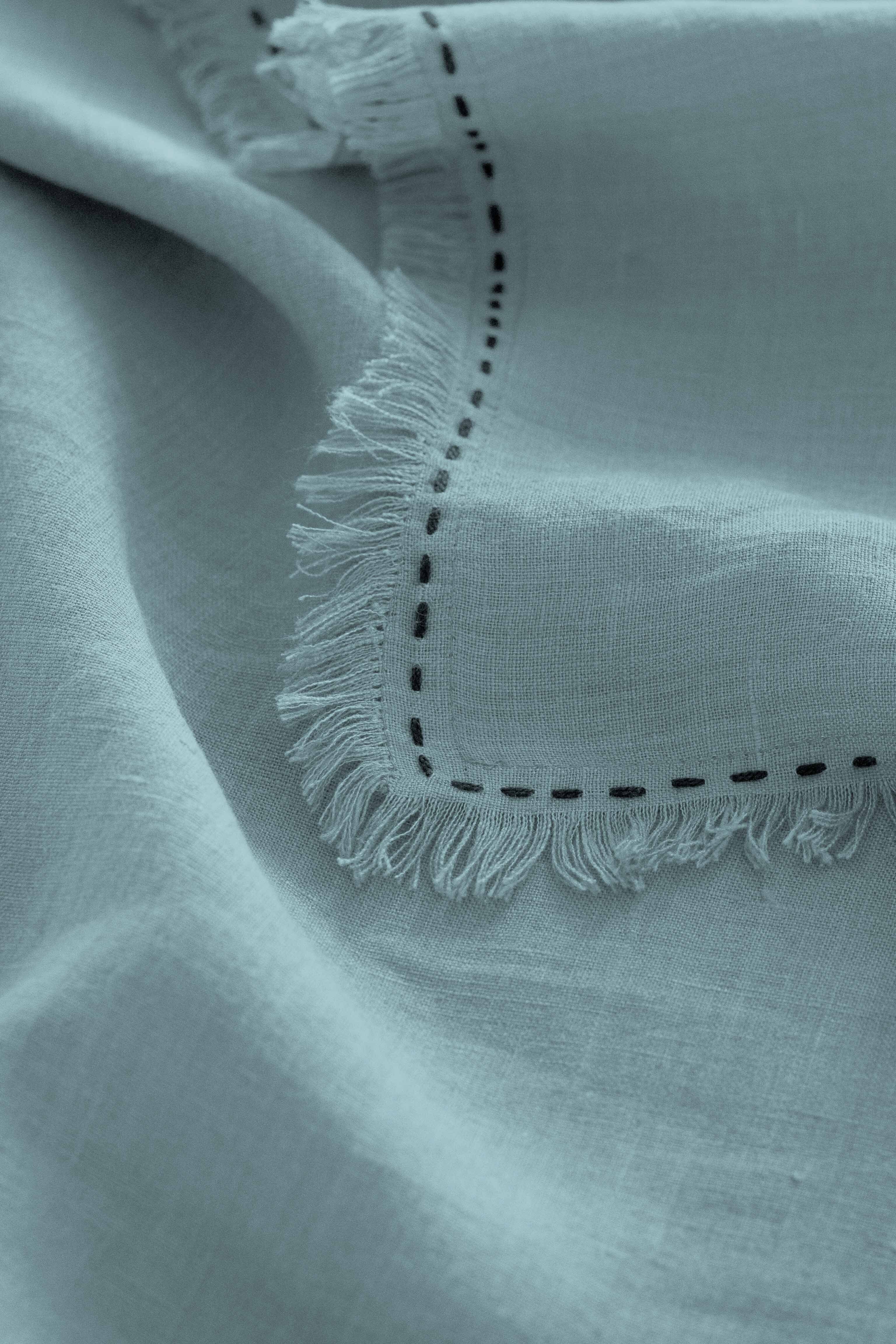 Linen Fringe-Me Kantha Napkin Set in Moody Blue : A coordinated look of our Linen Fringe Me Kantha Napkin Set collection can keep all the compliments coming your way. Our table linen selection is hand-curated with the utmost effort. The lavish fringes with detailed Kantha work around the edges can make your dinner table look absolutely amazing.