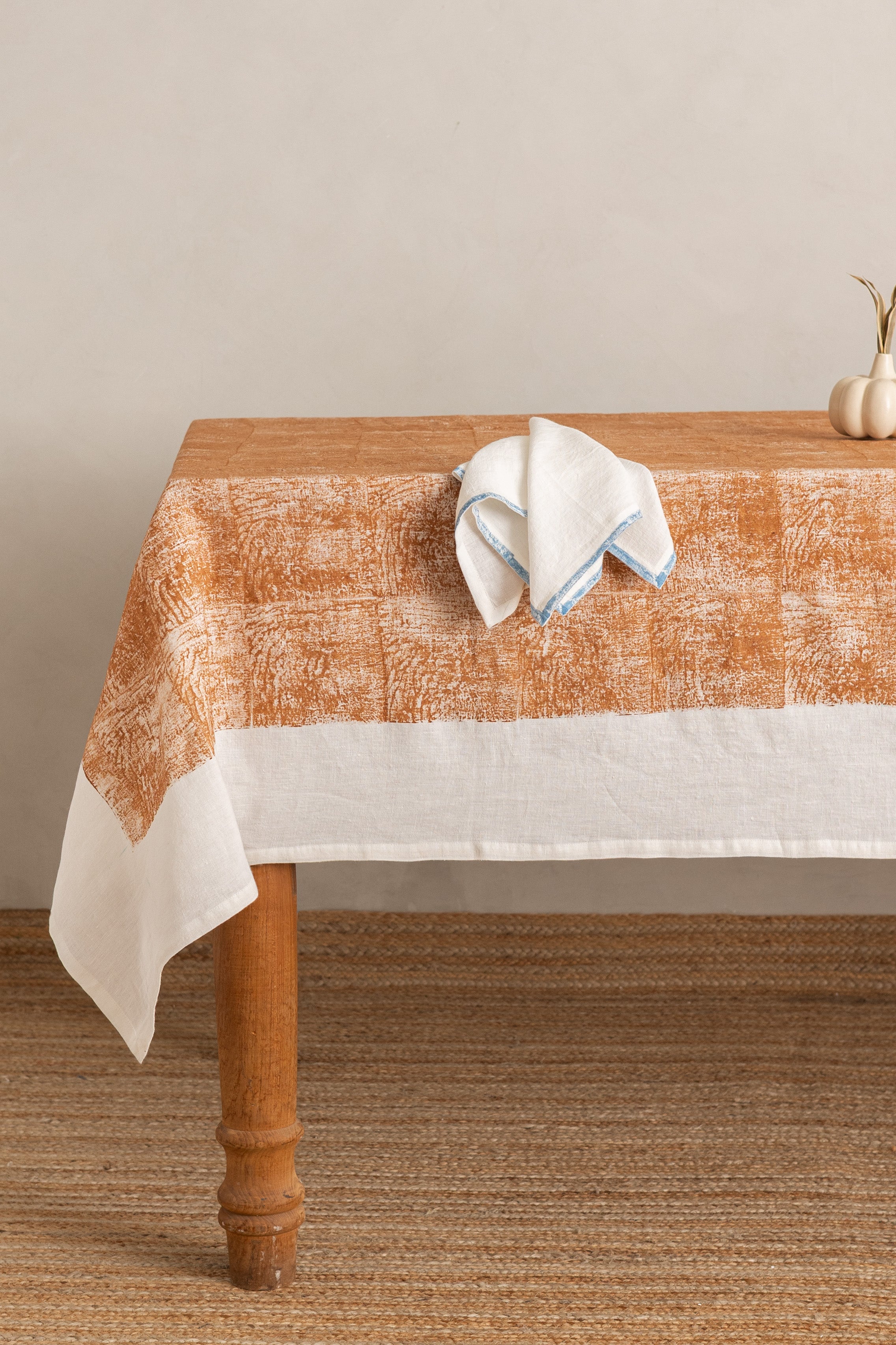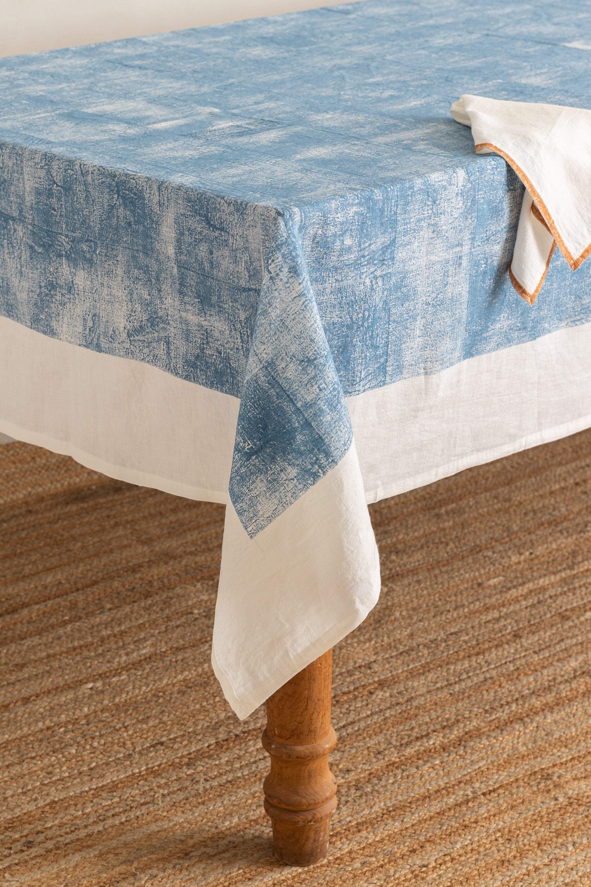 This European linen Gatsby tablecloth features classic Indian textured block prints in a serene blue palette. Breathable and elegant, it transforms everyday meals into elevated dining experiences. Style with neutral décor or matching table essentials for a cohesive and timeless table setting.