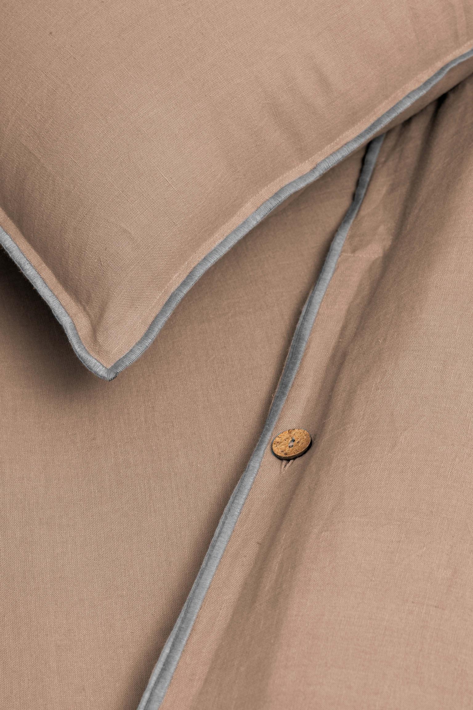 Linen Grey Needled Duvet Cover Set in Sandy Beige: Making it a habit for you to deal with the delicacy and utmost softness of our European Linens. Our enchanting collection of Linen Duvet Covers can make it easier to fall asleep comfortably in the heavenly touch. A duvet cover embellished with black needlework to showcase the art and love of our traditions. The linen fabric is moisture-absorbing, while washing the Linen Duvet Covers is easy. Begin your journey of soothing touches and luxurious looks to decorate your bedding in the best way possible.