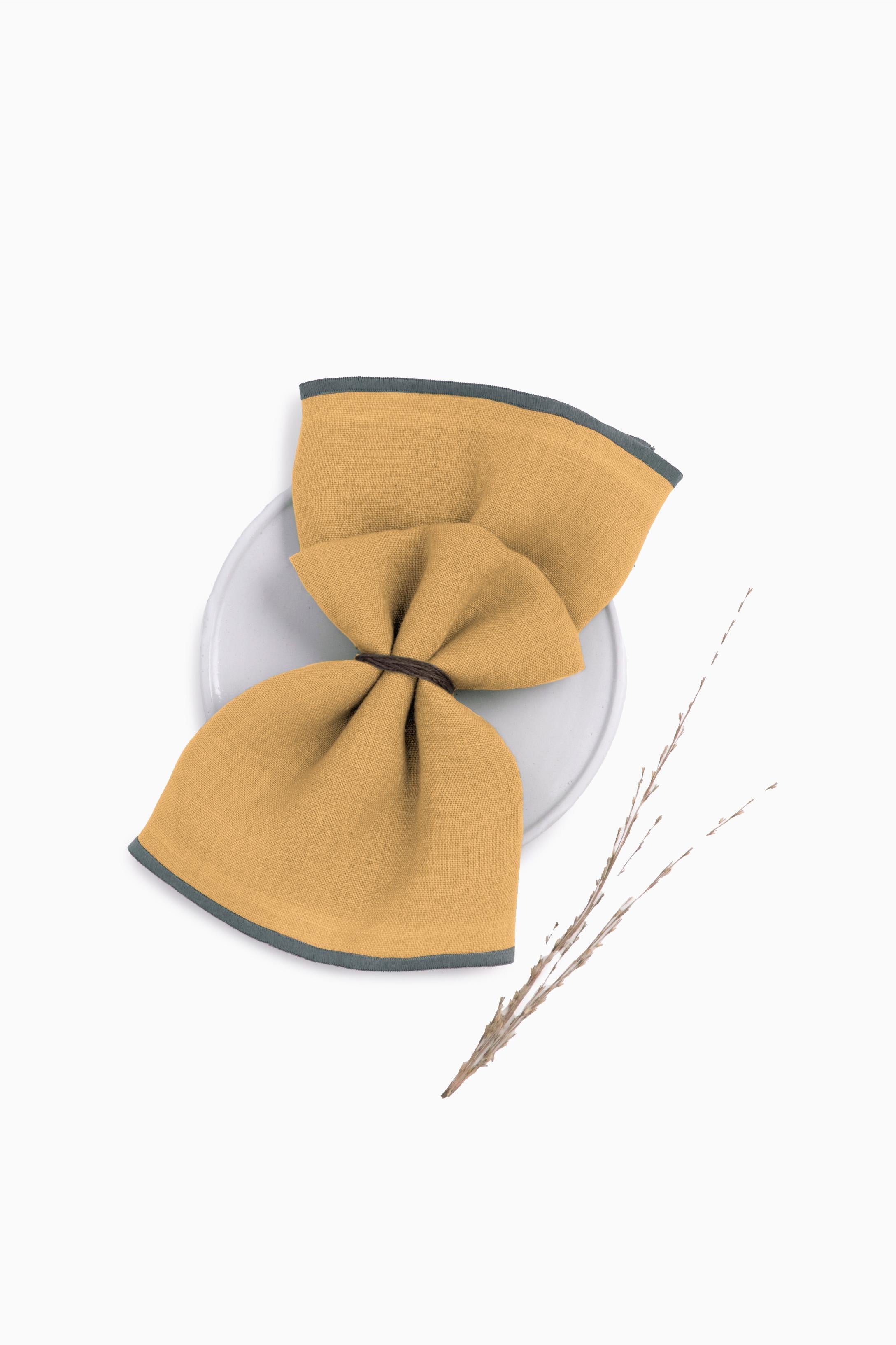 Linen Grey Needled Napkin Set in Dusty Gold :The perfect look of our Linen Grey Needled Napkin Set collection stands ready to offer you the most exquisite grey needlework around the edges. The supreme selection of our European Linens with impeccable touch. Get a look at your dining area now.