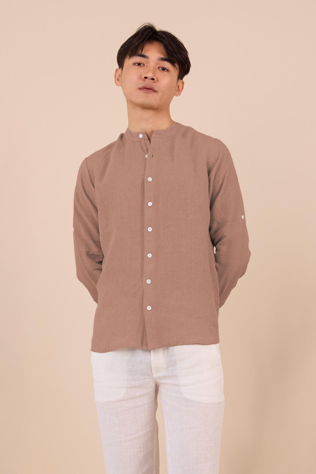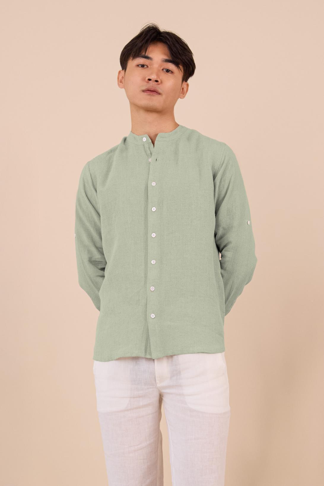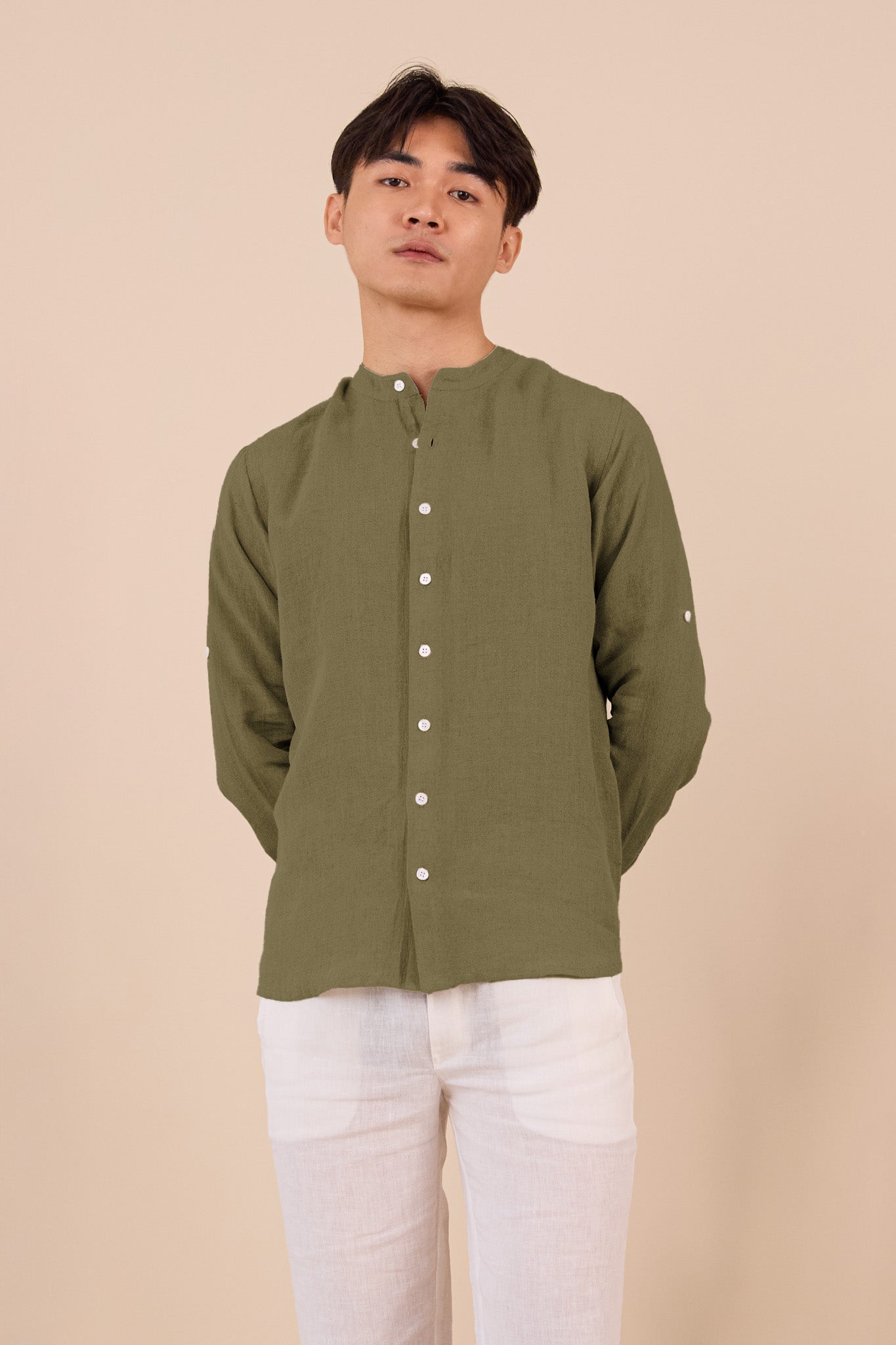 Explore our favourite Linen Jasper Shirt crafted with 100% European Linen for maximum comfort. The band-collar shirt features full sleeves, with shell buttons adorning the silhouette on the placket and cuffs. Discover the entire collection today.
