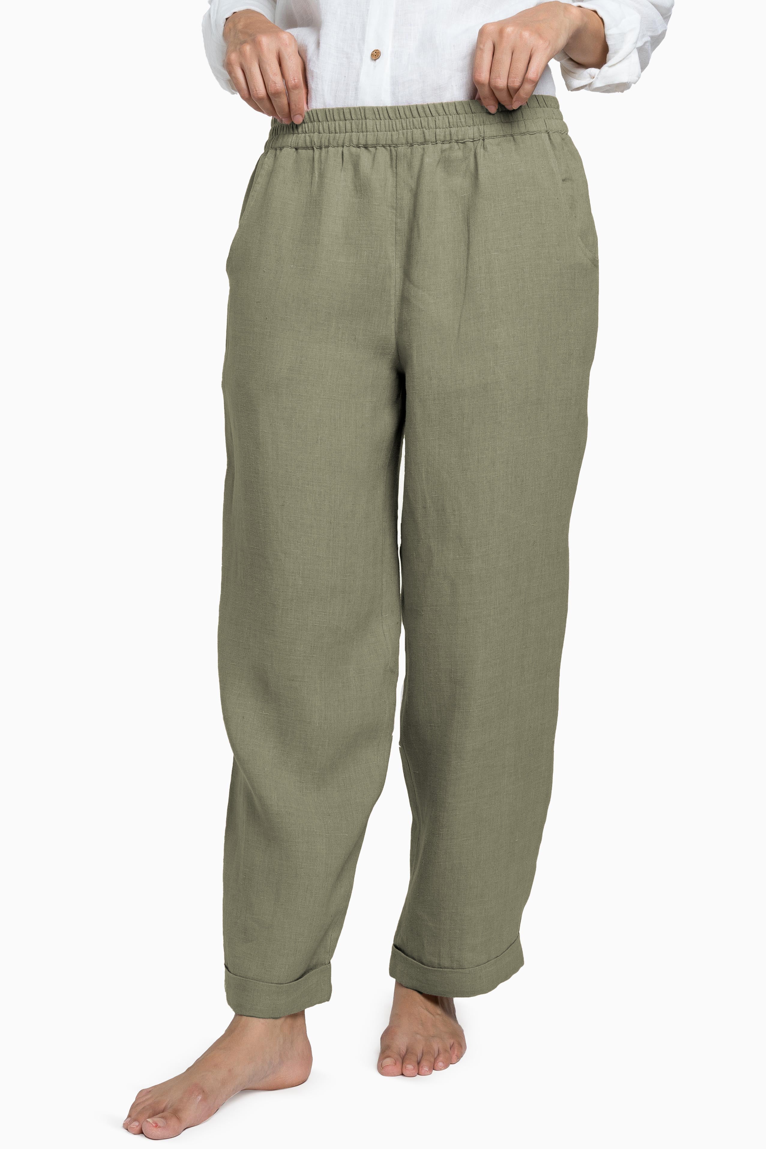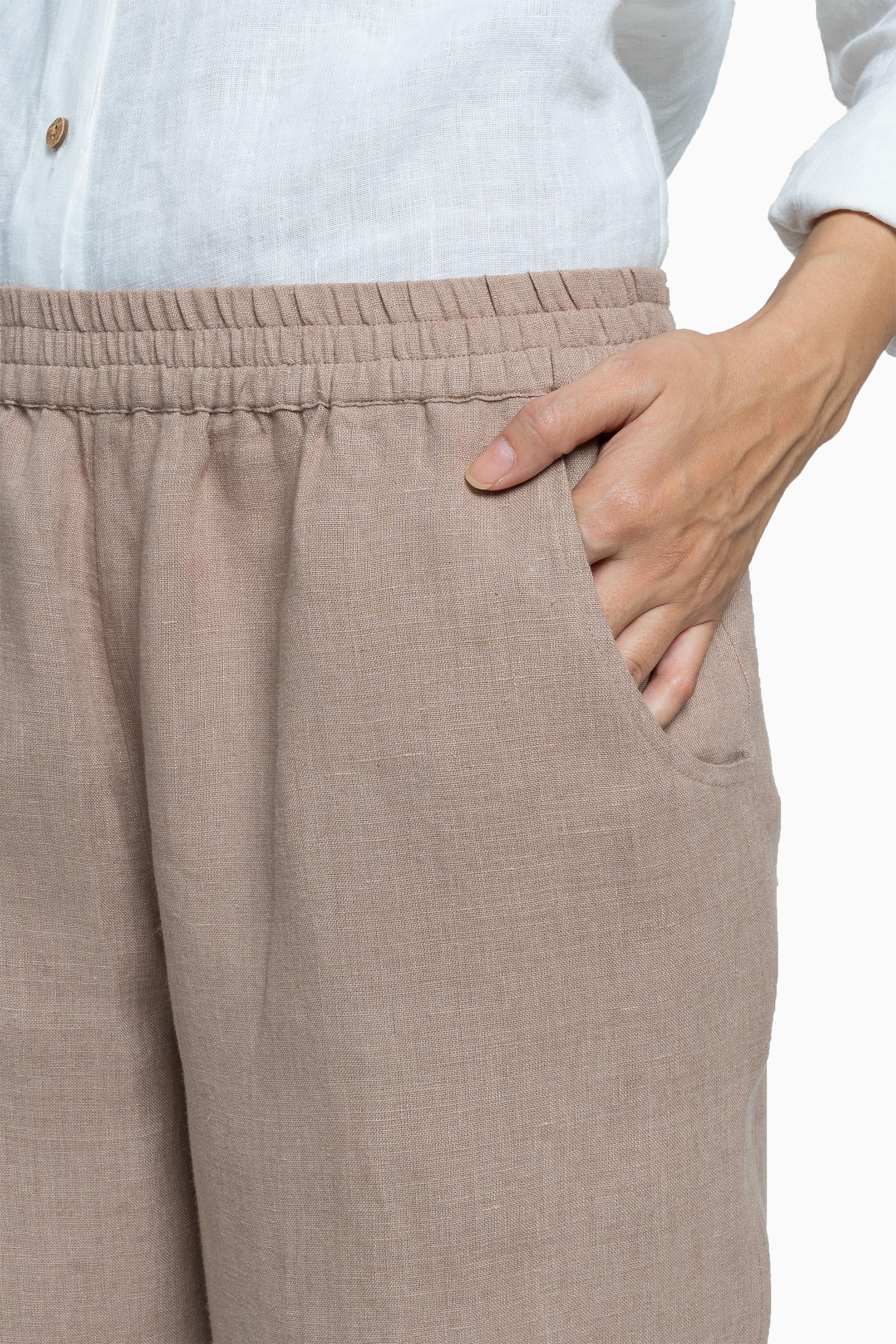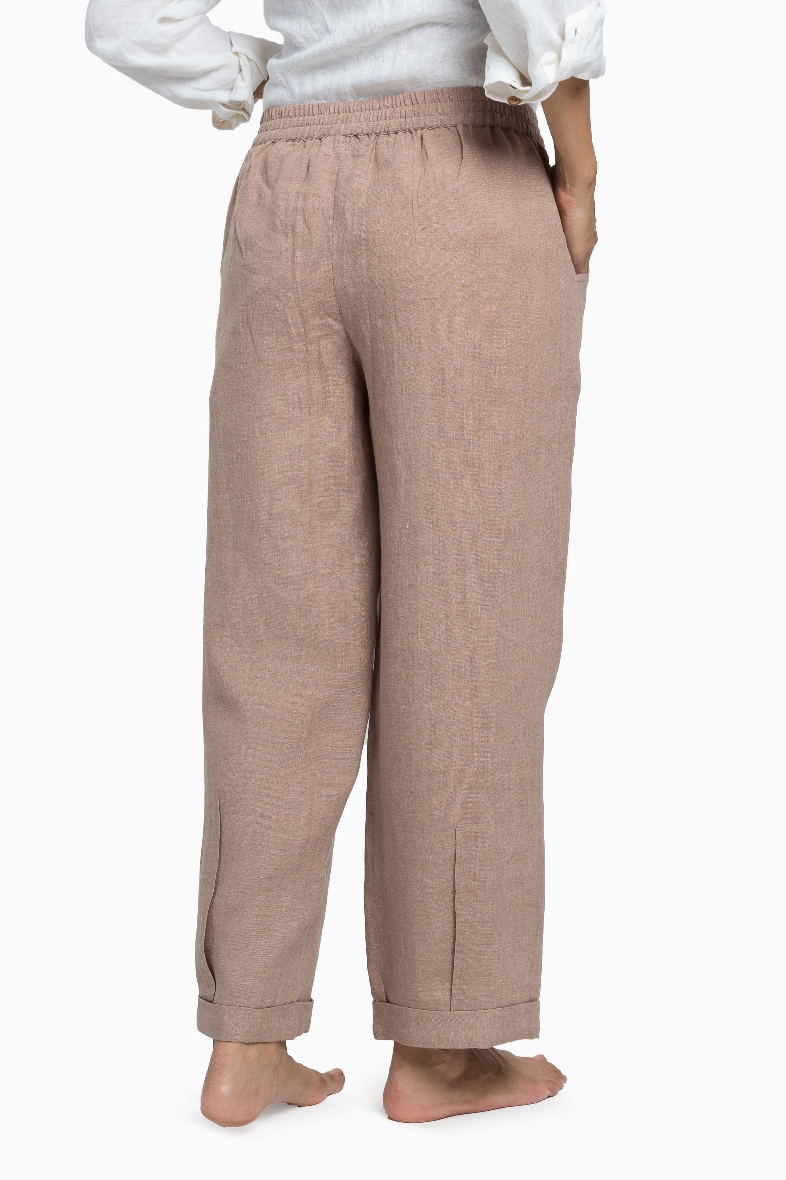 The exquisite Linen Jude Pants can refine your style in a blink. This ankle-length trouser is rolled up to the hemline and pleated back to fit you more perfectly. The soothing texture of European Linens and the ease of twin pockets and elasticated waist make it remarkable. A superior arrival will enchant your lifestyle with a flow of love and leisure in this mundane era.
