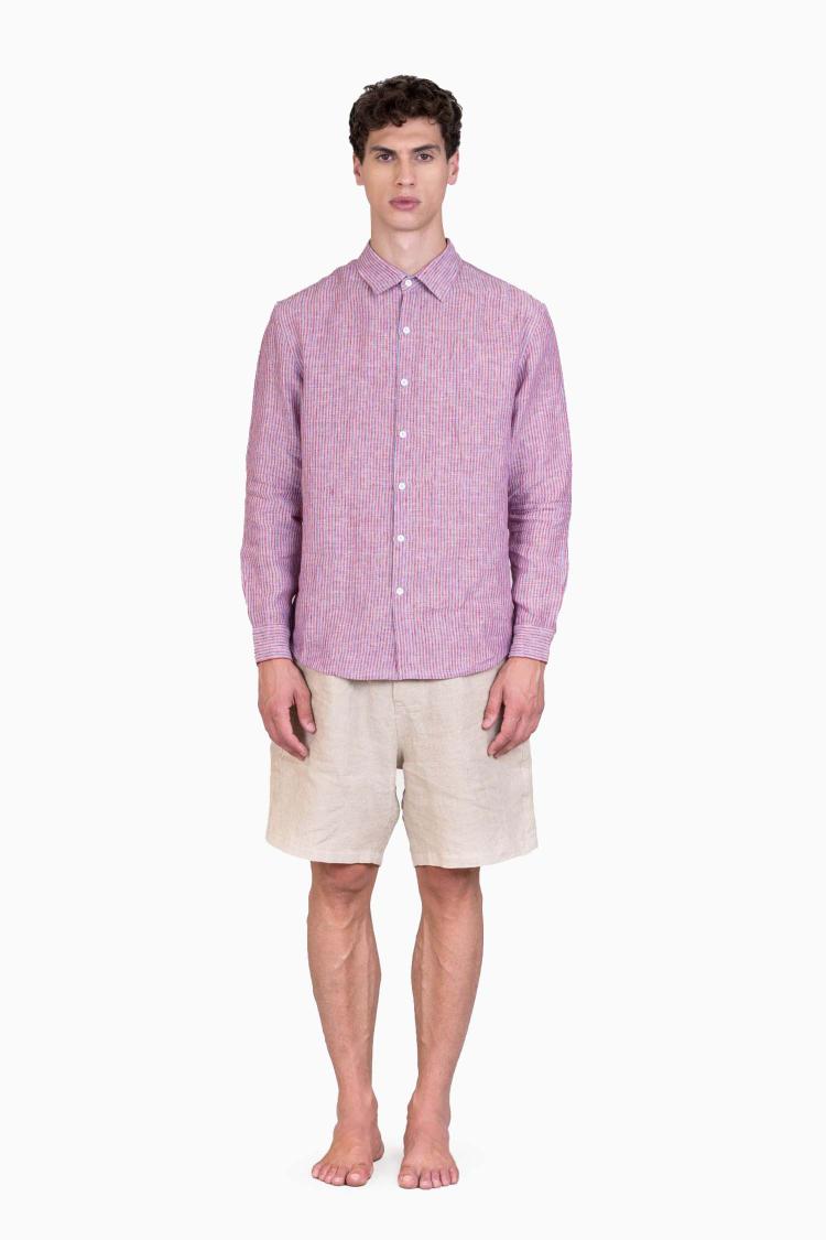 Bring your favourite Linen Nathan Shirt home today. It's a classic collared creation with a placket adorned with shell buttons. The functional pocket at the front elevates the beauty of this entire outfit.
