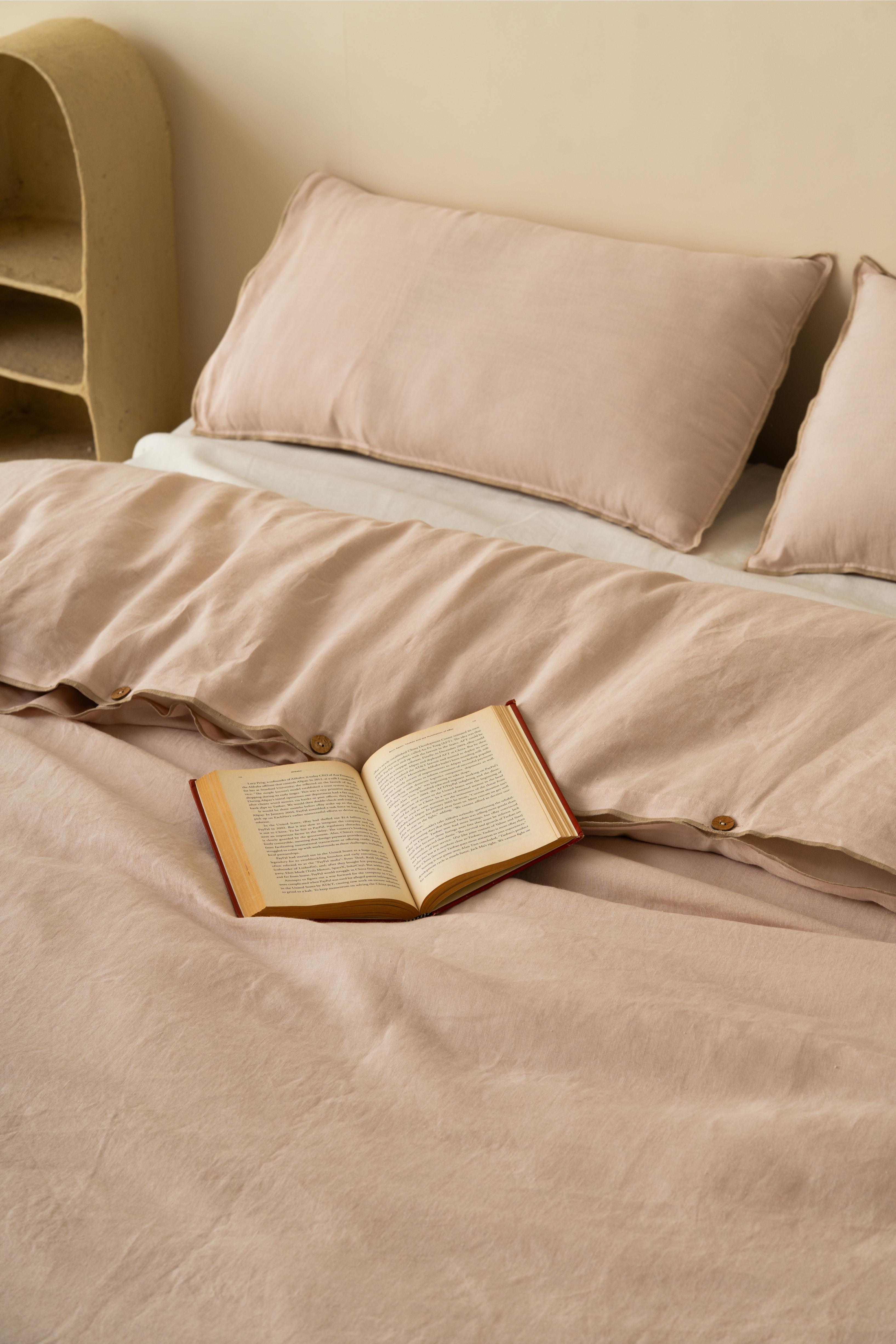 Linen Natural Needled Duvet Cover Set in Sandy Beige: Unveil the fine quality linens here and now. An organically handcrafted Duvet Set edged with Natural Needlework is all that makes it so beautiful and outstanding. You will finally be able to sleep in a cloud-like feel as soon as you get a hold of our collection. The ravishing collection also comes in several colors, with two matching pillowcases decorated with coconut husk buttons. Delight yourself with a beautiful Linen Natural Needled Duvet cover immediately.