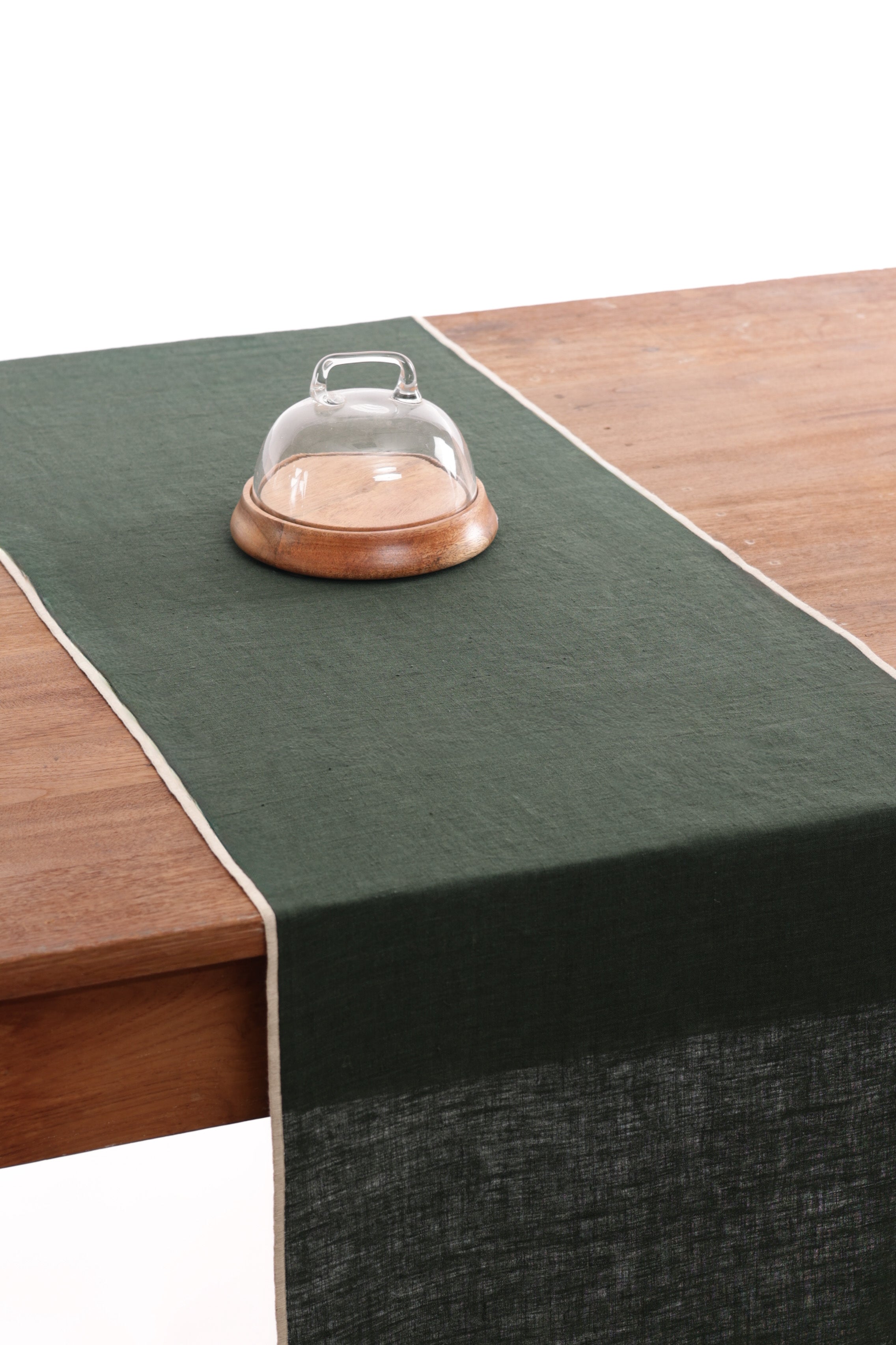 Linen Natural Needled Table Runner in Bottle Green: Add a trace of lux with our Linen Natural Needled Table Runner collection. With the intricate Natural thread work around the edges with the delicacy of European Linens, we come bearing nothing but a fine-dine experience for you. Embrace the graceful creations here.
