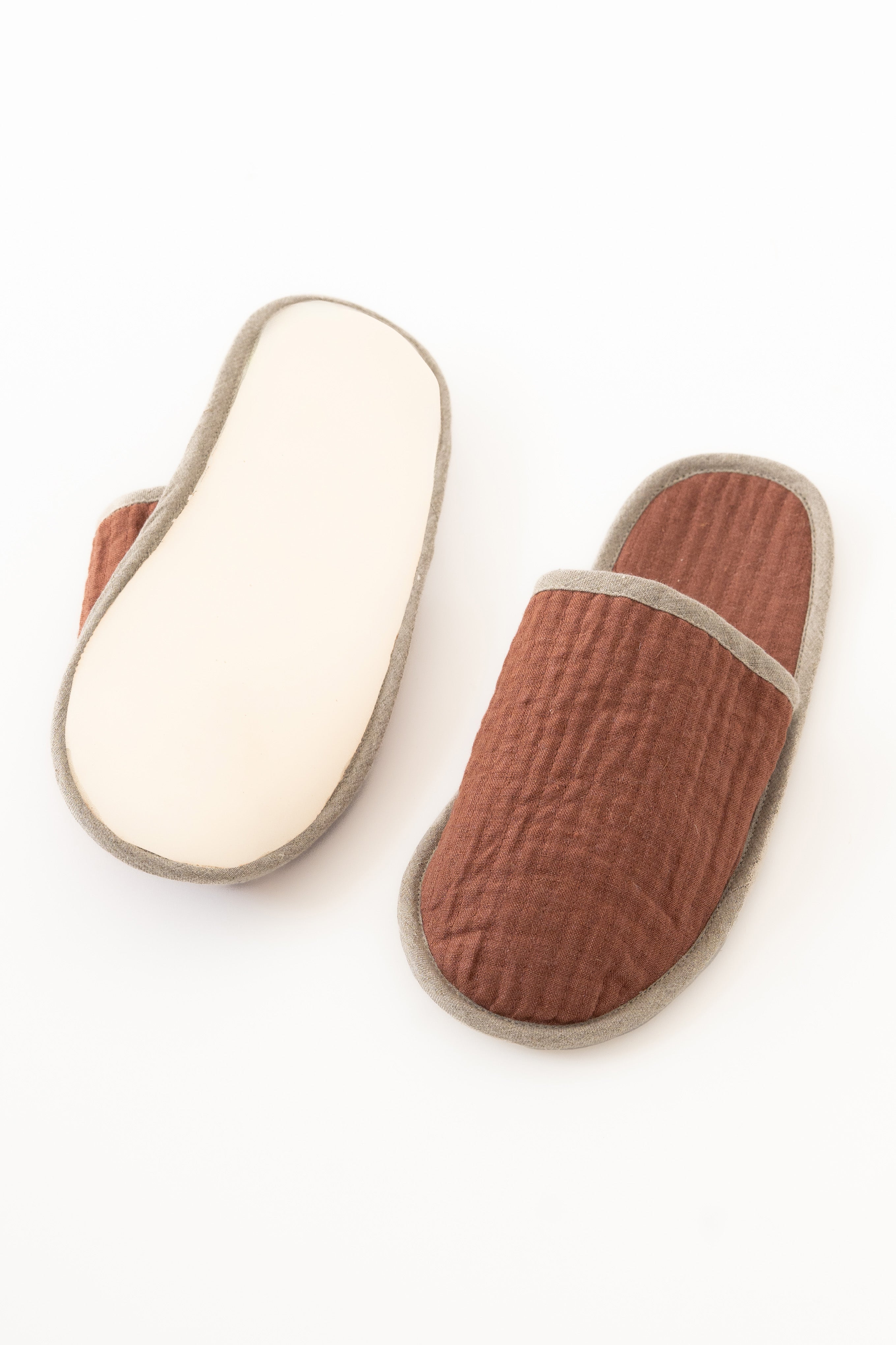 Our Linen Natural Piping Slippers have a touch of structure with soft contrast. They offer understated elegance in every step you take at home. Explore the solid collection today.