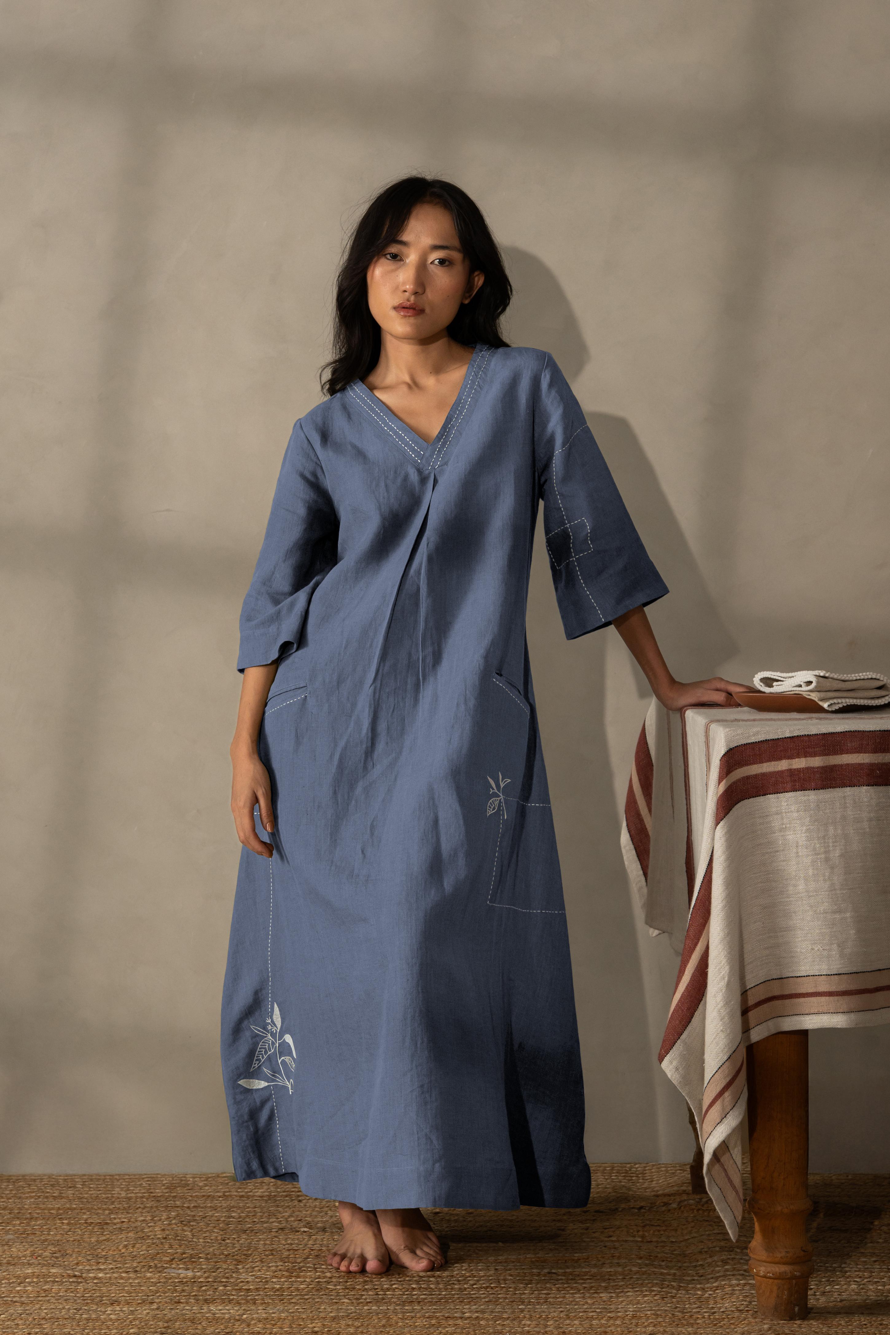 Wrapped in the soft serenity of Olive Mist, the Linen Nerina Dress is a breath of stillness. Subtle embroidery adds just the right amount of sweetness, explore the serenity collection today.