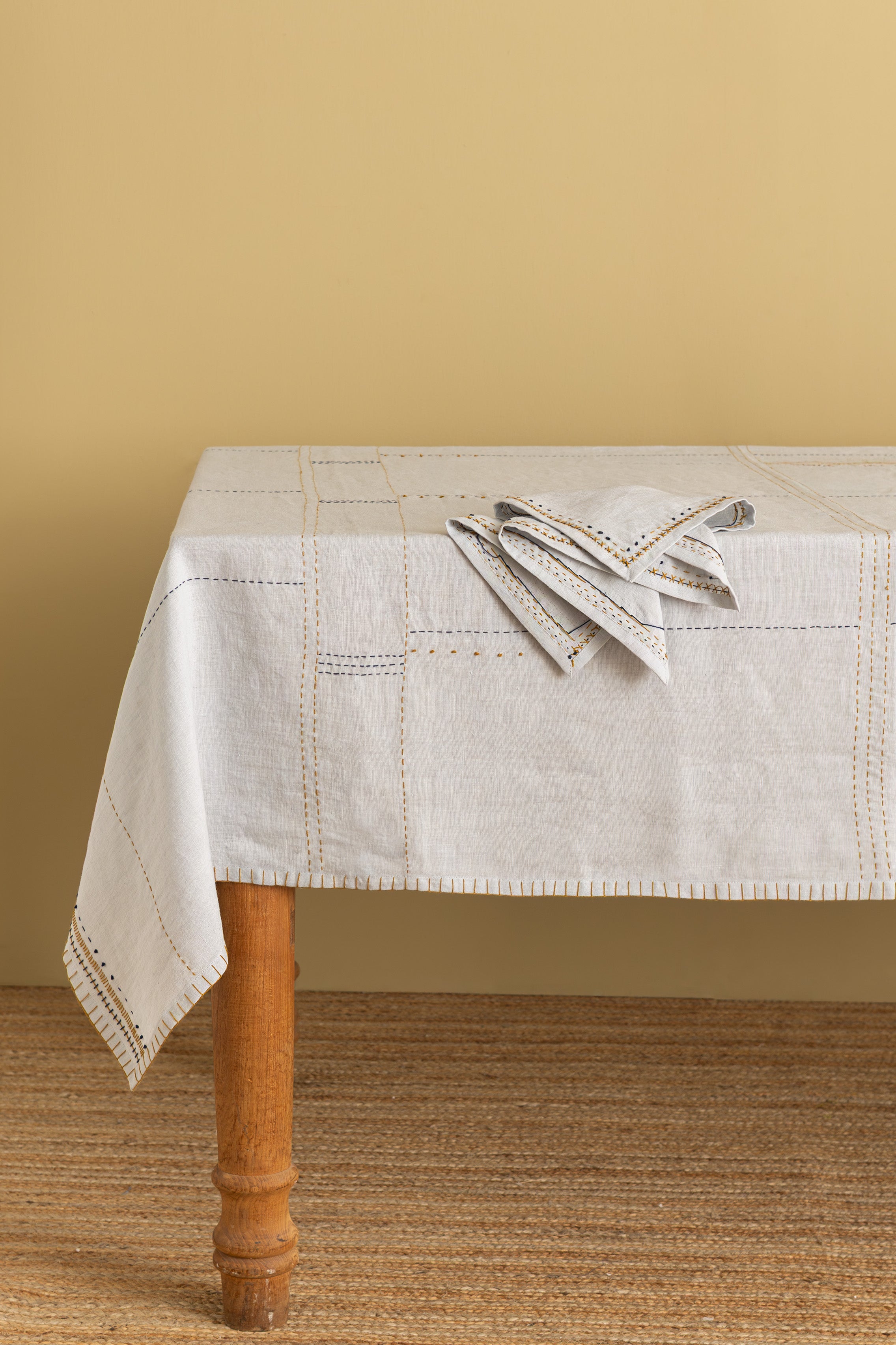 Transform your dining experience with our Linen Nestle Tablecloth, crafted from pure linen fabric. This handmade tablecloth showcases exquisite hand embroidery work, featuring a variety of stitches that add a unique charm.Our sustainable tablecloth is not only a stunning addition to your home but also a conscious choice.Each piece is a testament to skill and craftsmanship. Elevate your table setting while embracing sustainability with a beautiful linen.