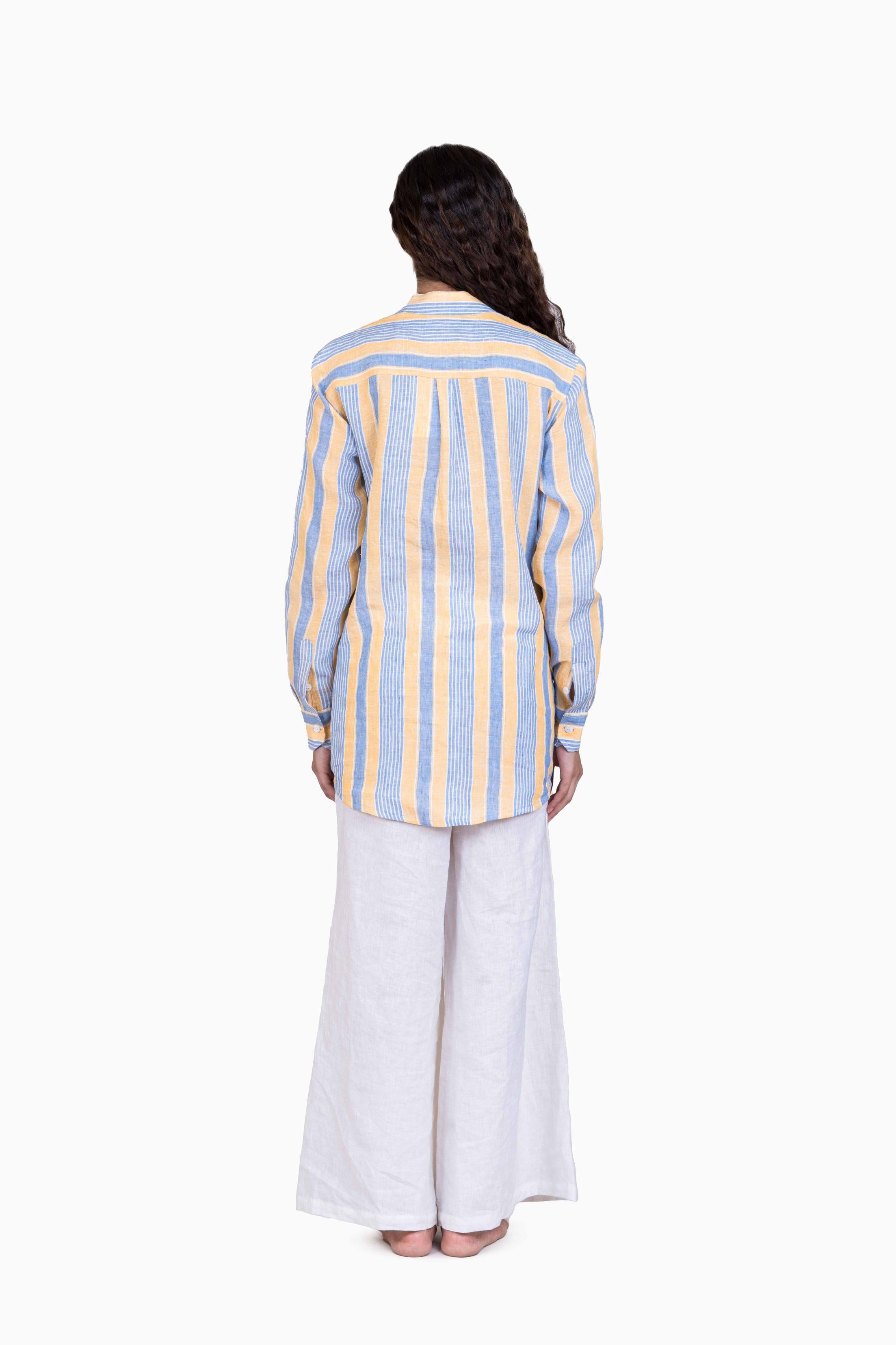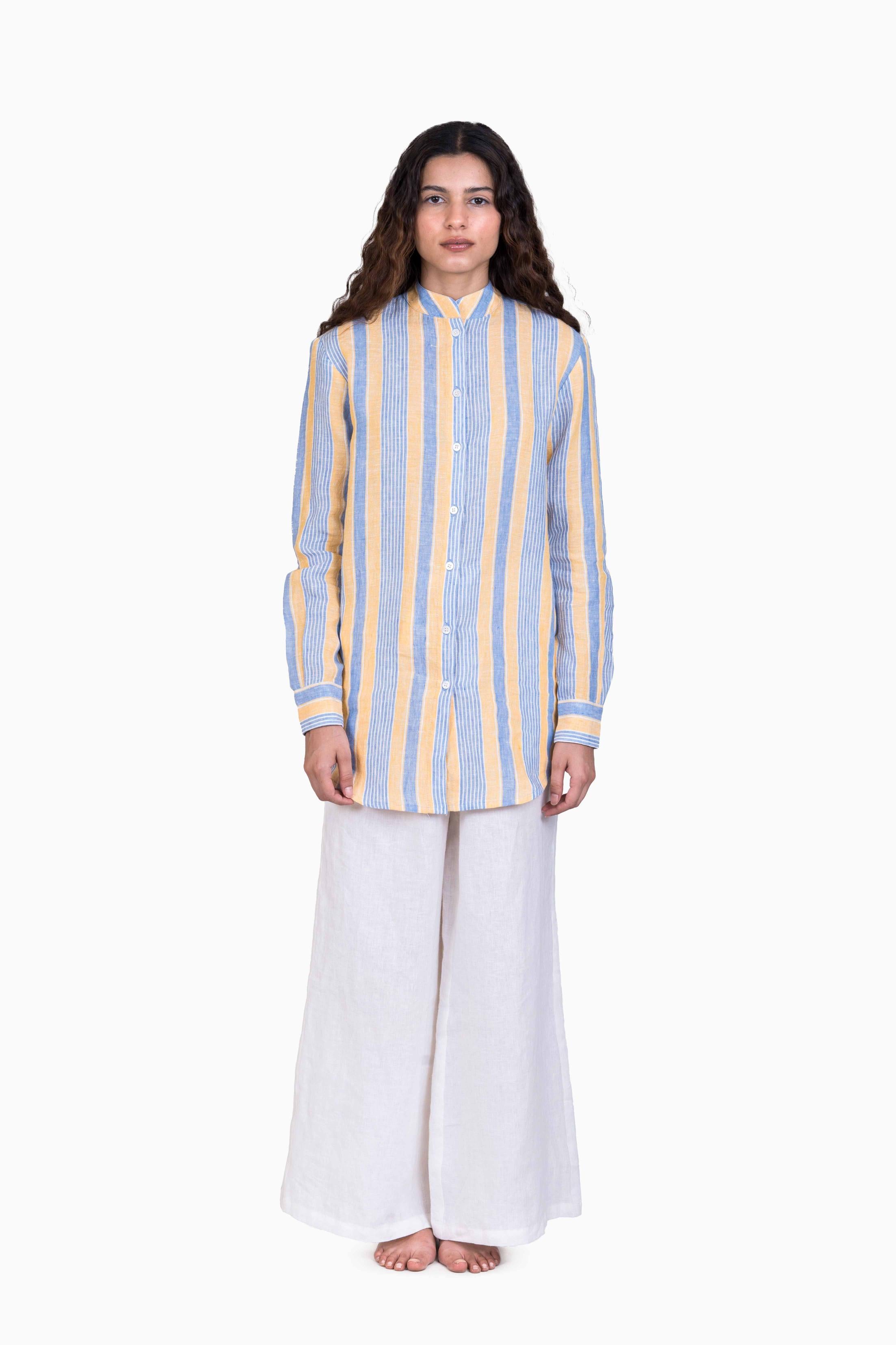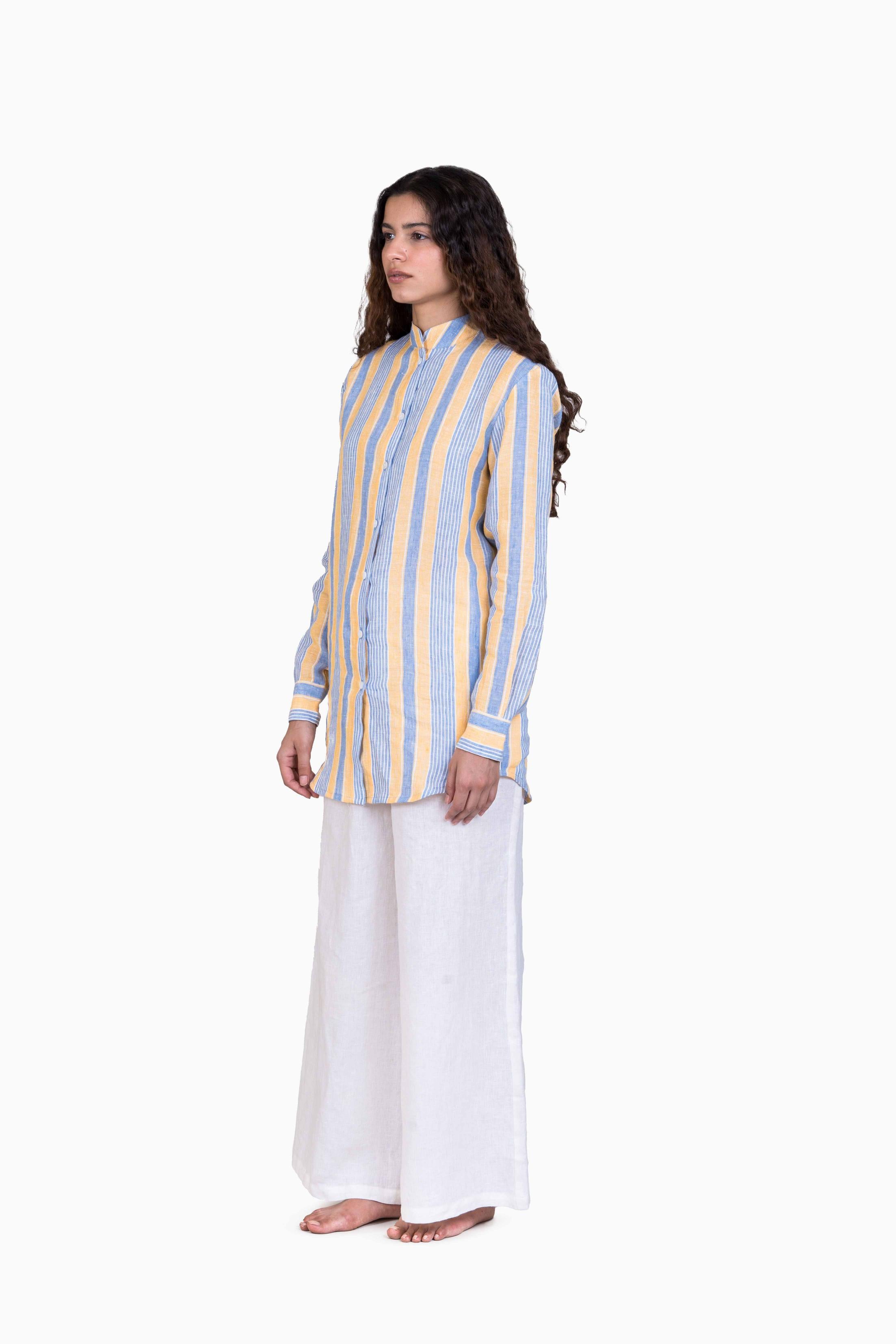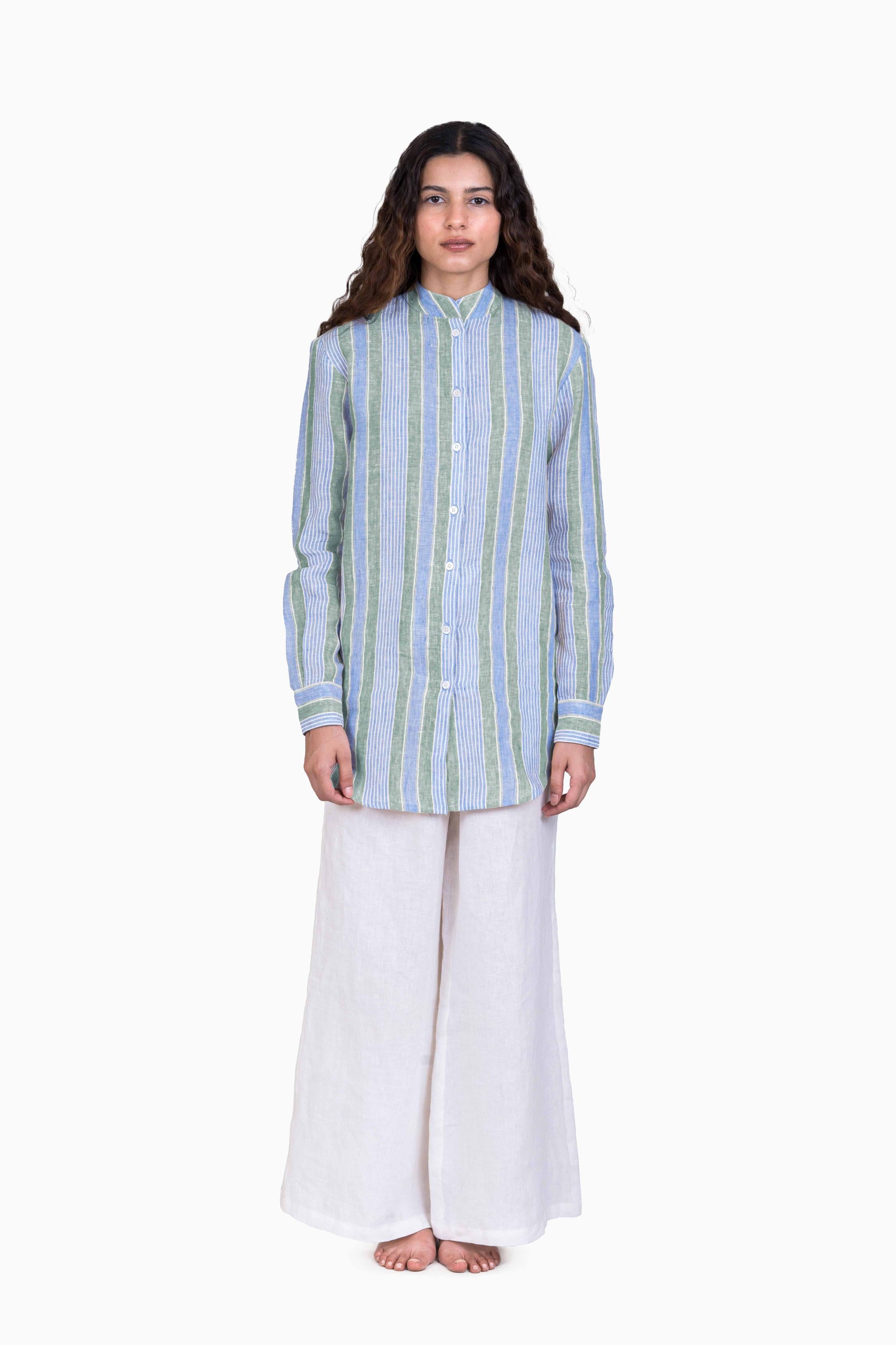 We are already in love with our Linen Noelle Shirt. Now it's time for you to fall in love as well. This long button-down shirt pattern adorned with shell buttons is all you need. Experience the luxury of the European Linen collection now.