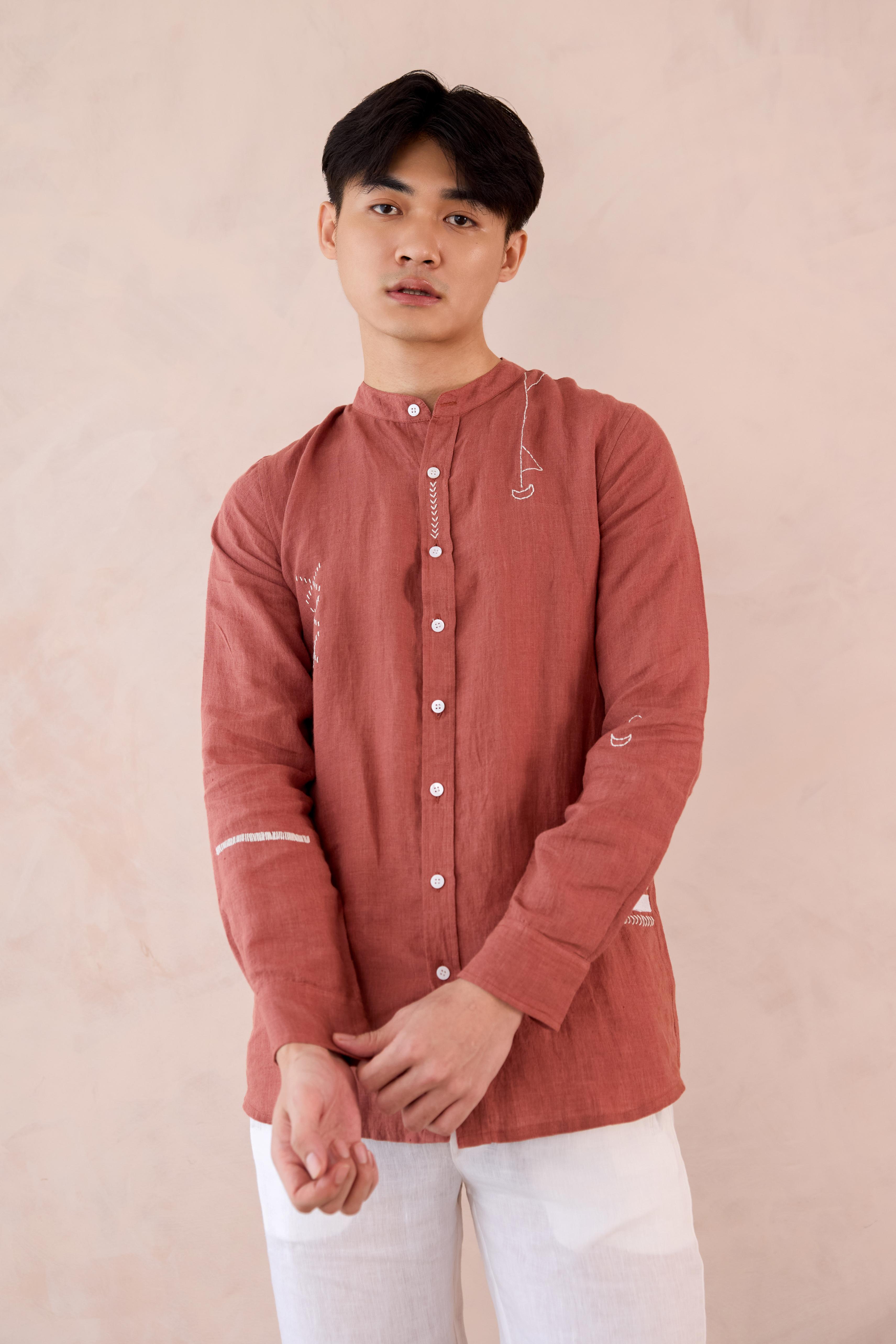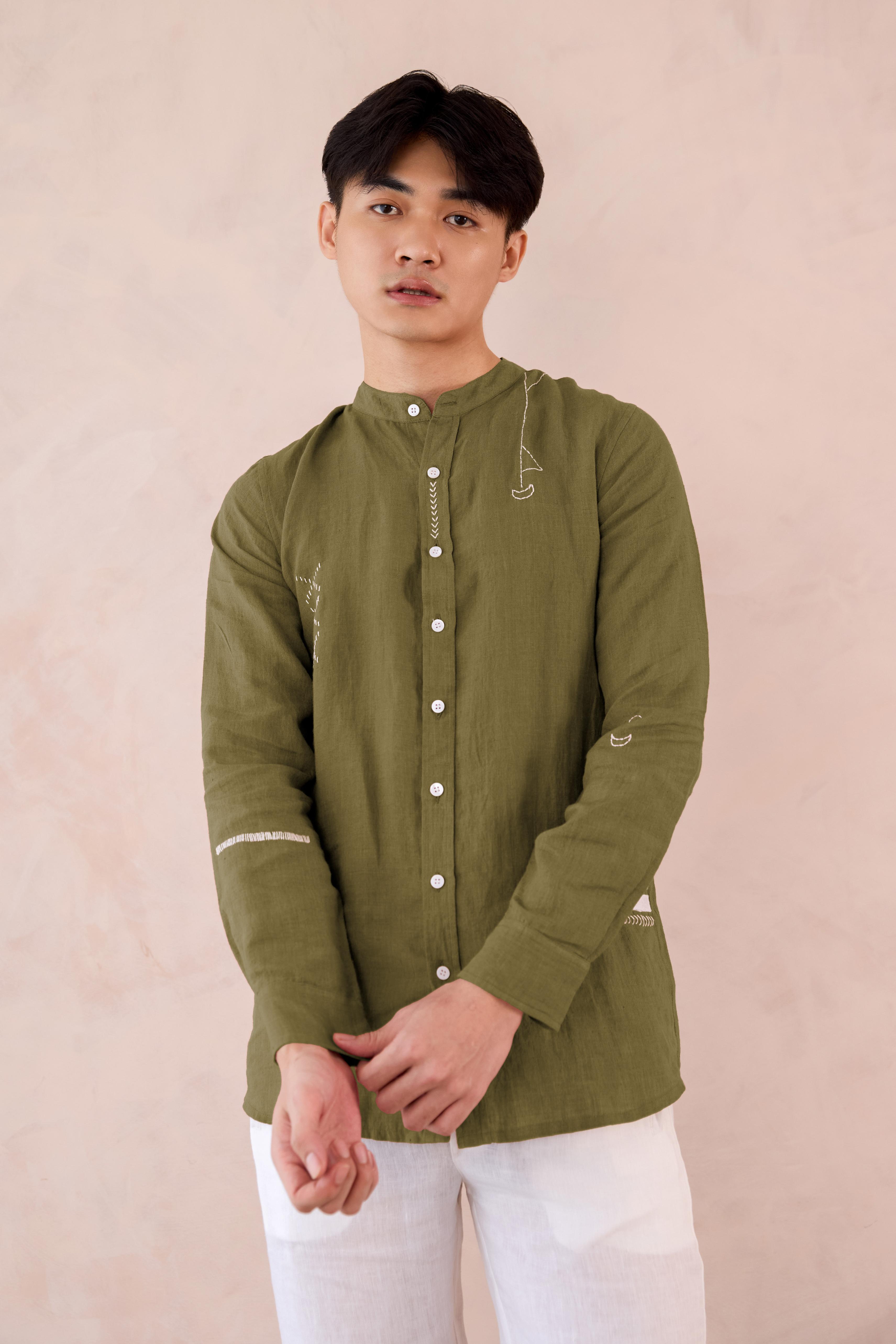 A Graceful Linen Nolan Shirt is here to bring the fun of minimal elegance to your routine. Tailored by precision and artisanal touches, this simple shirt has handcrafted elements all over the shirt.
