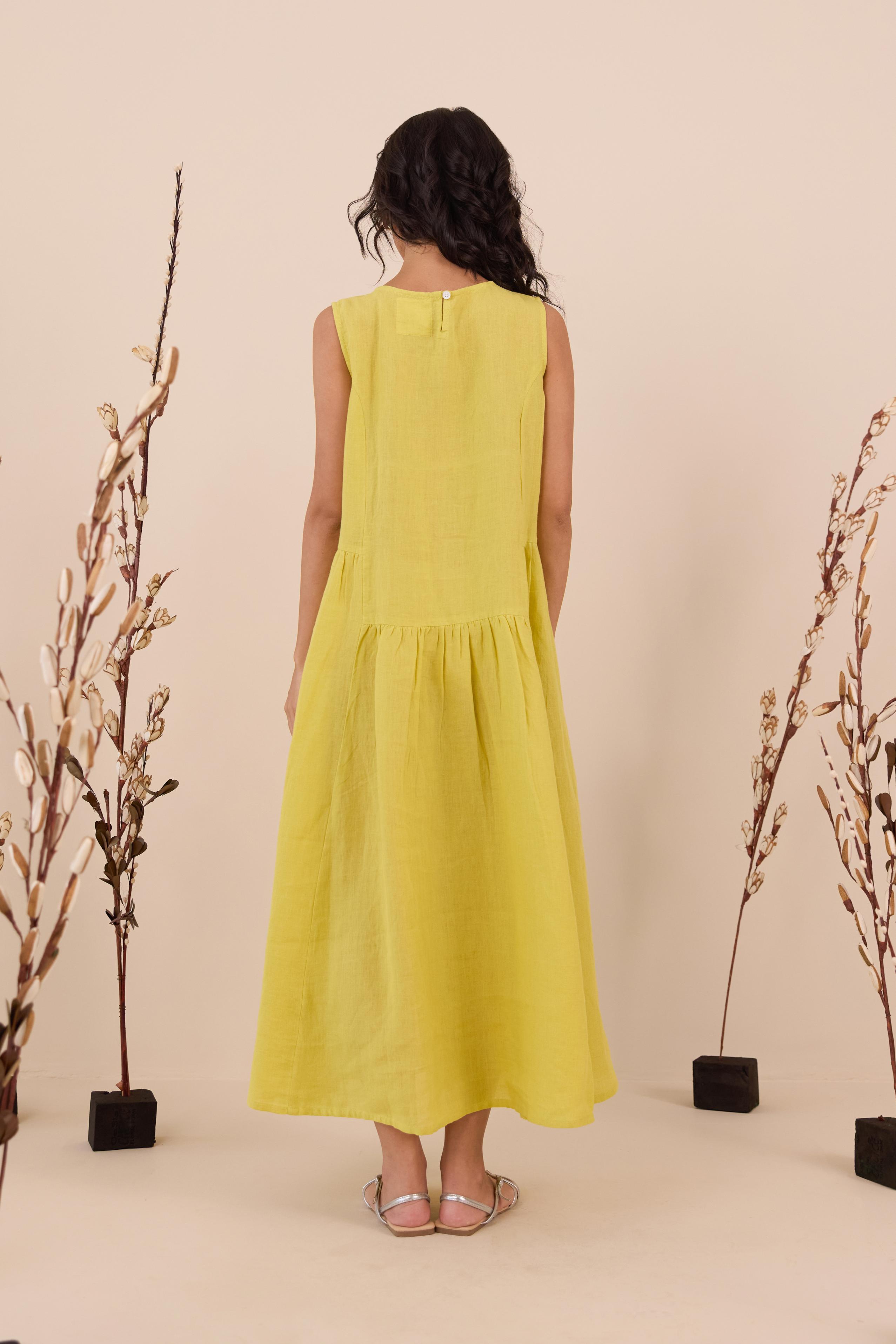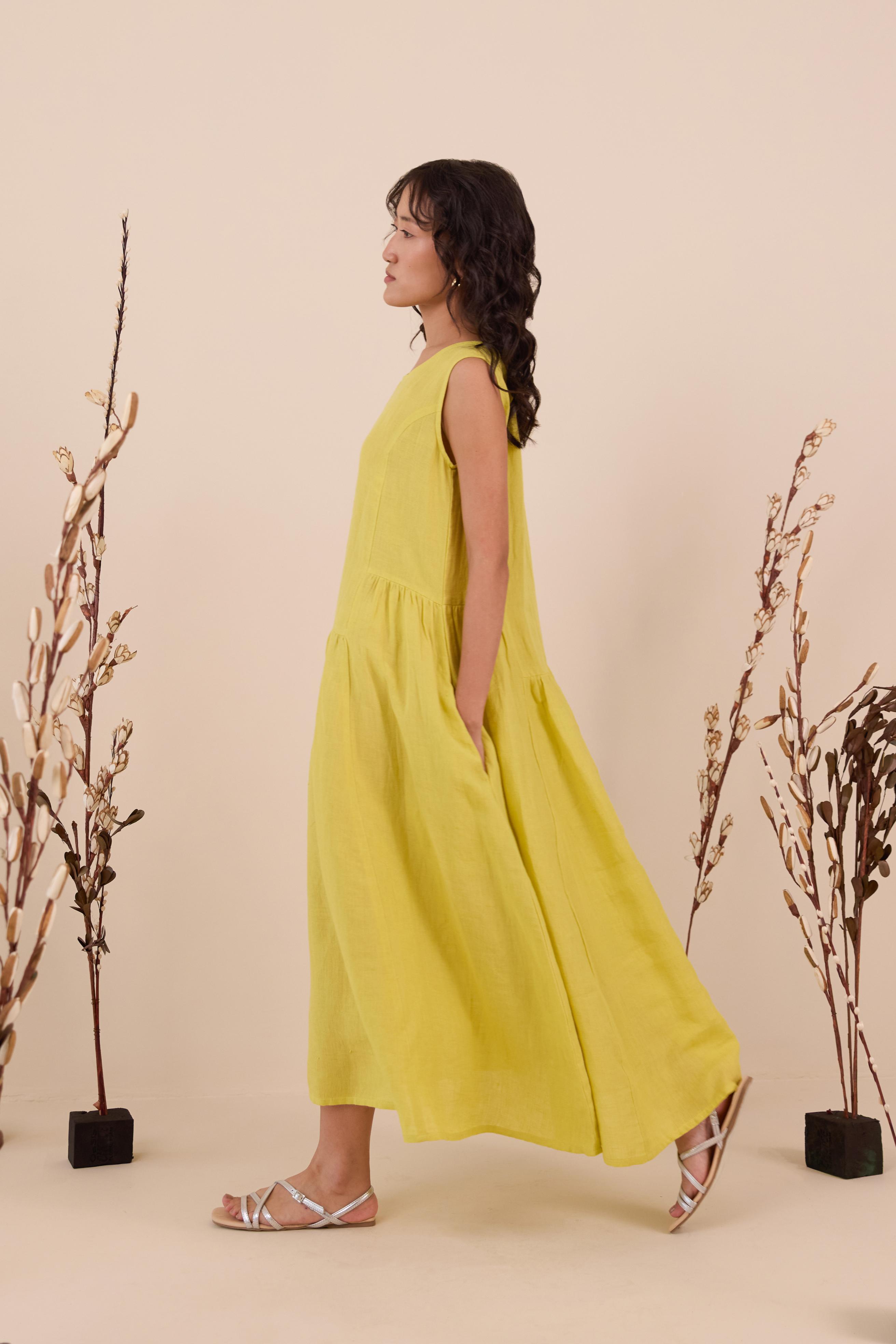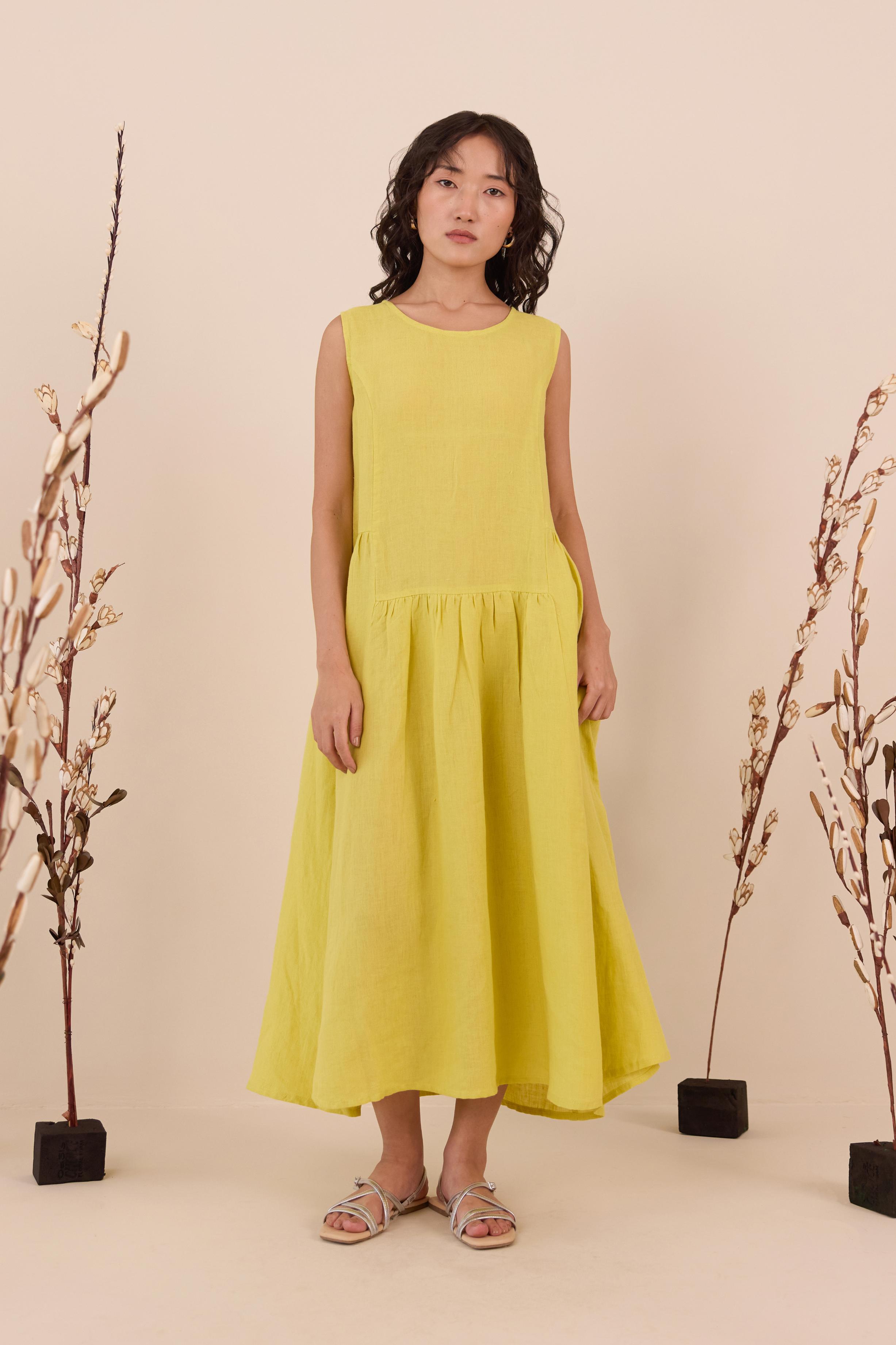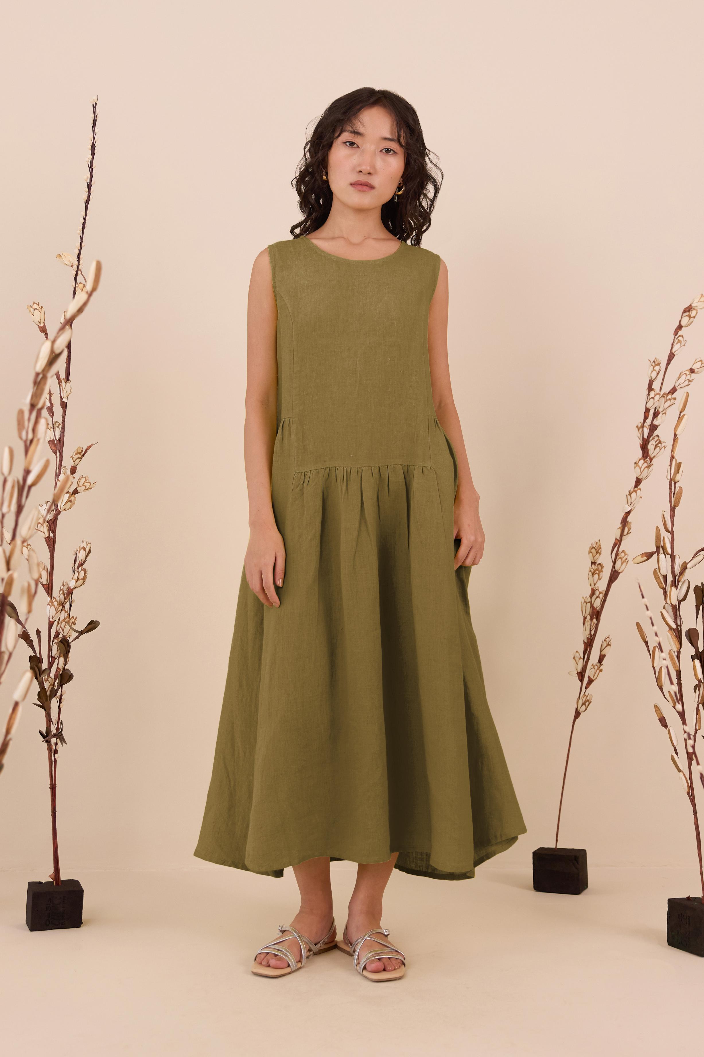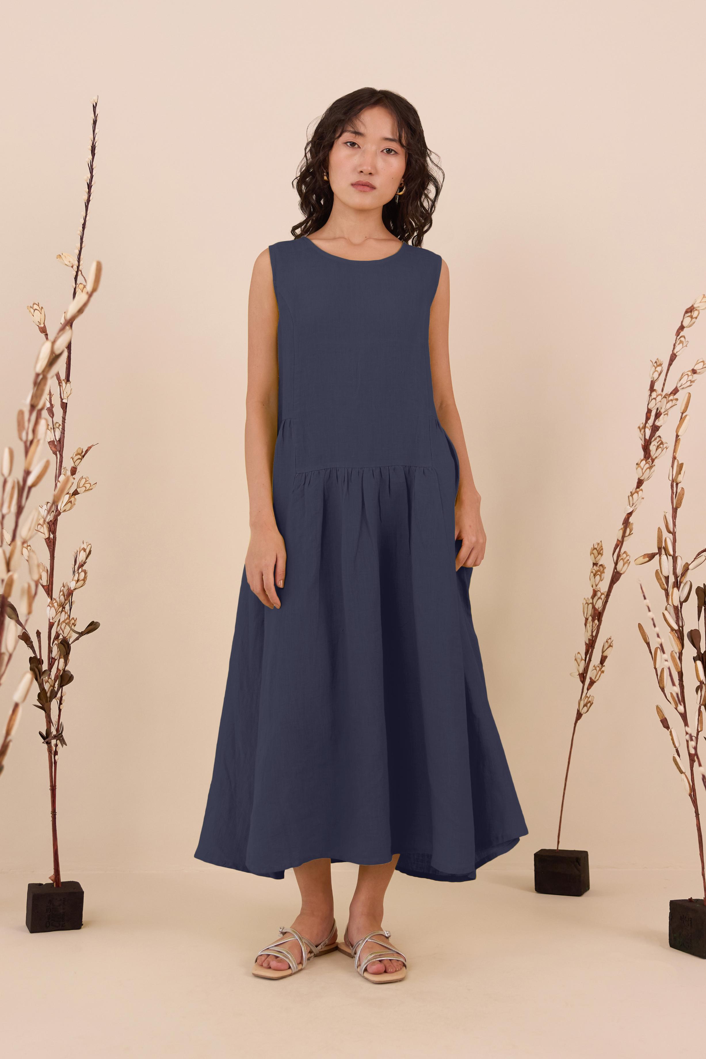 An easy blend of elegance and comfort is our Linen Penelope Dress. A subtle pleated gathering and a sleeveless design are made for days when you want to feel effortlessly put together. Enjoy the right part of flair and leisure along with pockets on both sides.