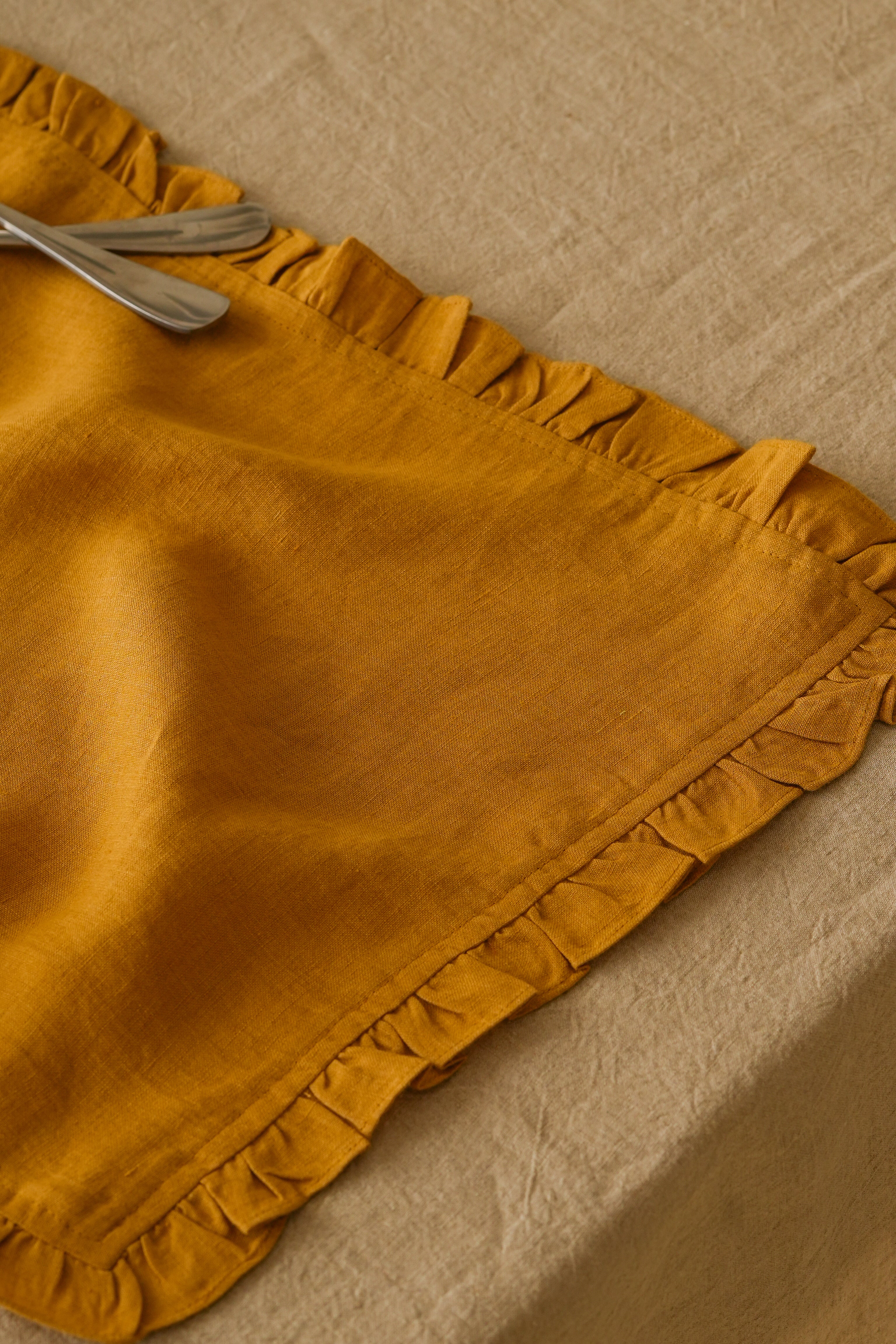 Get your hands on this beautiful statement piece, Linen Ruffle Medley Placemat With the delicate touches of European Linen and the smooth finishing of ruffled frills, our table linens are ready to enchant you and your ceramics
