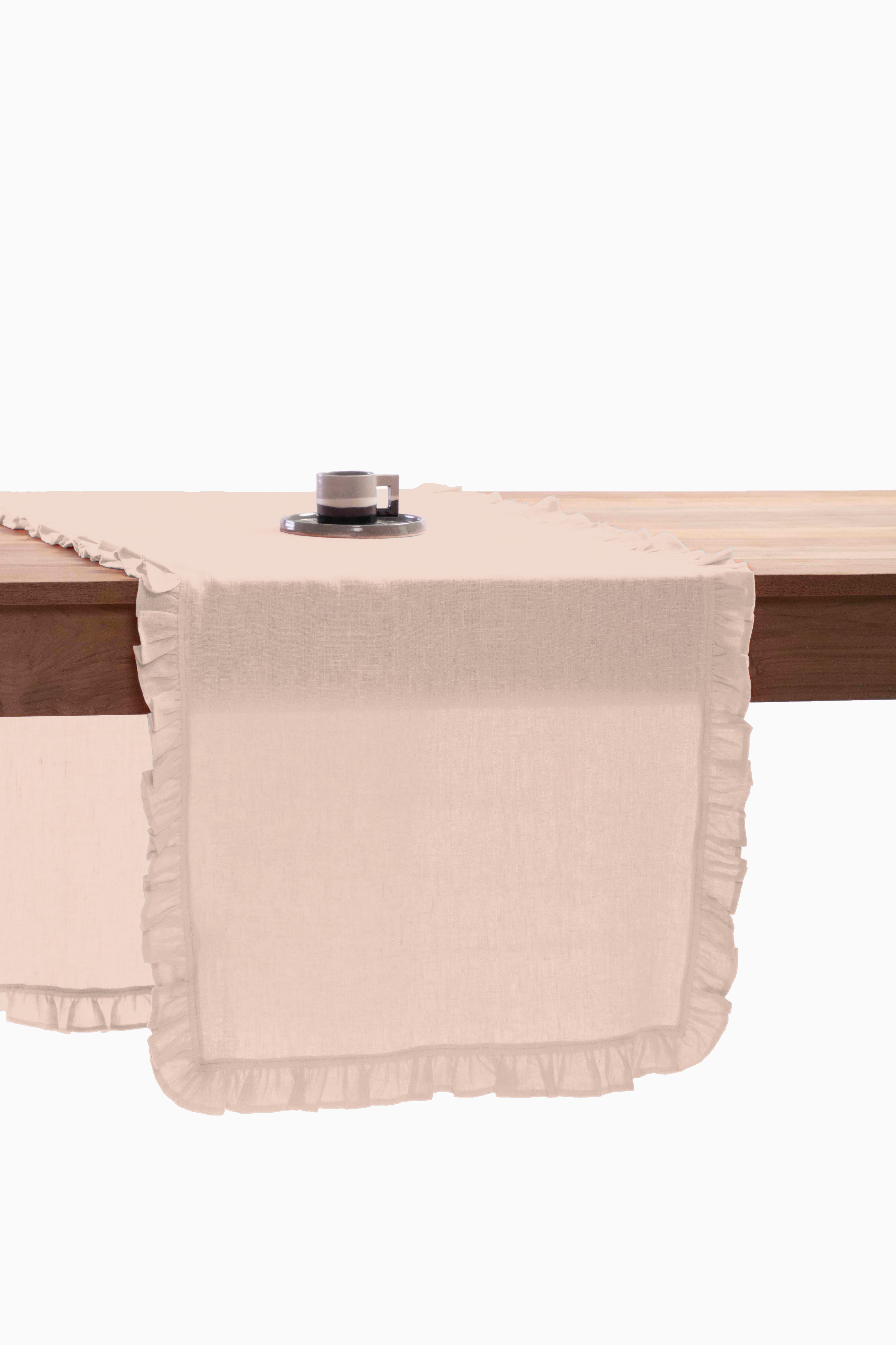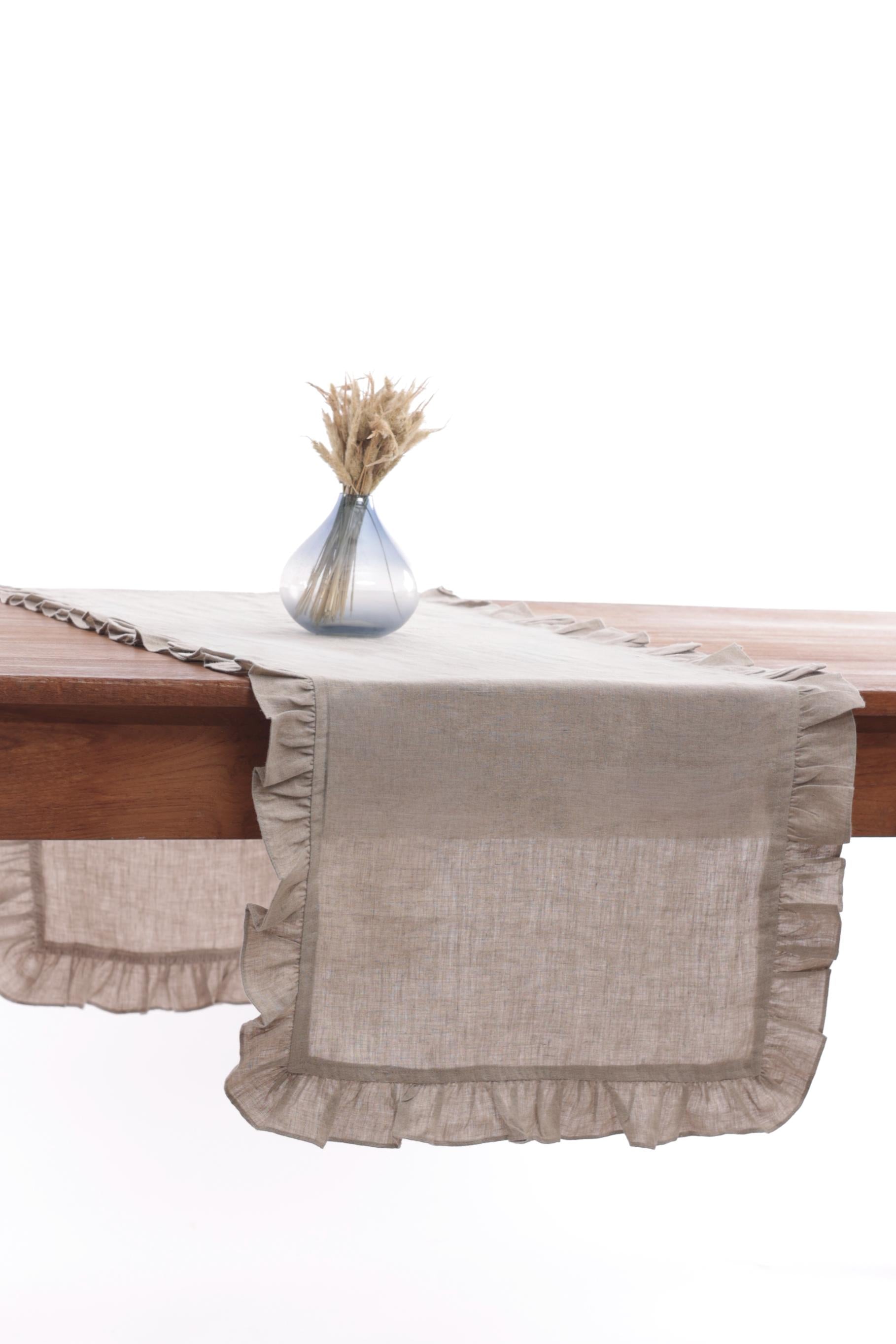 Linen Ruffle Medley Table Runner is designed to bring the utmost charm and delicacy to your dining. Our skilled artisans have crafted these gorgeous table linens with ruffled edges to elevate the vintage look of your table setup. Make a statement with these European Linen pieces today.