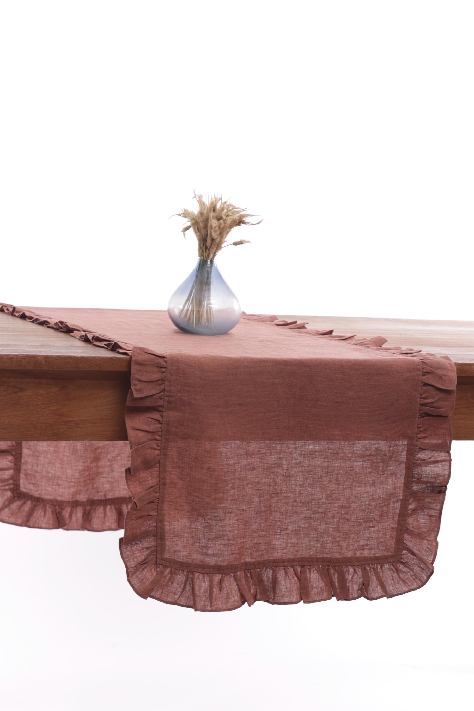 Linen Ruffle Medley Table Runner is designed to bring the utmost charm and delicacy to your dining. Our skilled artisans have crafted these gorgeous table linens with ruffled edges to elevate the vintage look of your table setup. Make a statement with these European Linen pieces today.