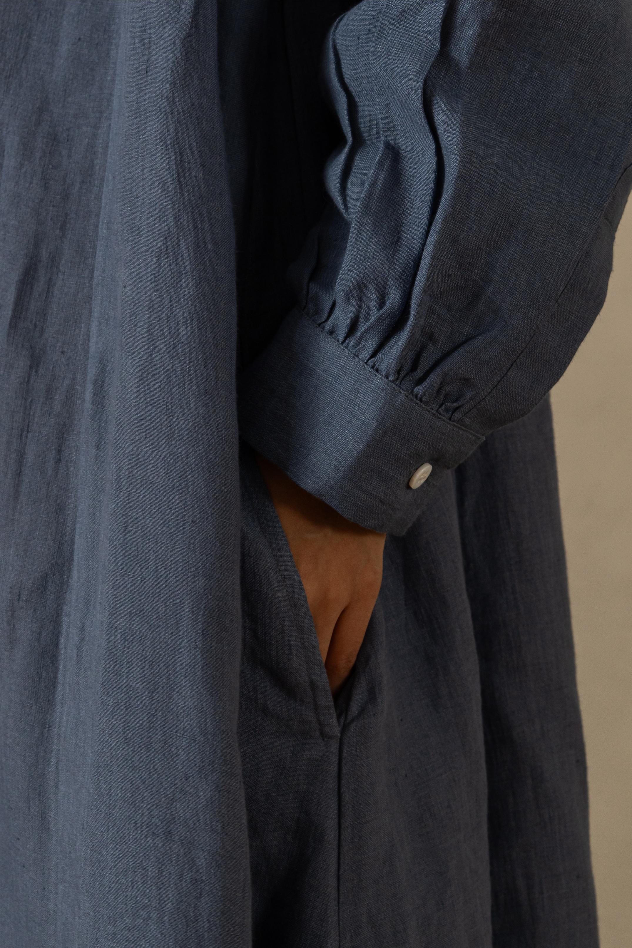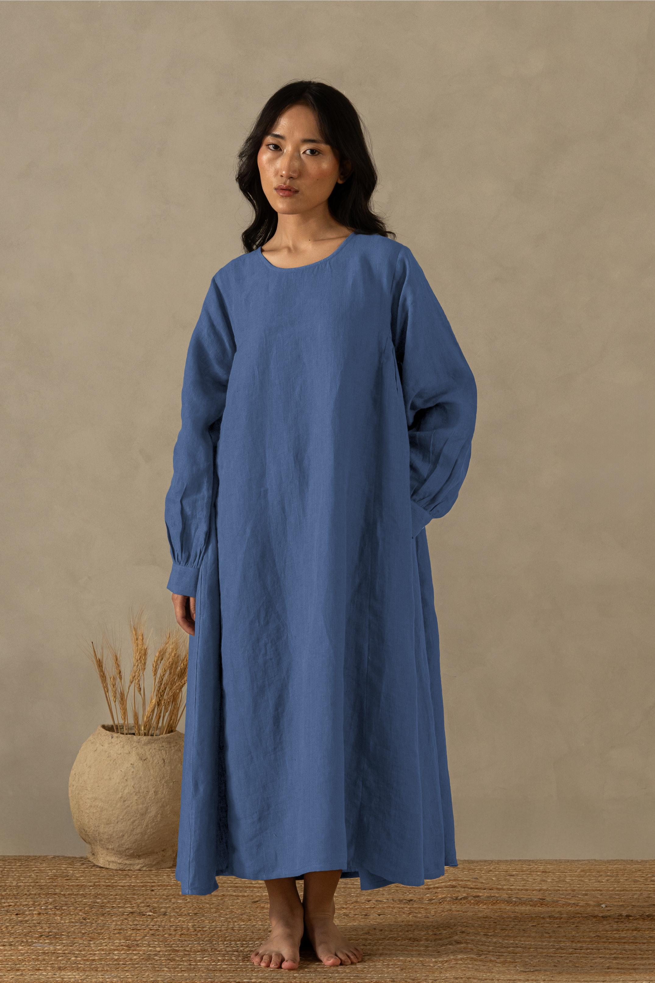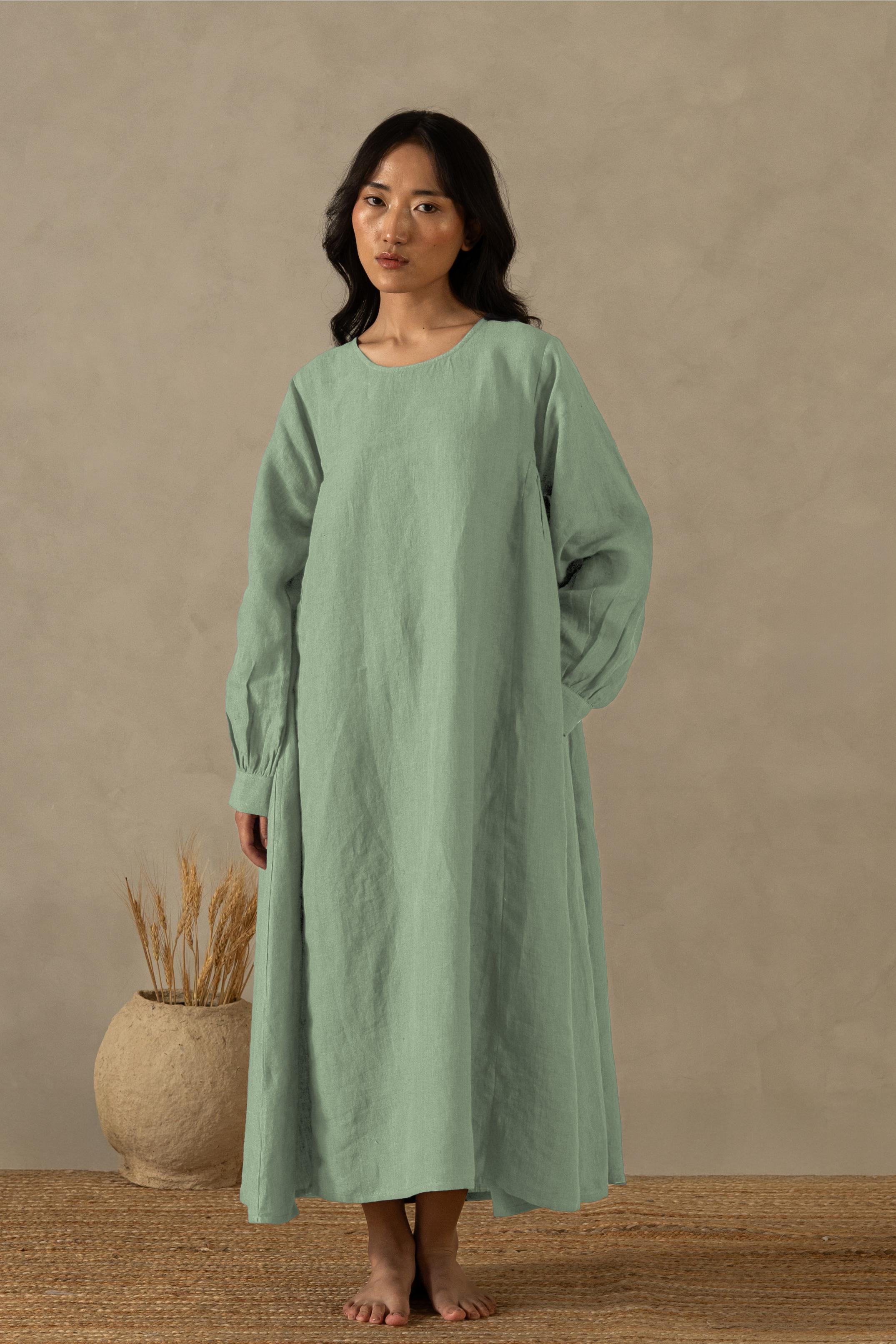 This beautifully crafted Linen Sandrine Dress awaits you to don it up. With the soft gathering at the sides, the bishop sleeves add volume to the dress. An adorable round neckline dress ready to swoon you in its elegance. This twin-pocket linen creation has all the qualities needed for a perfect outfit. Let our European Linens flow your mundane lifestyle with leisure and luxe.