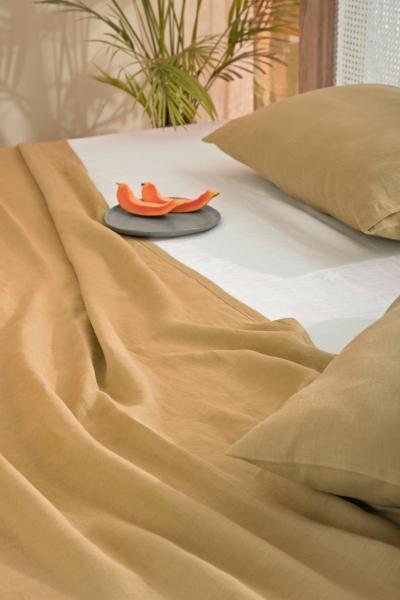 Linen Slumber Solid Bedsheet Set in Dusty Gold: In the times of summer, our Linen Slumber Solid Bedsheet Sets in Dusty Gold tone are going to prove as the best pick for your bedroom. Fresh and rejuvenating bedding keeps you relaxed on hot days and cozy on colder days. Linen, a temperature regulator, helps you sleep the soundest in any weather. Explore the handmade collection of our Solid Bedsheets with two matching pillowcases today!