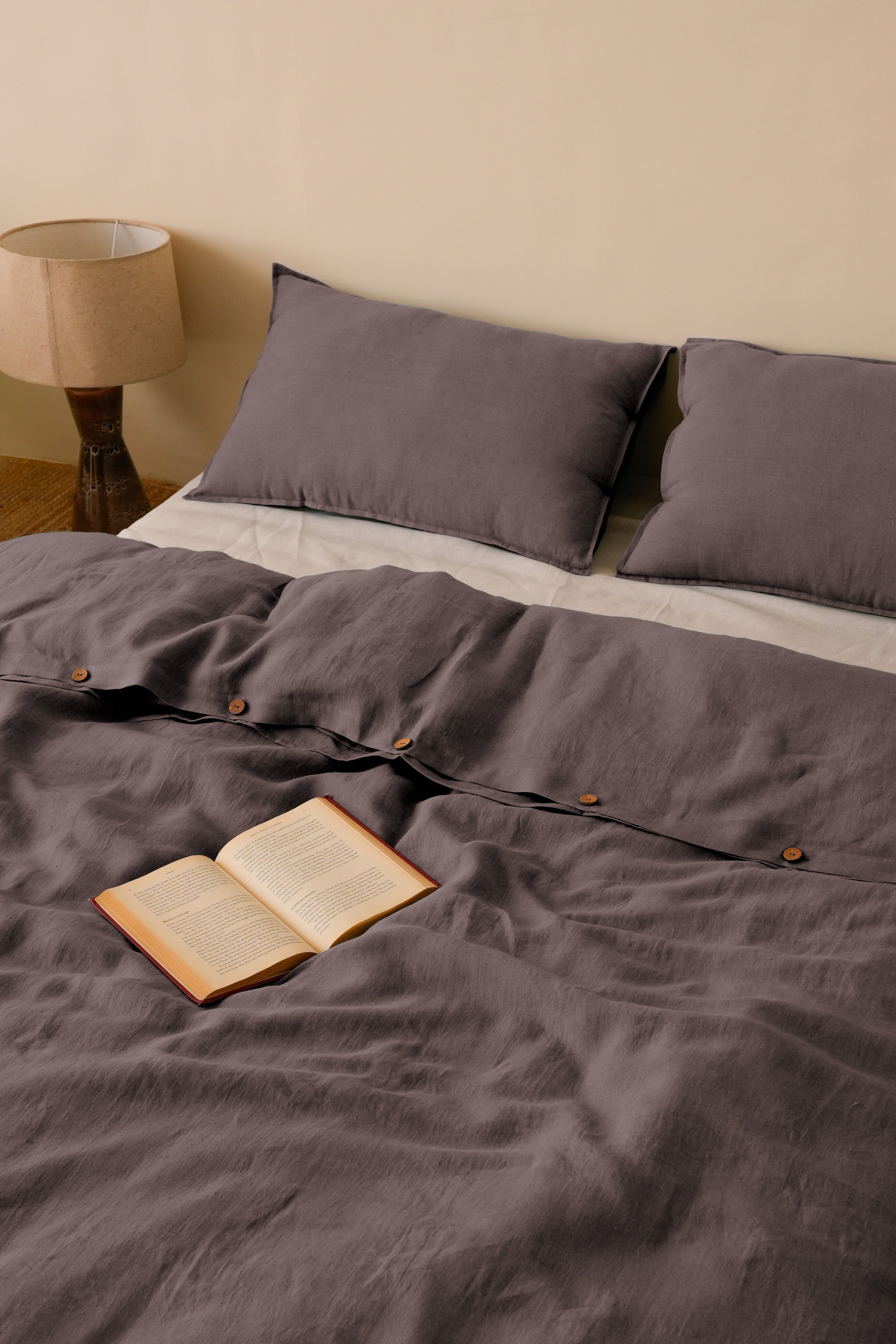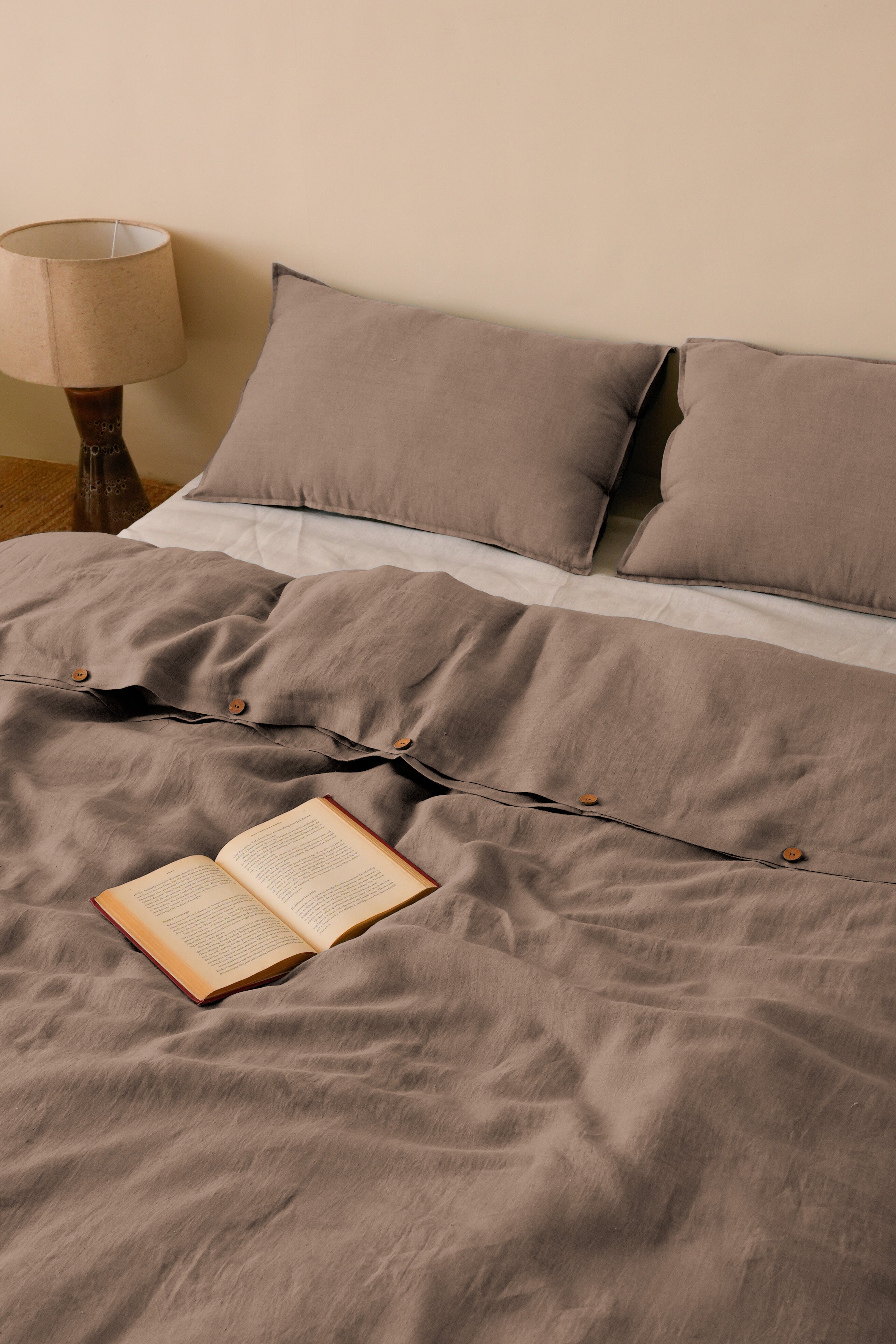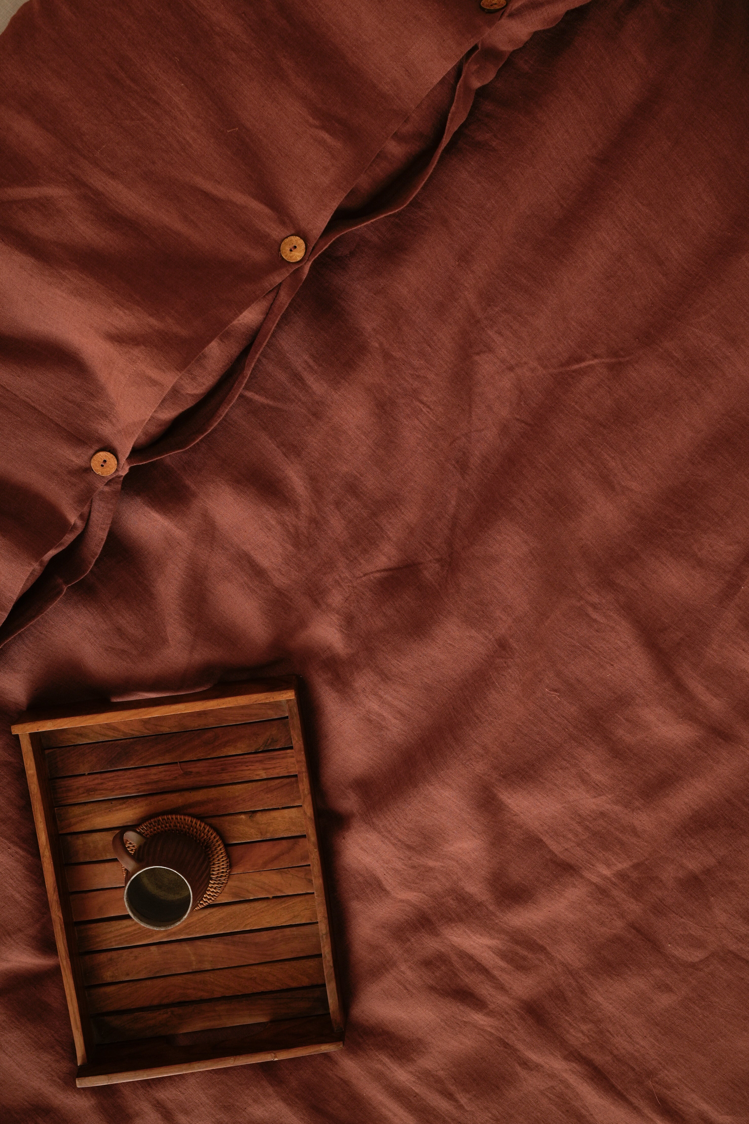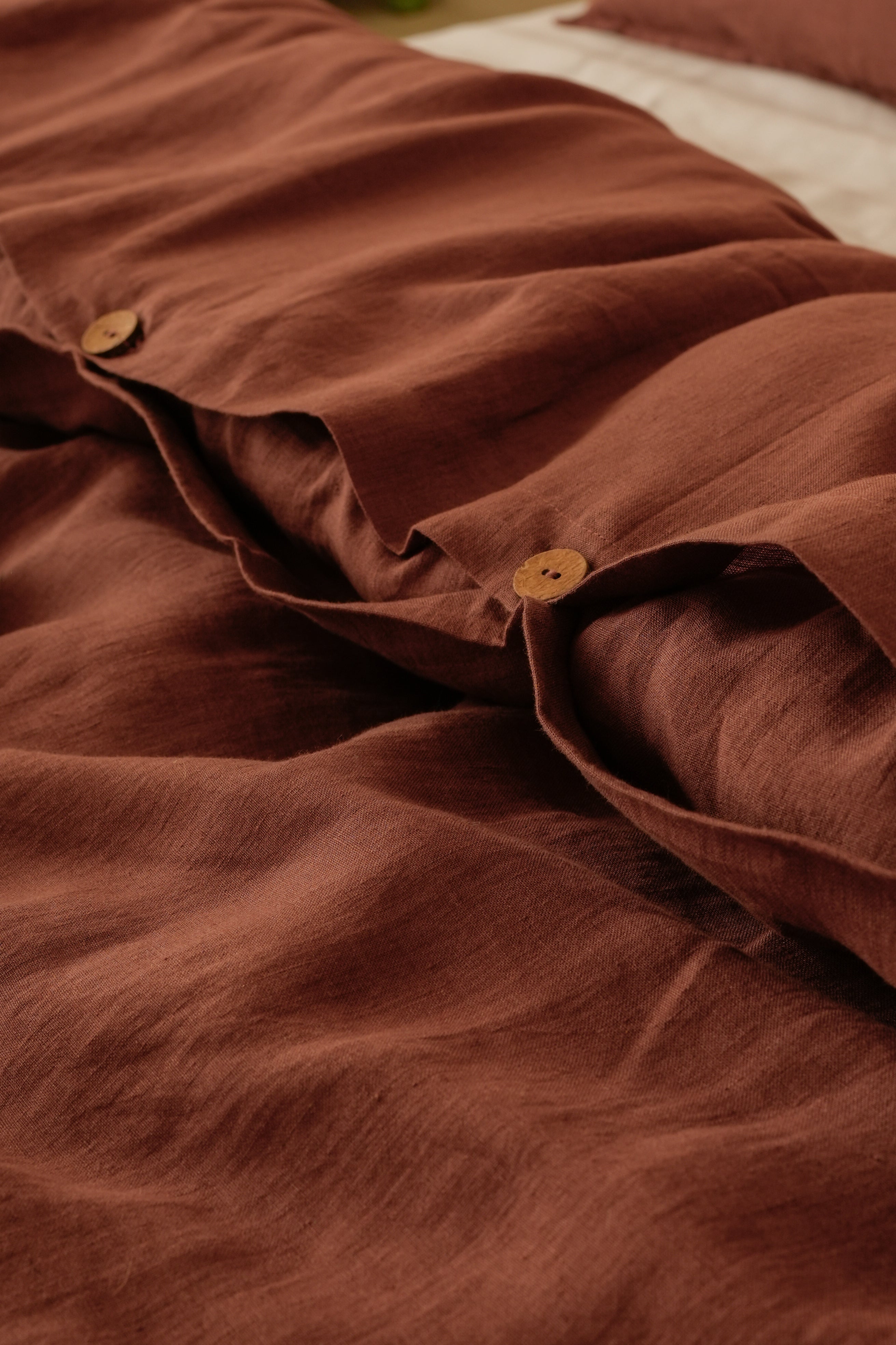 Linen Slumber Solid Duvet Cover Set in Cinnamon Brown: Freshly crafted Linen Slumber Solid Duvet Cover Sets are here for you. With the integrity and purity of our, European Linens handcrafted for you, with love and skills. Our solid color collection will always keep you on top of your comfort game. Get these linen duvet sets now with two matching pillowcases.