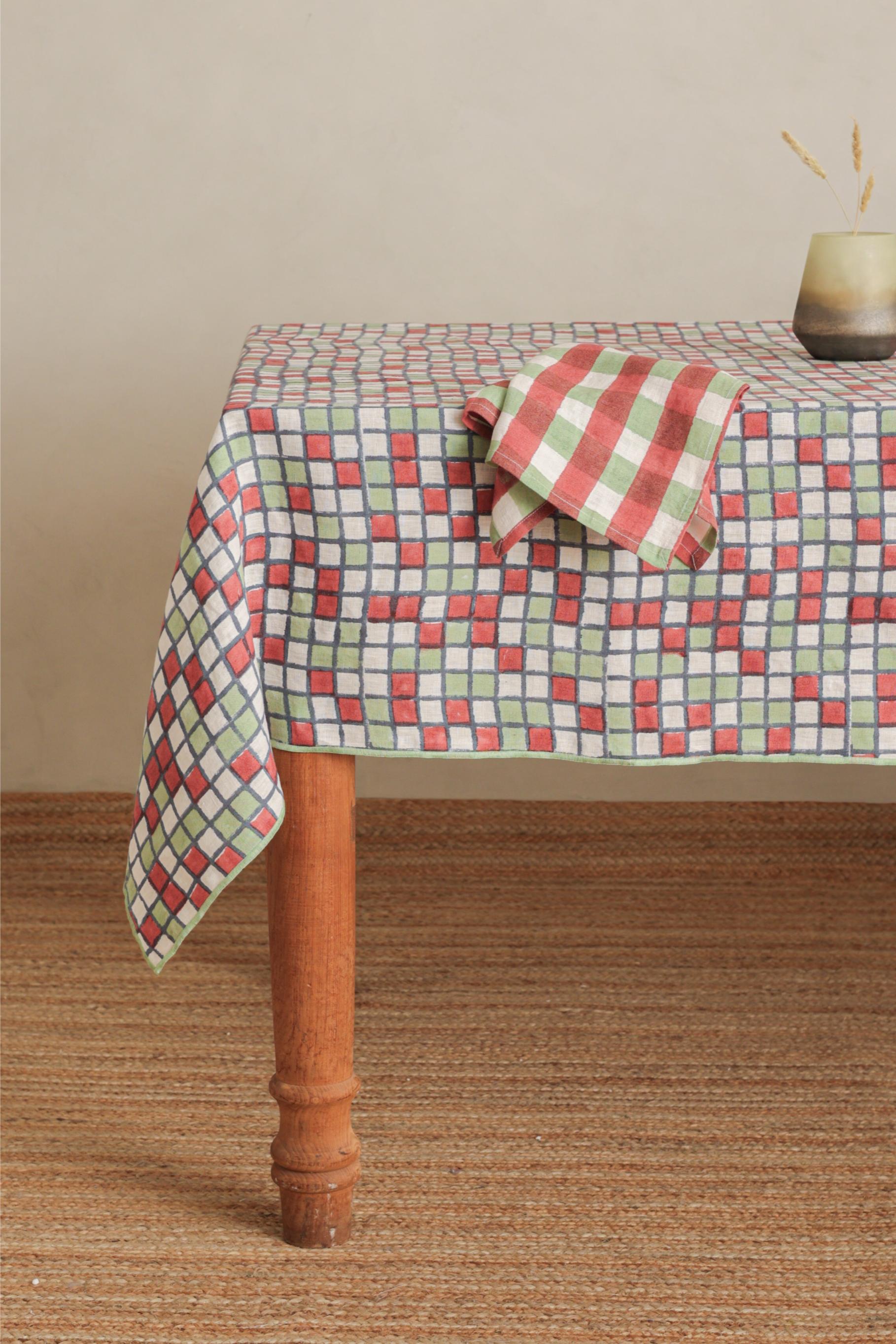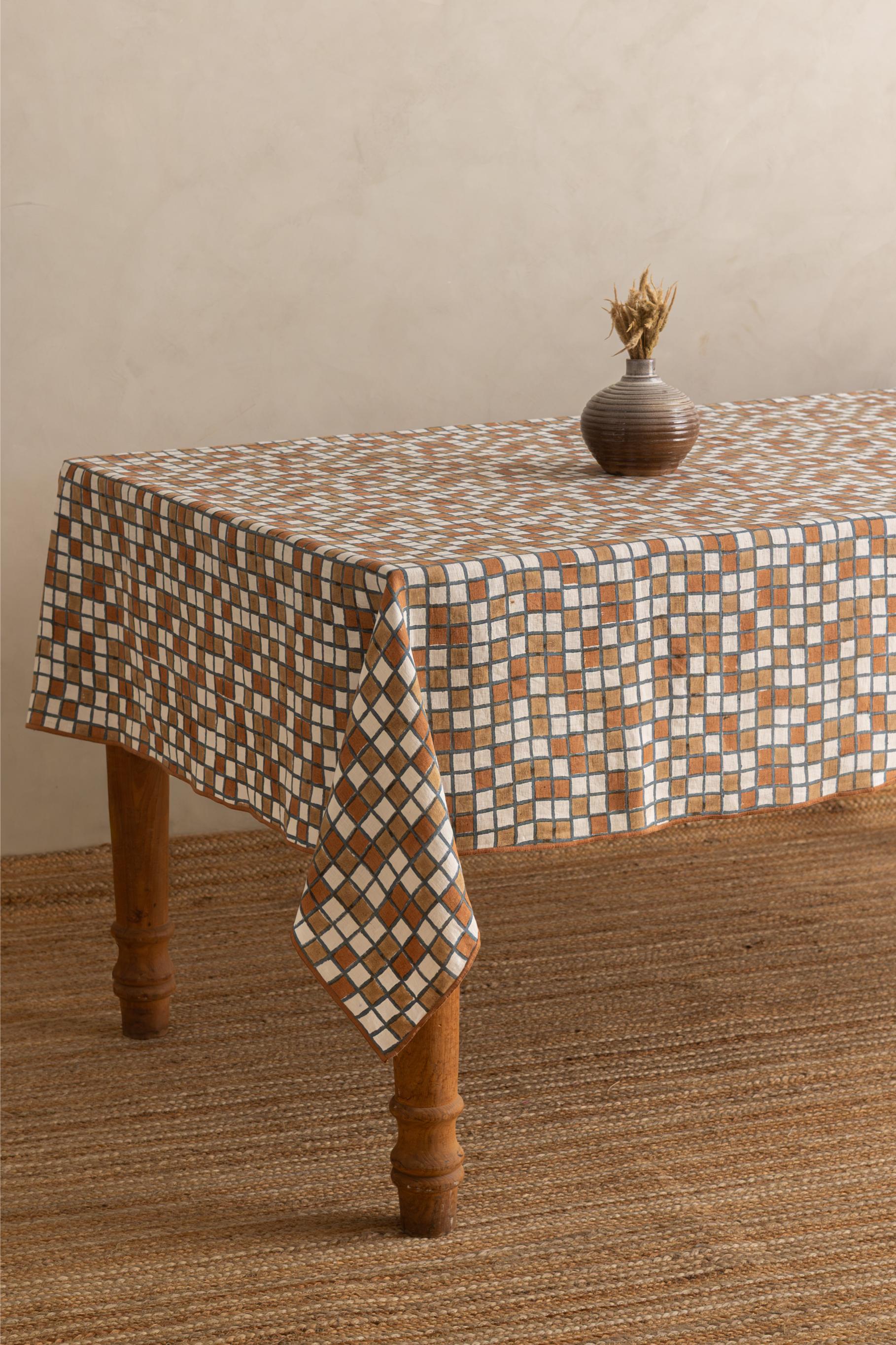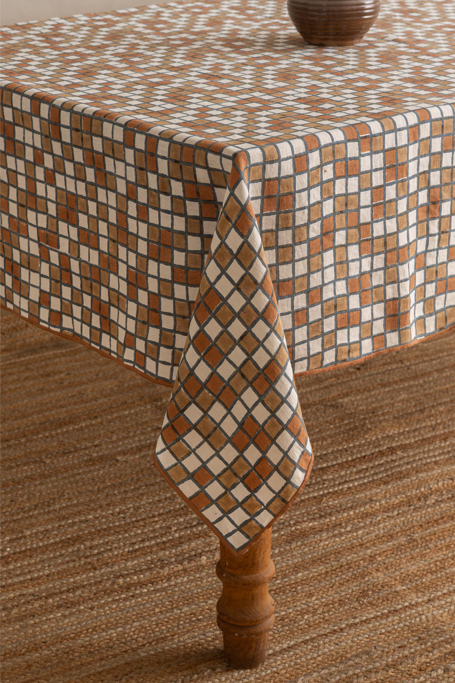 Bring artisanal charm to your table with our Linen Sudoku Tablecloth, handcrafted from 100% pure linen. The elegant brown block-printed pattern blends traditional Indian artistry with modern geometry. Perfect for everyday dining or festive gatherings, its natural linen texture adds warmth, breathability, and timeless appeal. Pair it with brass cutlery or ceramic dinnerware for a coordinated, stylish look. Elevate your dining space with sustainable craftsmanship and the beauty of handmade linen decor.