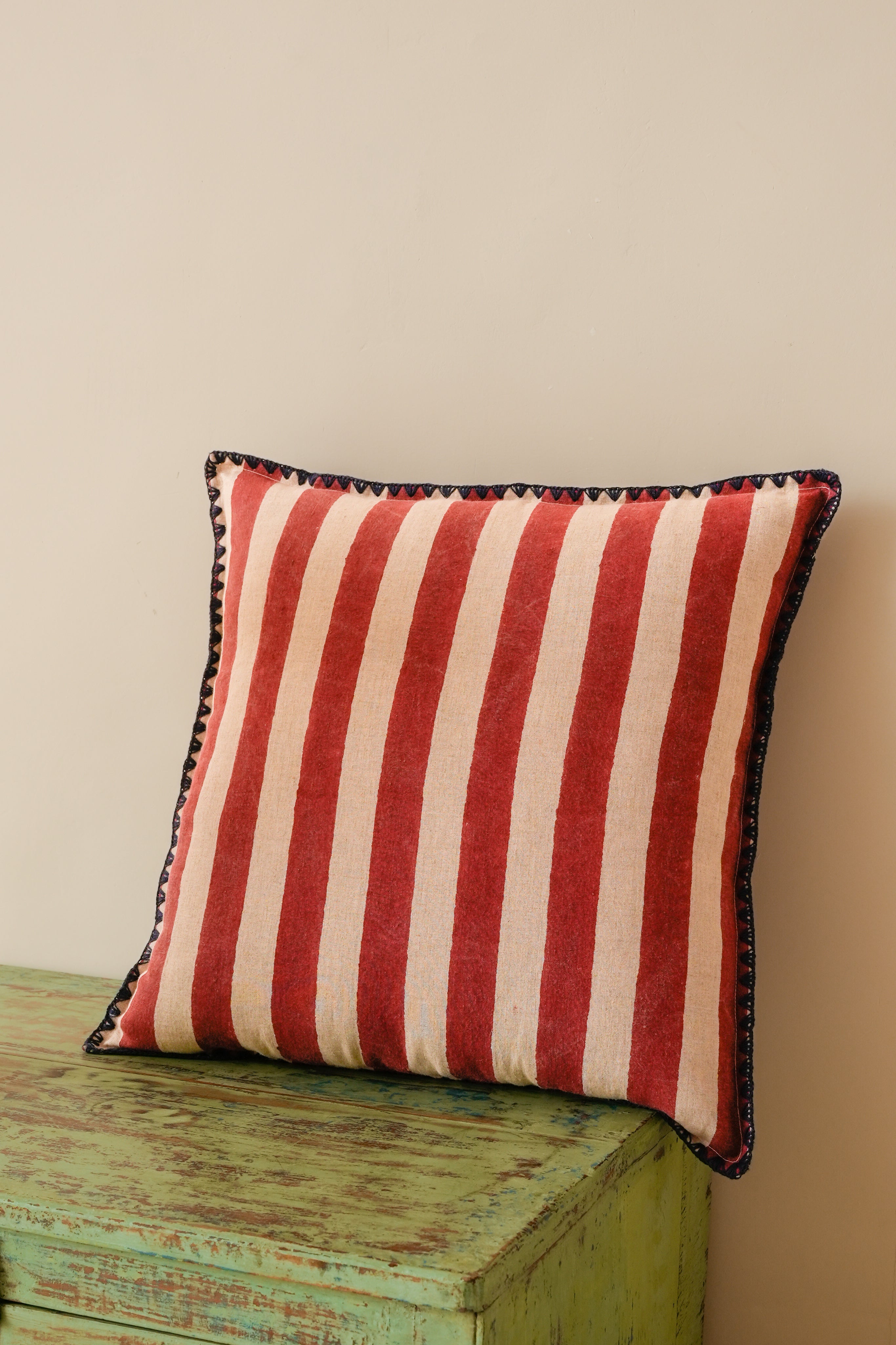 The Sutra linen cushion cover carries the story of Indian craftsmanship in every stitch.Bordered with delicate thread work, it merges artisanal beauty with natural linen’s soft luxury — a timeless accent for modern, mindful spaces.