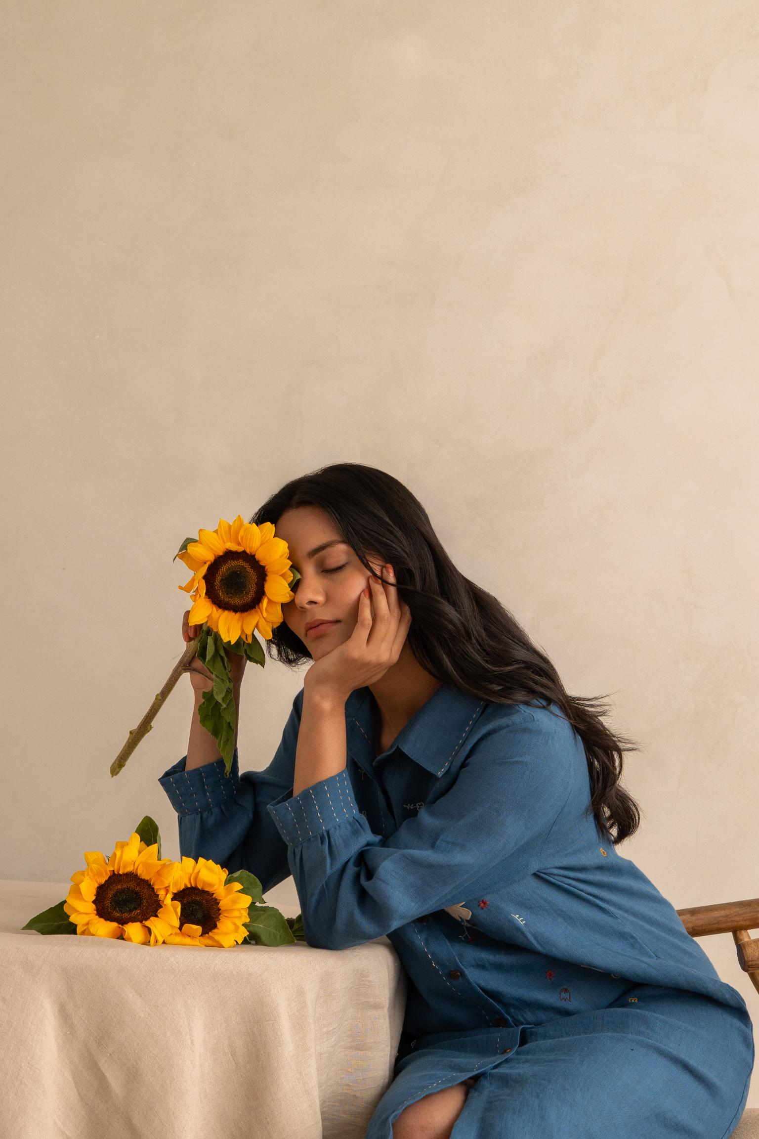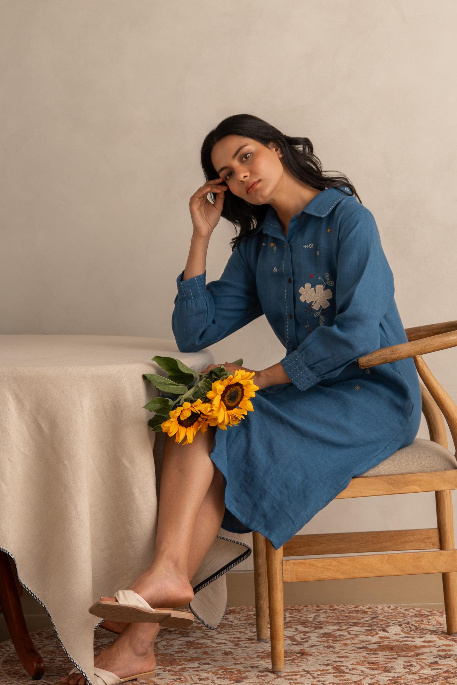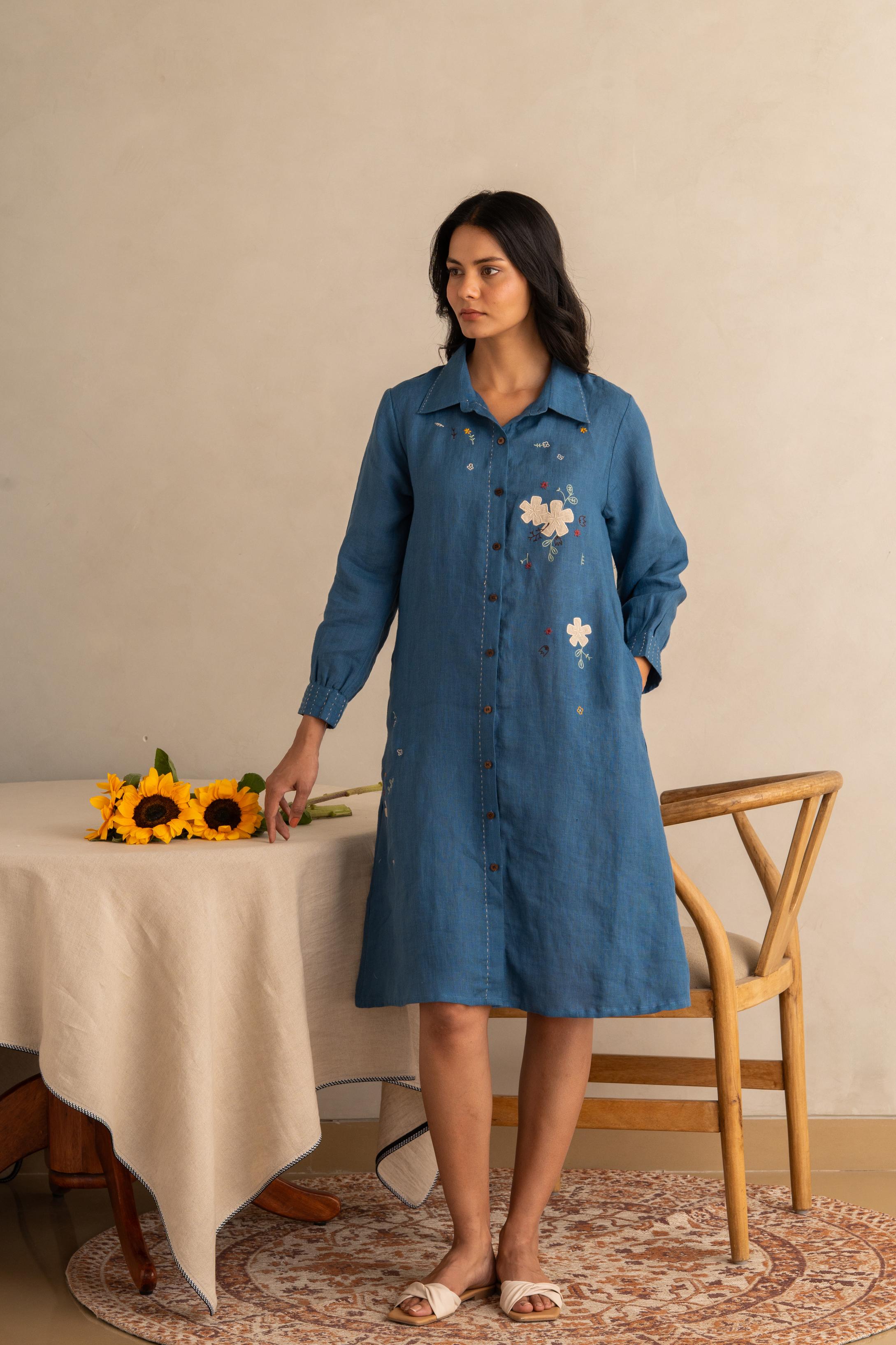 From brunch dates to summer soirées, the Linen Sylvie Shirt Dress has to be your go-to for effortless style. This chic shirt dress, crafted from premium European linen, is elevated by gorgeous embroidered detailing. Striking Kantha work at the cuffs and pretty floral appliques create a captivating focal point, while delicate Kantha stitching and coconut husk buttons add a touch of natural elegance. Discover the Sylvie Shirt Dress and the entire collection today.