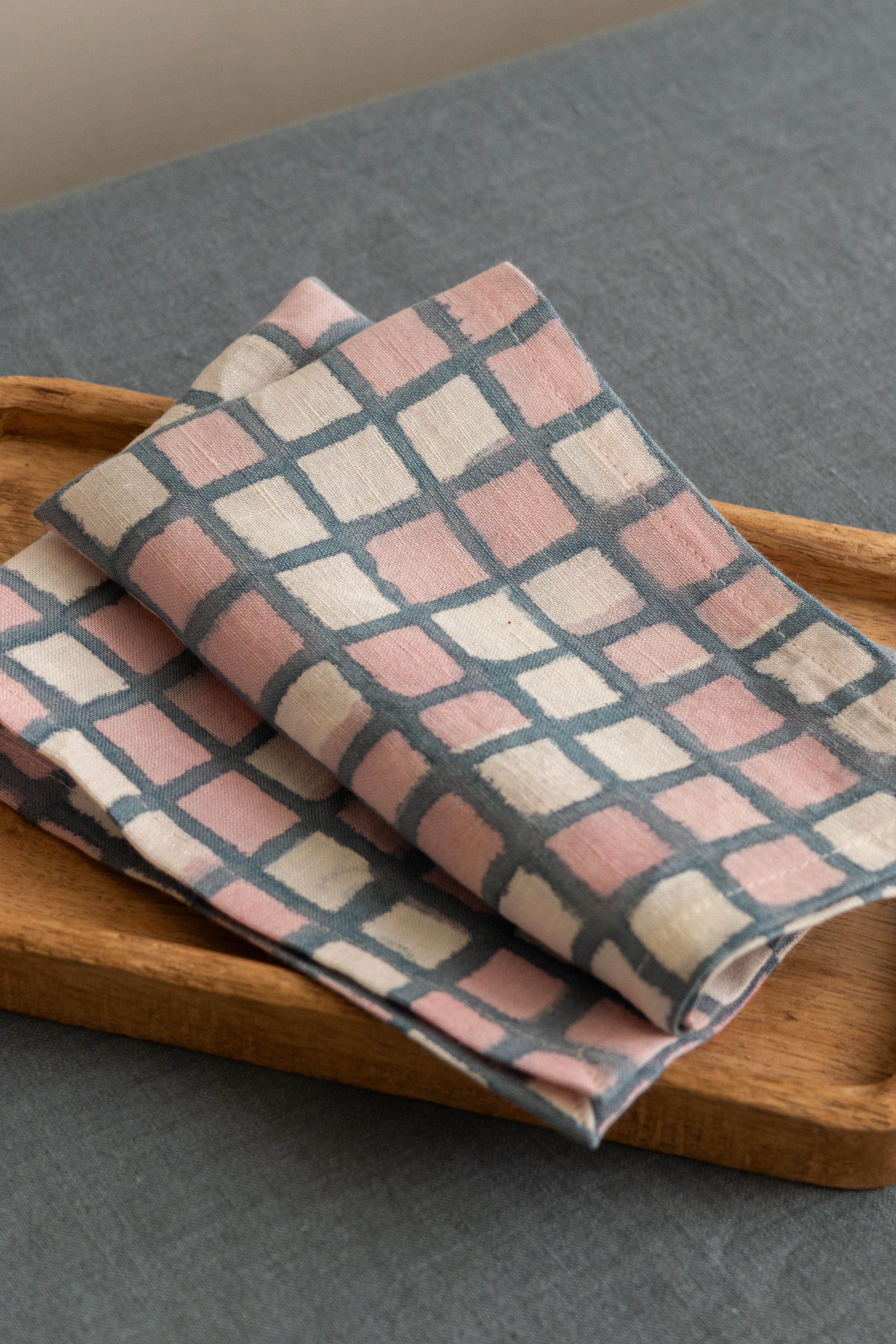 Pure linen Blue Gingham Napkins made finest european flax linen for soft texture, durability, and elevated table styling. The Blue check pattern adds cheerful elegance to Linen Napkins styled for daily dining, brunches, and beautifully curated table settings.