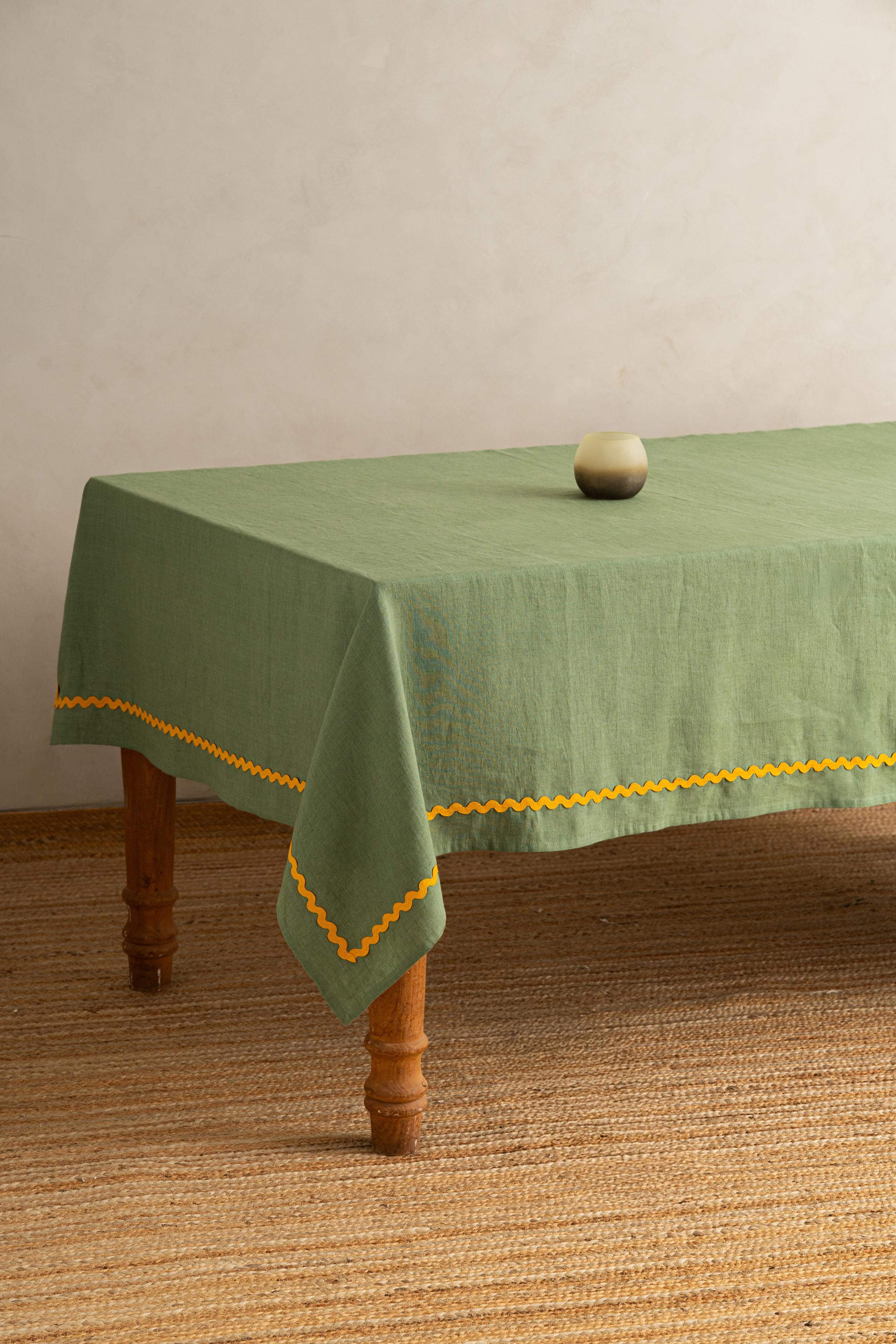 Our Linen Lace Tablecloth in retro green shade is a vintage-inspired creation crafted specially for you. The artisanal details added with the trim laces around the borders of this tablecloth bring depth to your dining. Explore the entire lace collection today.